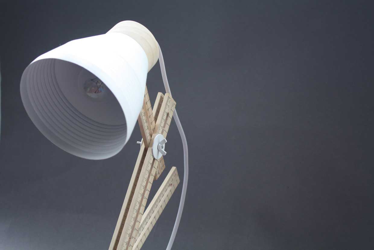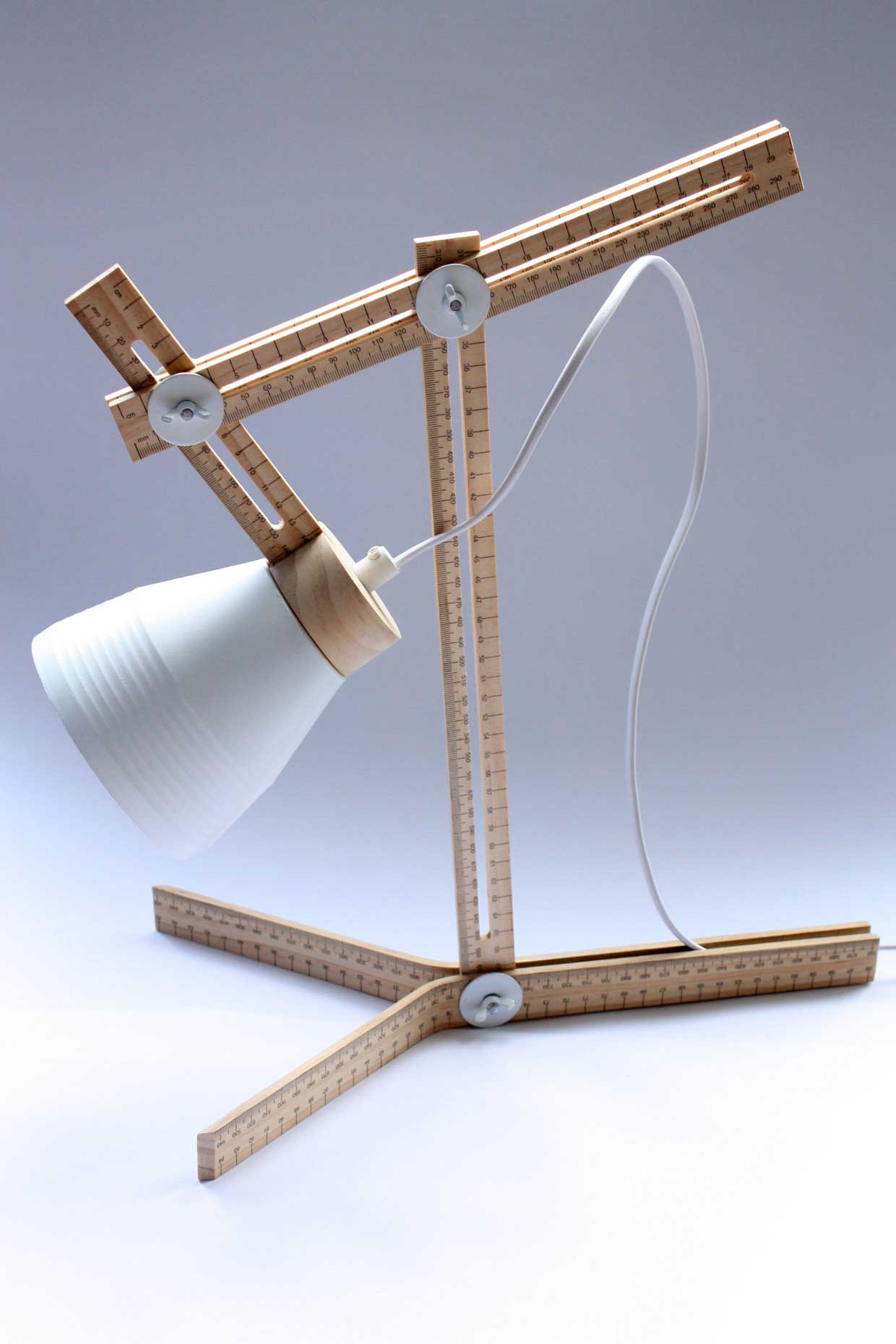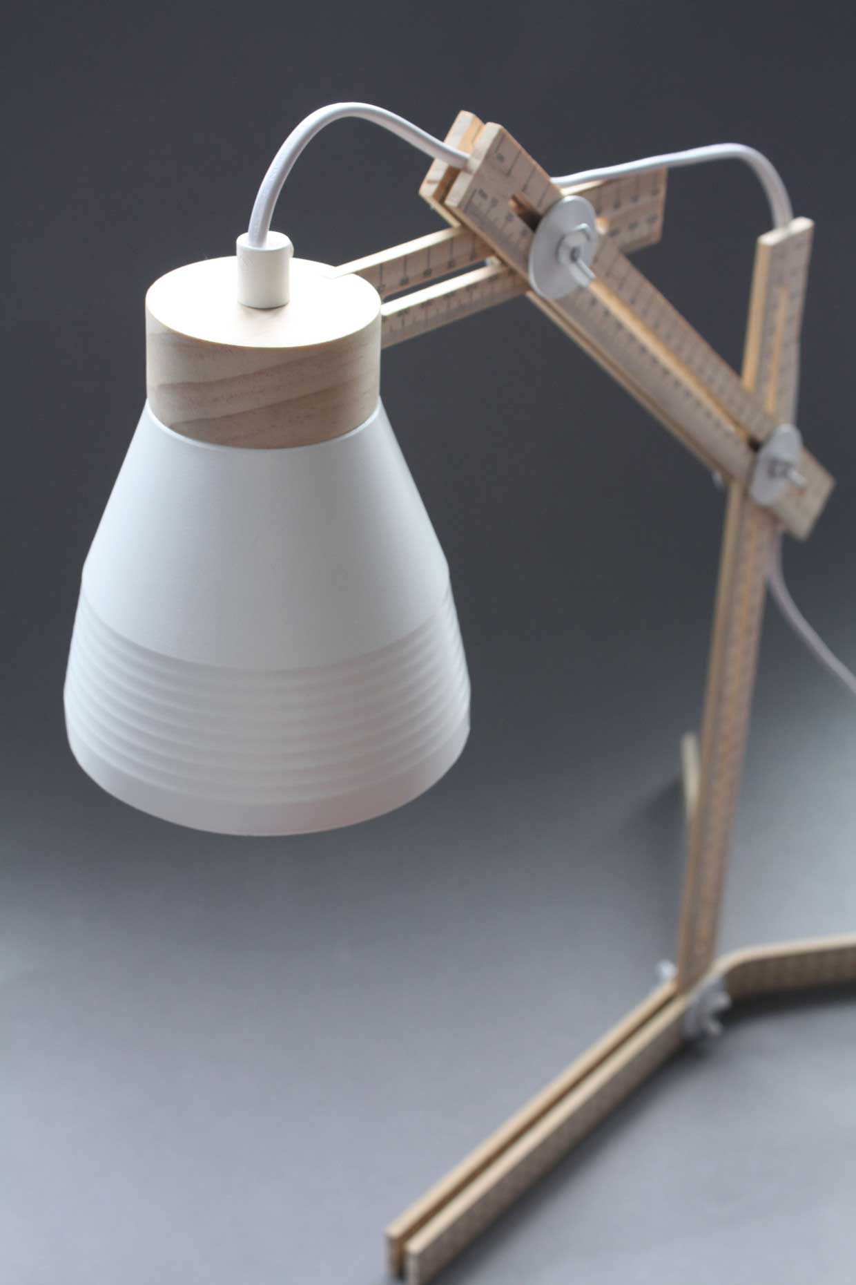 Made to Measure is a desk lamp designed by Nikolai Sorensen, creator of the Under Cover Camper. Fashioned from upcycled wooden rulers and ceiling light components, the design inspires the owner to sit down to work. The lamp is adjustable at three points, giving the user precise control over the workspace.