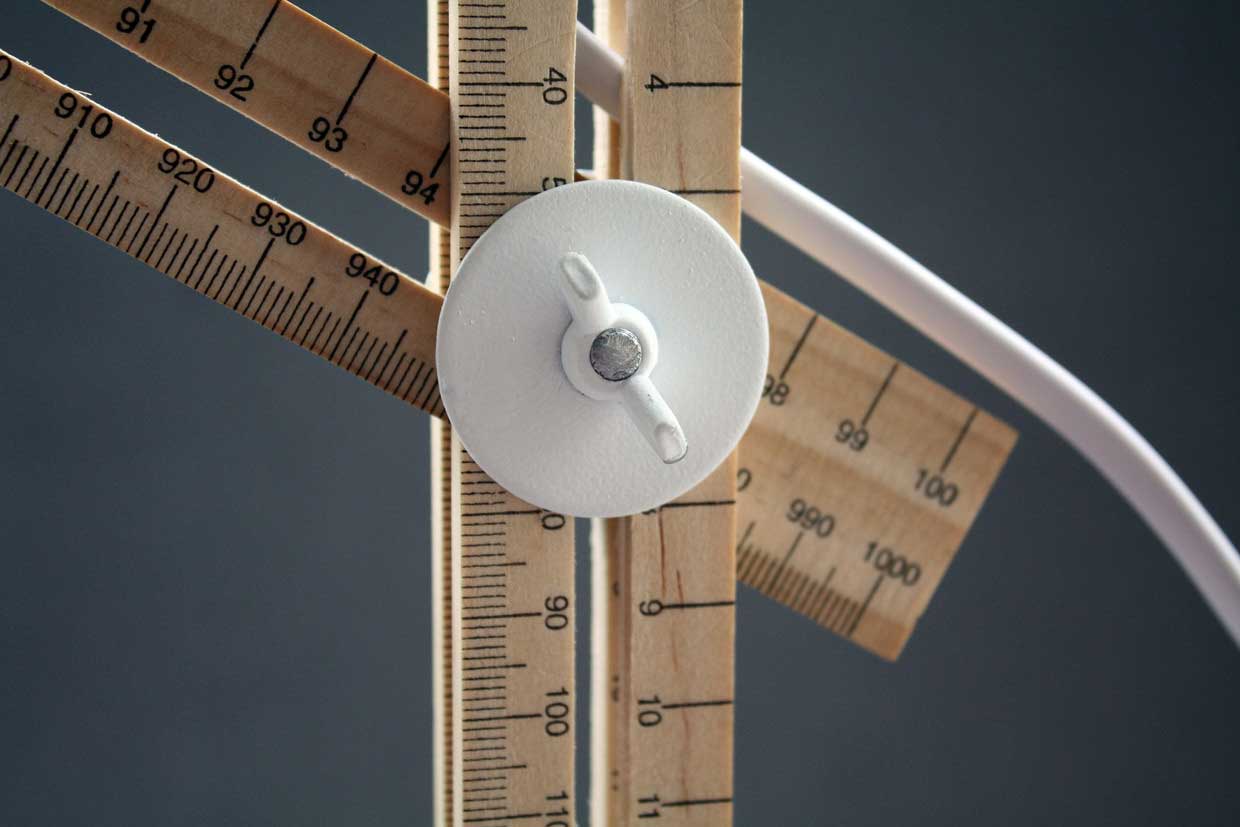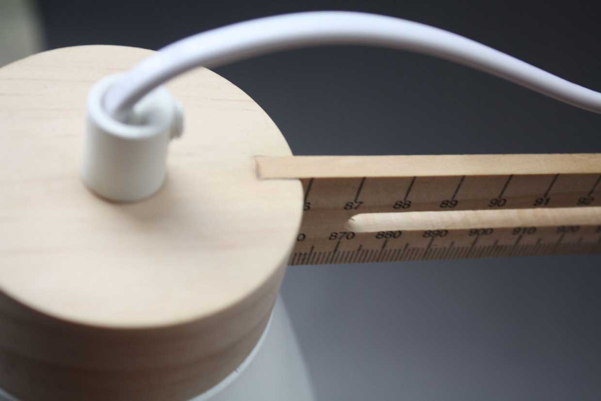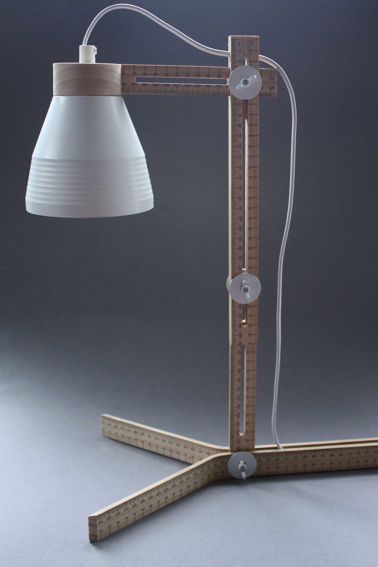 Made to Measure is a desk lamp designed by Nikolai Sorensen, creator of the Under Cover Camper. Fashioned from upcycled wooden rulers and ceiling light components, the design inspires the owner to sit down to work. The lamp is adjustable at three points, giving the user precise control over the workspace.