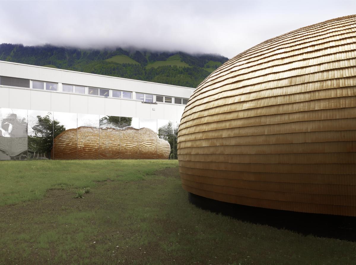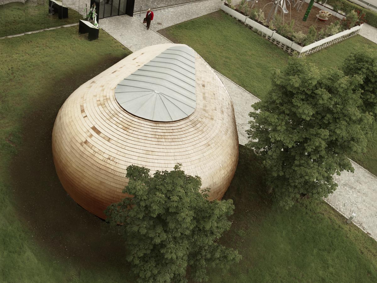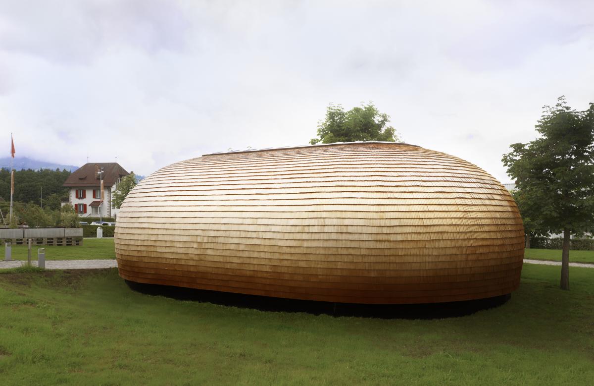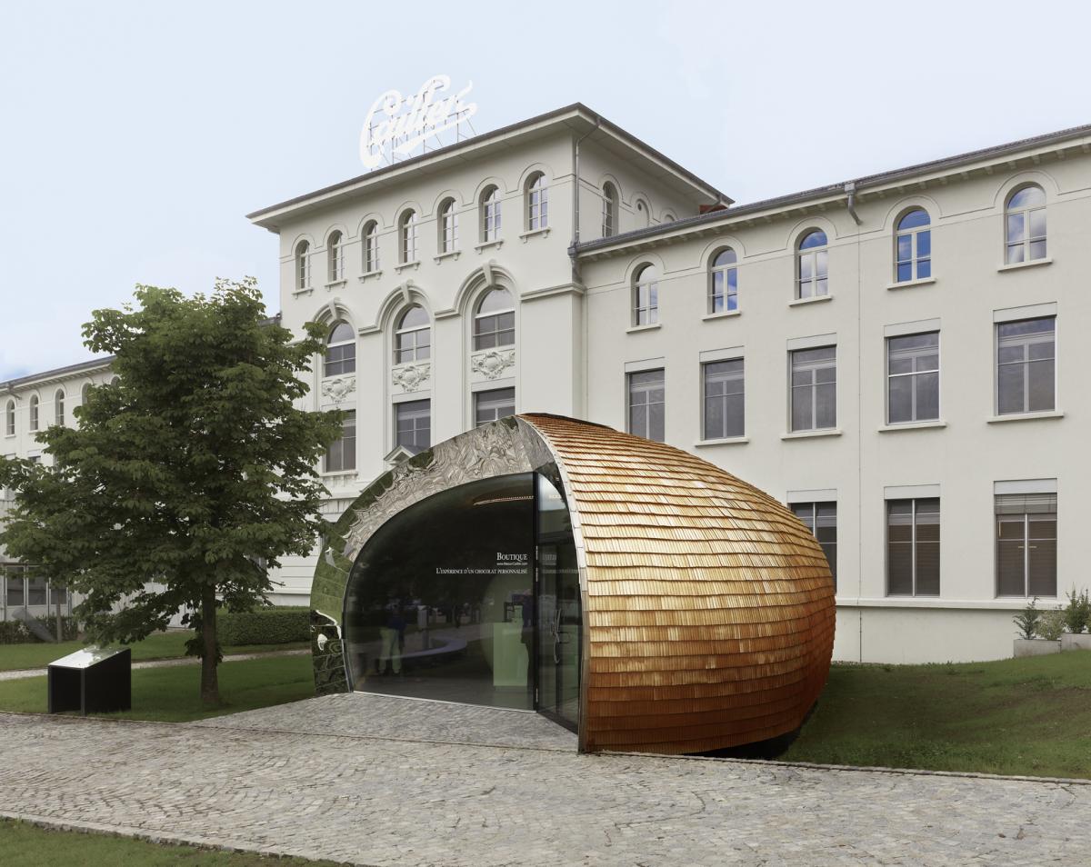 Founded by François-Louis Cailler in 1819, Maison Cailler has been crafting decadent, artisan chocolates for nearly two centuries. It is no wonder that this business stretches its reach with its new flagship store in Broc, Switzerland. The store is a modern, classy, and European equivalent of the fabled Willy Wonka’s Chocolate Factory. The half-ellipsoid shell with gilded tavillon shingles designed by Mathieu Lehanneur encases the store’s interior such that the shape of the structure evokes an all-too-familiar lemon cream chocolate. A metaphorical “bite” is taken out of the building’s form for its entrance, and the glass doors reveal a tasteful – in more ways than one – and elegant display of the delectable sweets.