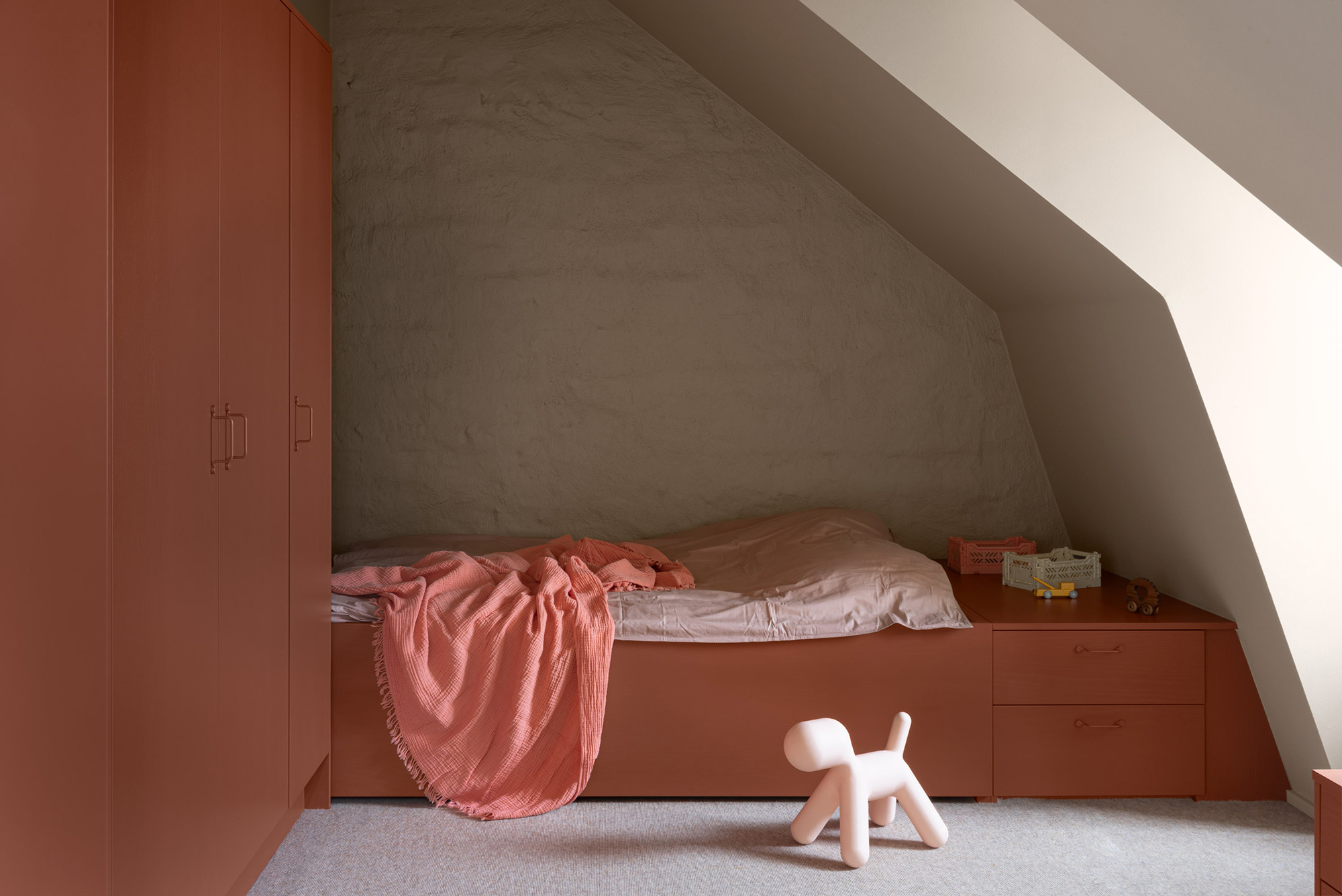 Two children’s rooms created underneath the roof of a loft in Stockholm.