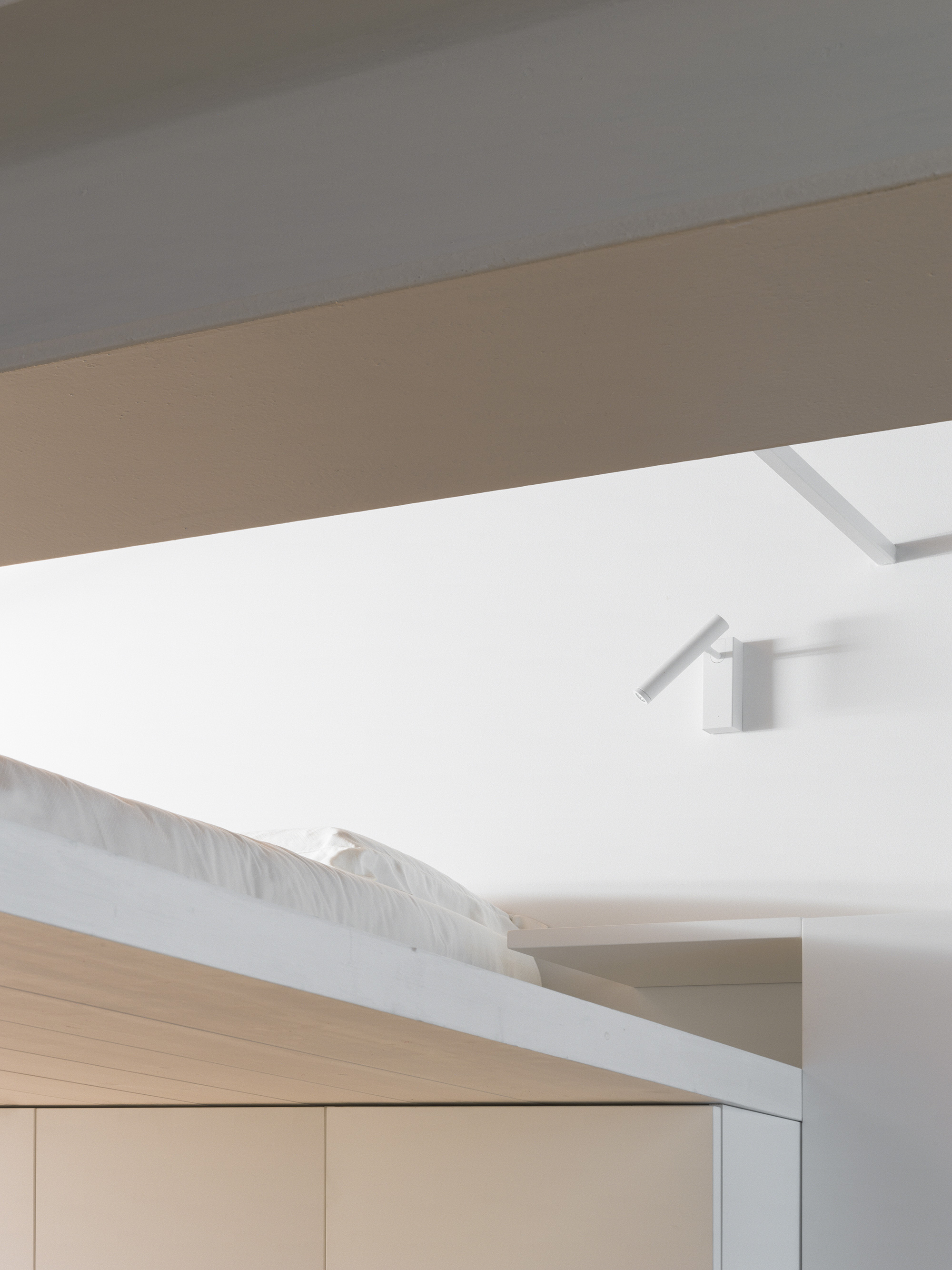 Throughout the apartment, the architect chose furniture and lighting that represent the elegance of Italian design. In the living room, the Agra sofa from Living Divani complements Cassina tables and armchairs. The mezzanine features Newton Slim wall lamps from Egoluce, while in the bedroom there’s an Eclisse lamp from Artemide and a Toio lamp from Flos. Finally, for the dining room the architect chose CH24 Wishbone Chairs from Carl Hansen & Søn. Photographs© Marcello Mariana. Images courtesy of Gianluigi Moreschi.