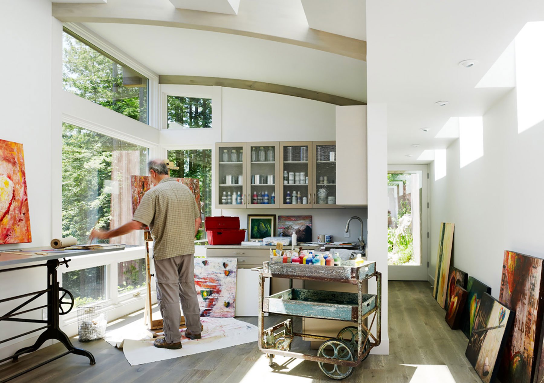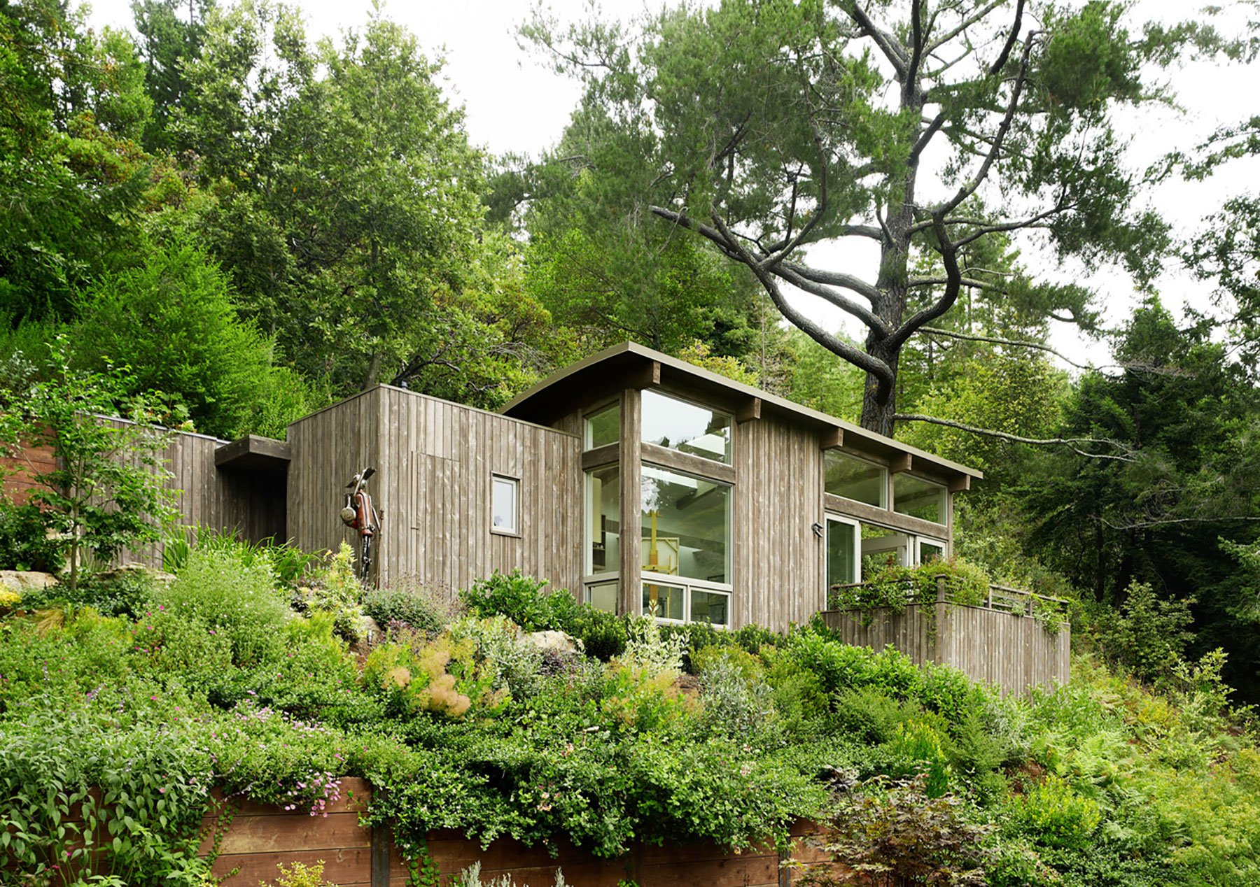 Located in Mill Valley, California, these two cabins designed by Feldman Architecture were built as accessory structures to the client’s existing hill side home; they mainly wanted extra space for an art studio and yoga room which will also serve as a private guest cabin.