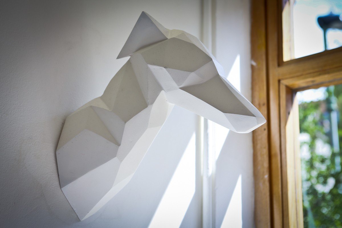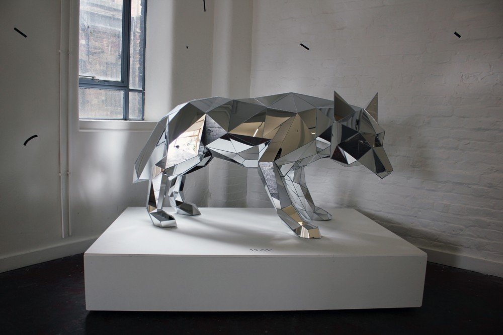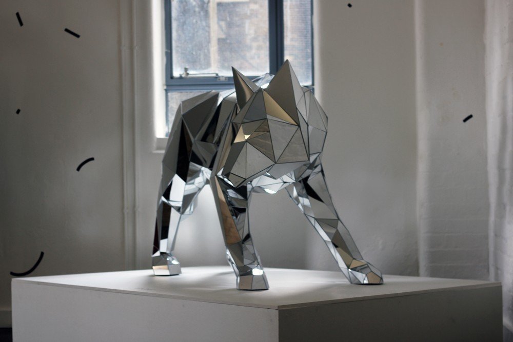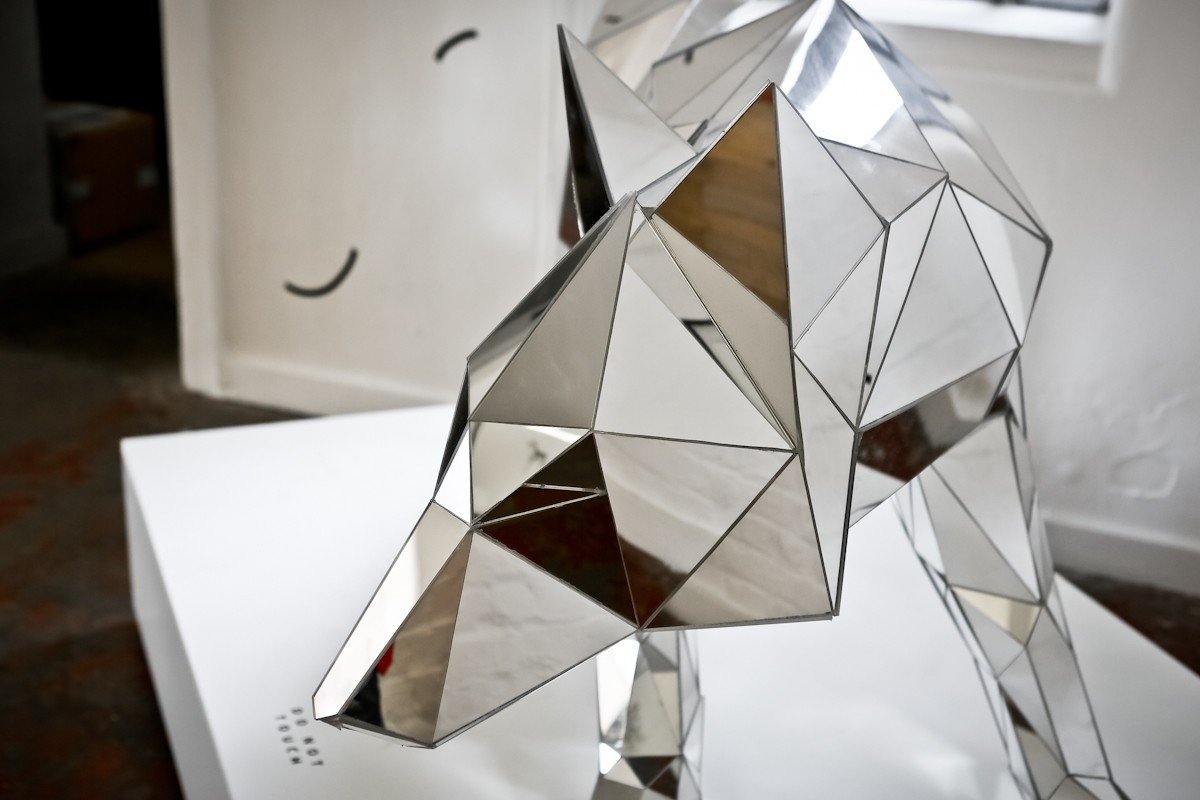 London artist Arran Gregory presents WOLF, a solo exhibition showing at Print House Gallery through September 6th. These taxidermy-inspired renderings of a wolf and rhinoceros are made from mirrors—a reminder that humans, too, are animals. The exhibition also features minimalist, geometrically driven illustrations. Buy some of his prints for yourself via his online shop.