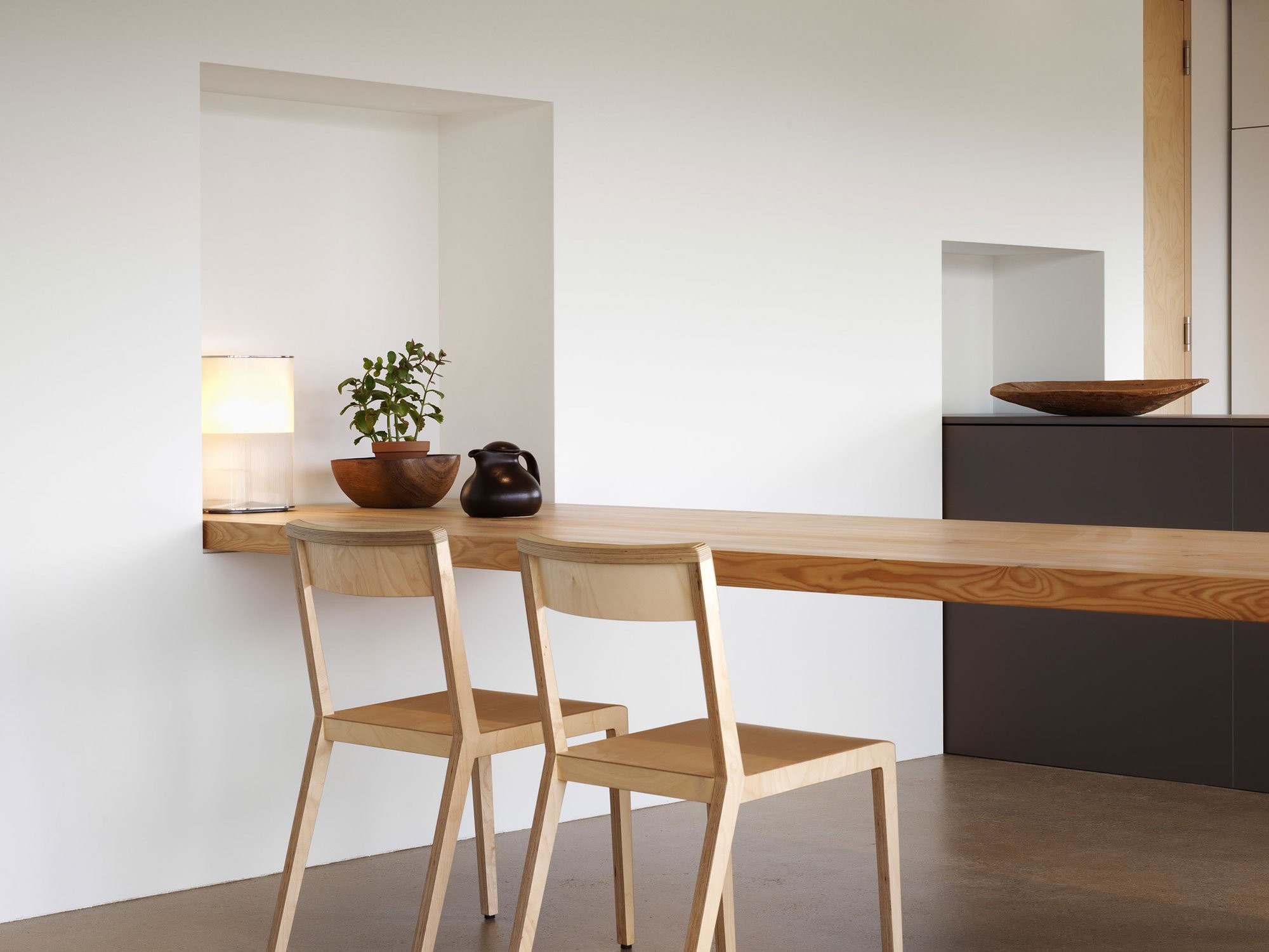 Another way Germann minimized the ecological footprint of the home is in the pre-fabricated, heavy timber construction of the structure. This allowed for reduced cost, faster construction time, and a unique use of local building materials. The rhythm of the heavy timber structure is evident in the architecture itself by establishing a powerful visual expression of how the home is put together.
