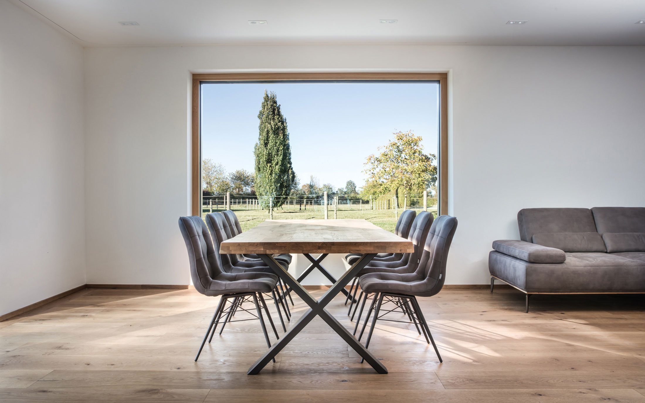 Under the skilled guidance of talented architects, contemporary architecture makes its way into pastoral settings with ease, complementing tradition while bringing a modern aesthetic to rural areas. This modern rustic house in Heilbronn, Germany is a great example. Designed by DIA – Dittel Architekten, the structure blends into a historical country estate that dates back to the Middle Ages. While the dwelling sits perpendicularly to a traditional barn and to the road, it protrudes towards the quiet back garden and the surrounding agricultural landscape. Modern and minimalist, the building celebrates the design language of vernacular architecture. The architects created a dialogue between traditional and modern design cues. A horizontal division marks the border between the base and the upper floors. Plastered in white, the base provides the perfect foundation for the wooden volume.