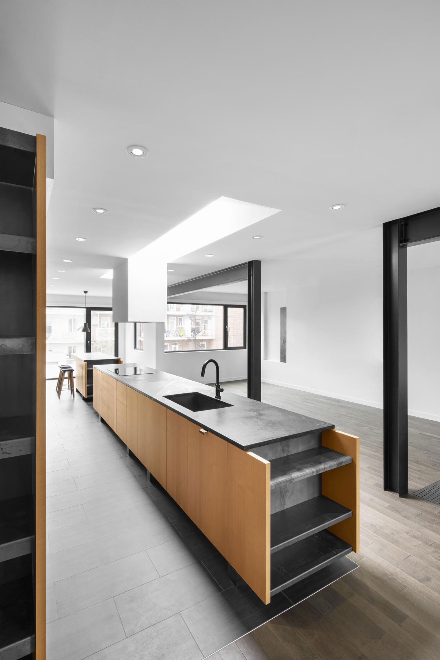 Called the Drolet residence, the home is on Drolet Avenue in Montreal, closeby to the Jean-Talon market, one of Canada’s foodie destinations. The prime location makes it easy for the clients to go on grocery shopping trips together and enjoy the whole process of putting good food on the table.