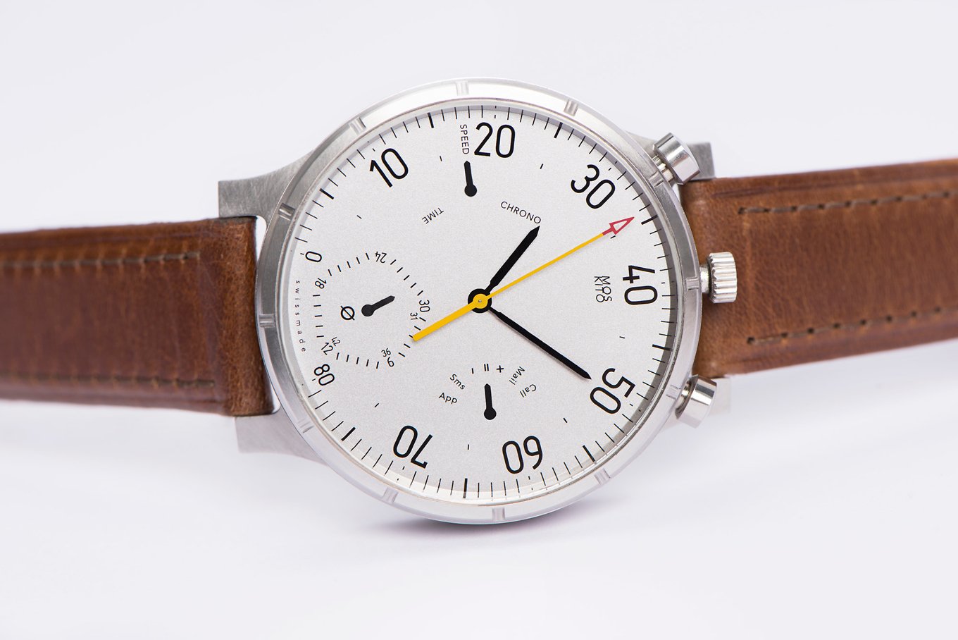 As a smart watch, Moskito offers a range of information when paired with the dedicated app via Bluetooth, from call and e-mail notifications to battery charging levels. The analog tachometer provides info on speed, distance, average speed, and the best riding times, which you can then easily upload to Strava or Garmin Connect. In terms of design, the watch features a classic aesthetic with its colored hands and large numbers that ensure perfect legibility. The 44mm case, made from CNC machined aircraft-grade aluminum or high-quality stainless steel for the Fly and the Classic models respectively, houses a Swiss-made precision quartz movement and a rechargeable Li-Ion battery. You can find kph or mph versions for both the Classic and the Fly watches on the brand’s Kickstarter page, with a bike mount and USB charger also included. Images courtesy of Moskito.