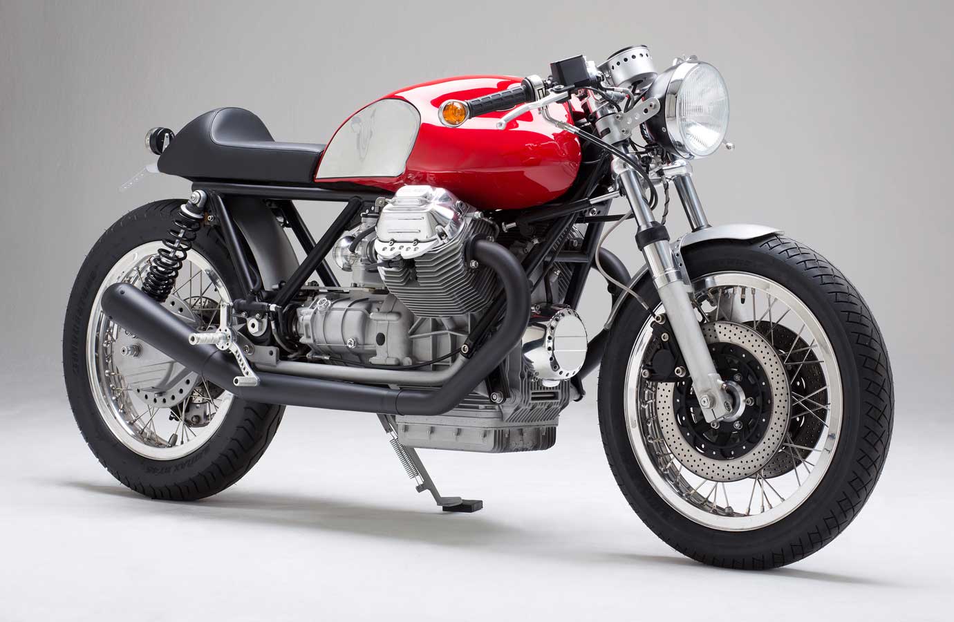 New from Hamburg-based workshop Kaffeemaschine, this Moto Guzzi build runs on global inspiration and connections. The German builders remade the classic Italian motorcycle for an American client who loves the British café racers of the 1960s. Kaffeemaschine’s customizations balance cross-cultural influences, lightness and muscle, and vintage and contemporary forms in one tempered design with a slim profile and a flash of red.