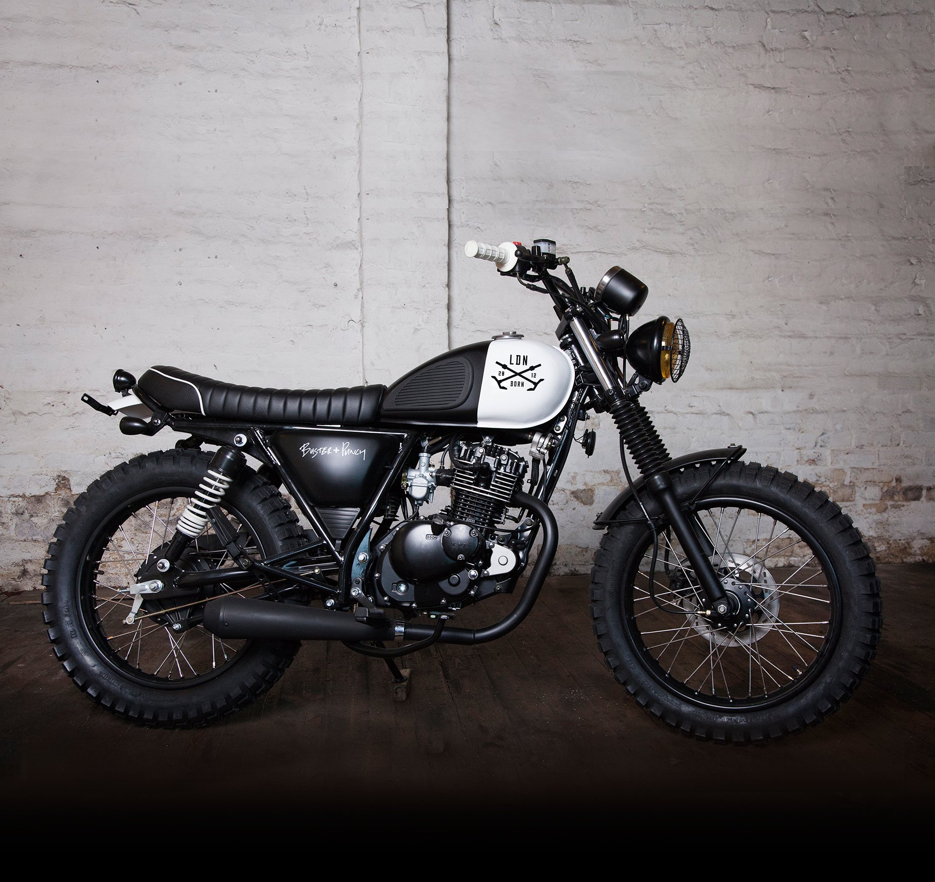 While many people can appreciate the beauty and power of a custom motorcycle, few can often find the means to commit to one. Hoping to change this trend, Mutt Motorcycles in collaboration with Buster + Punch aspires to offer a custom-built ride to the every man at an affordable price. Inspired by London’s fashion, music and famed biker cultures (from Mods to Rockers), the 125cc Mutt Motorcycle packs a wallop of a punch. The bikes feature rugged 18” Twinduro tires, custom upholstered seats, and a tinted yellow headlight with a grill to recall the durable thriftiness of classic café racers. The yellow especially pops thanks to the stark black and white color scheme of the rest of the ride, which especially accentuates the grips and fuel tank. Each bike features Buster + Punch paintwork and solid metal detailing, as well as a vintage-style racing number on the side of the fuel tank to cleverly match the edition order. And as the bikes are built in a run of only 50, you can rest assured each one is instilled with the strictest adherence to quality possible. So whether you’re a gear head or just looking for a better ride for your commute, a Mutt Motorcycle is a commitment worth making.