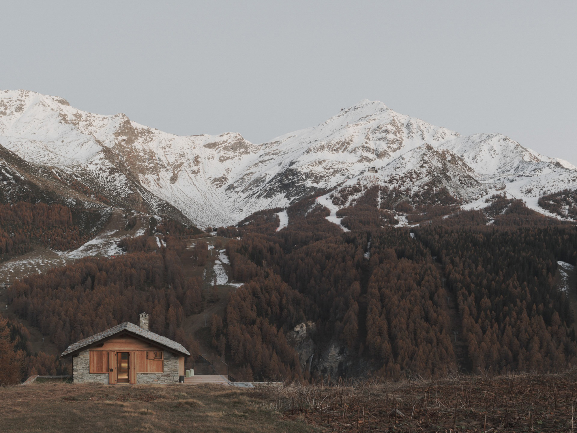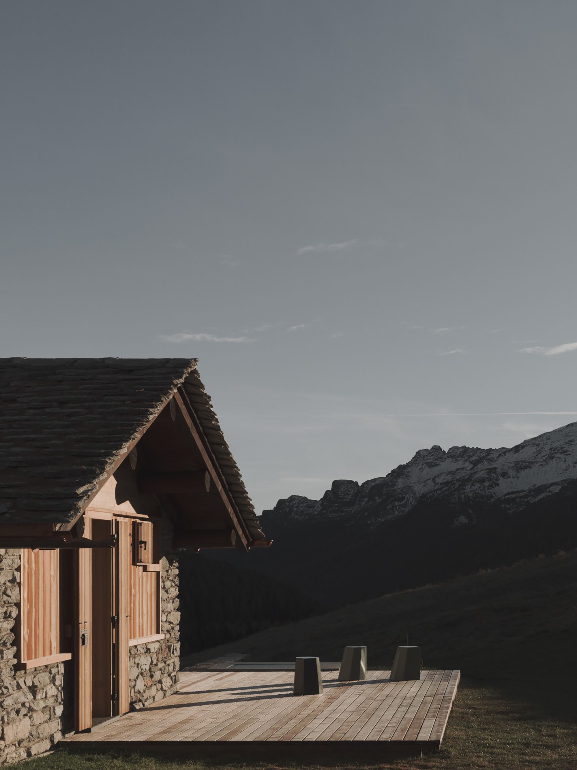 An old mountain chalet redesigned with new interiors and subtle extensions.