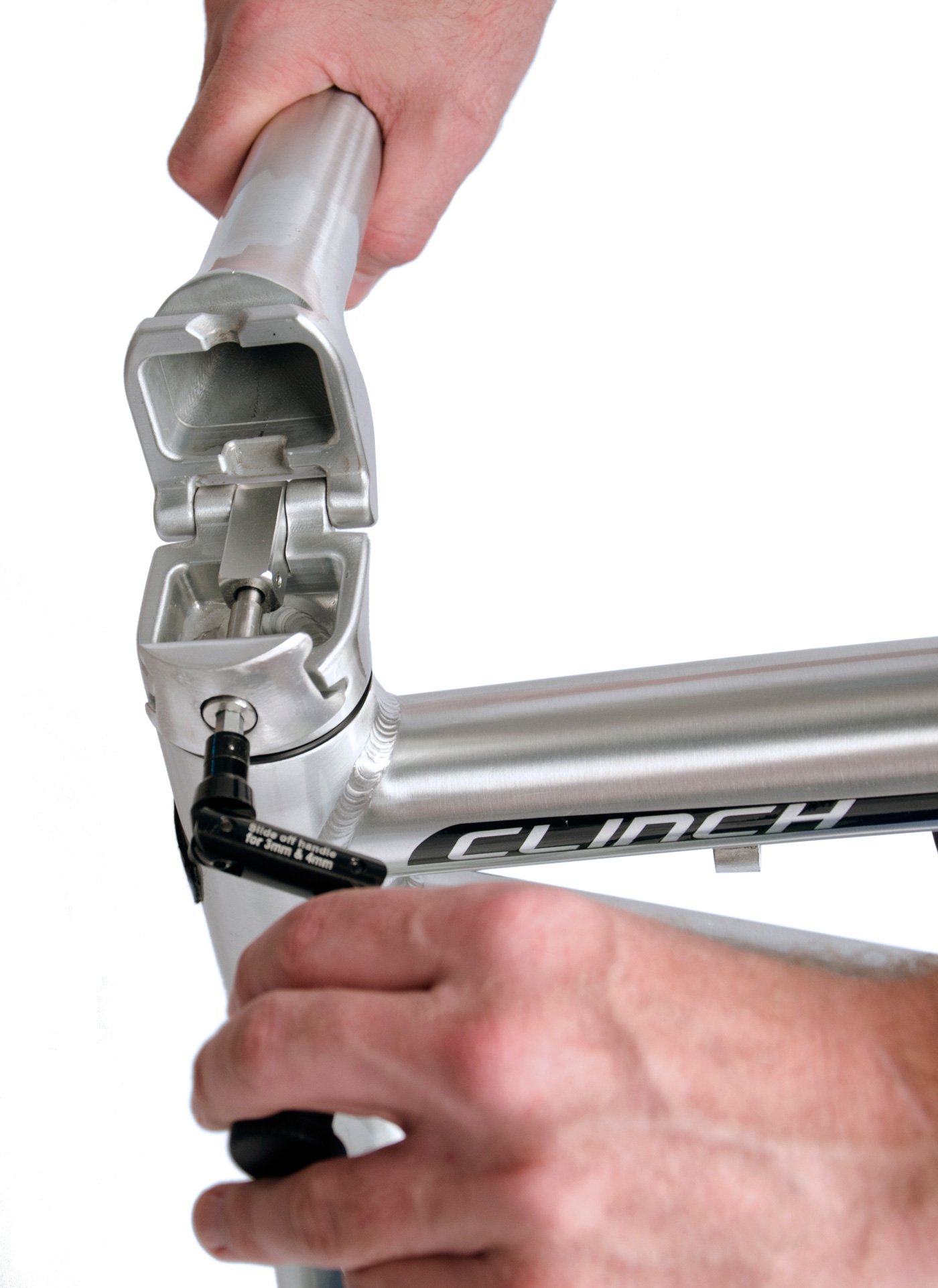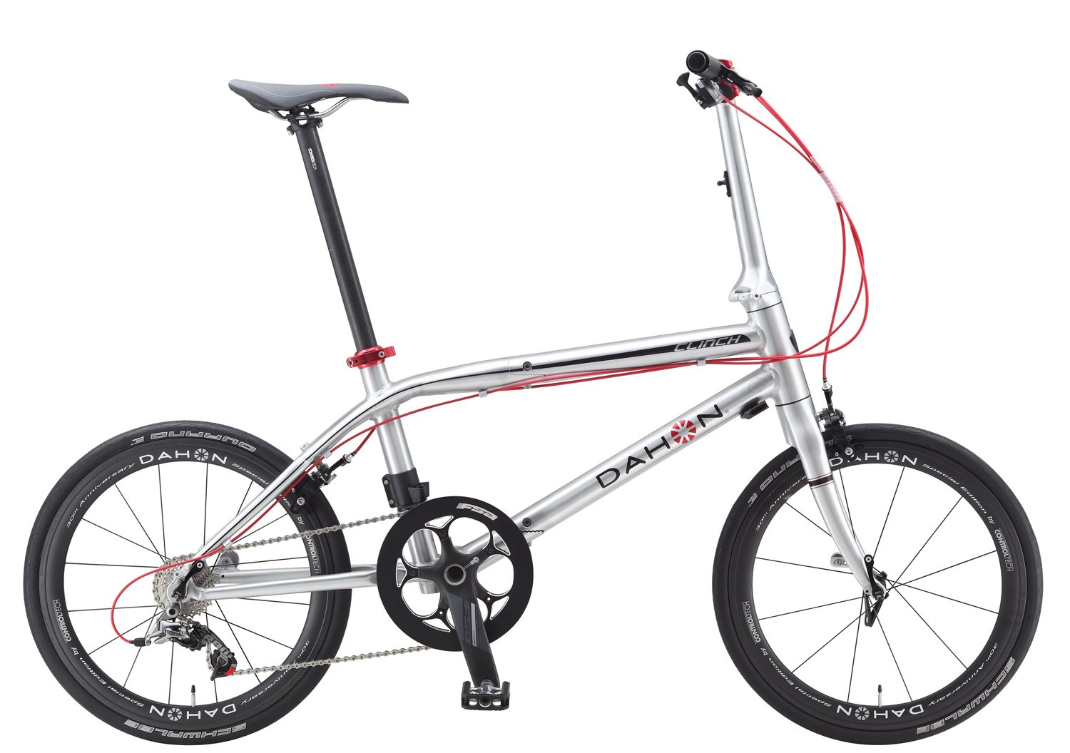 The Clinch boasts a Lock-Jaw hinge, a patent-pending inverted handle post, a 10-speed SRAM Red drivetrain, an FSA-SLK-BB30 crankset, and quick-release pedals. Lightweight and fast, this speedster design makes quick turns on Carbon 451 wheels with sealed cartridge hubs and Schwalbe tires.