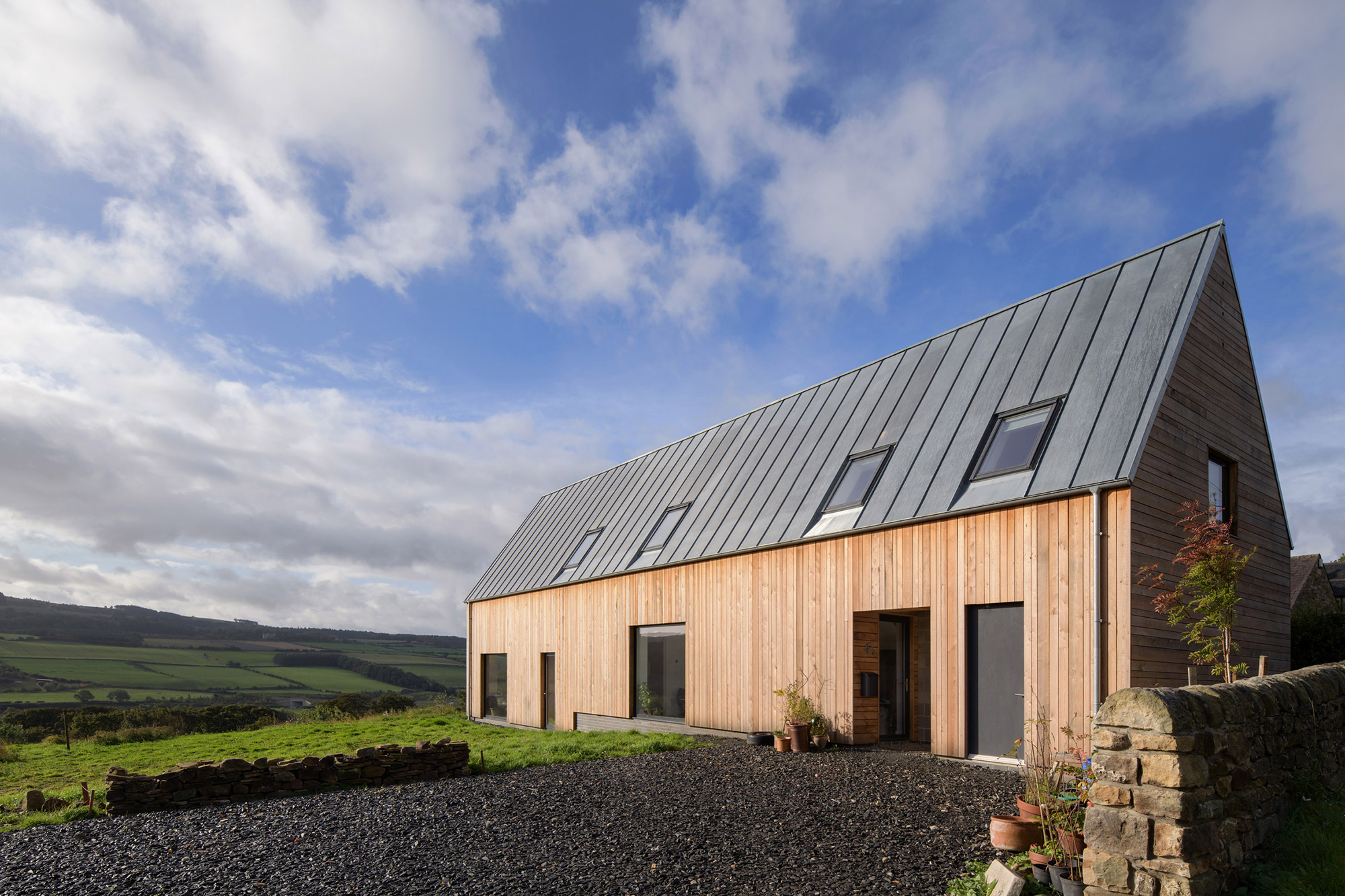 Located on the outskirts of Haydon Bridge village in Northumberland, this barn-like dwelling celebrates the site’s heritage and vernacular style with an understated contemporary design. Named North Bank, the house lies in a picturesque rural area. Elliott Architects made the most of the plot of land to maximize the sunlight and panorama while providing privacy from the road and neighboring houses. Oriented toward both the Tyne Valley and the Pennine Hills, the house has access to beautiful views. As the site is in a conservation area, the studio completed the project with a thoughtful approach.