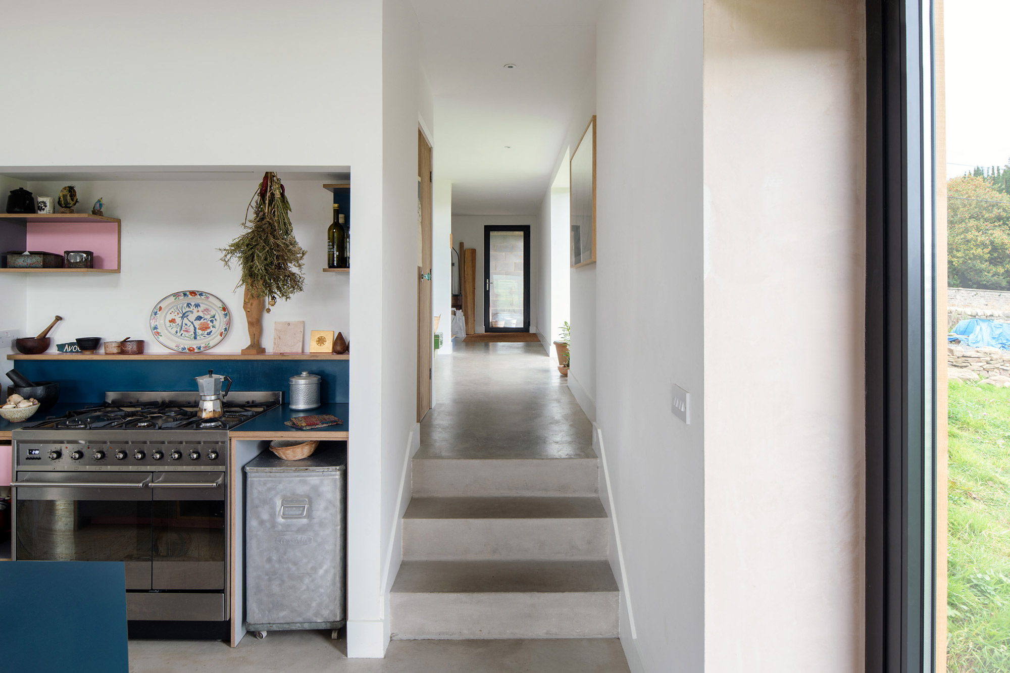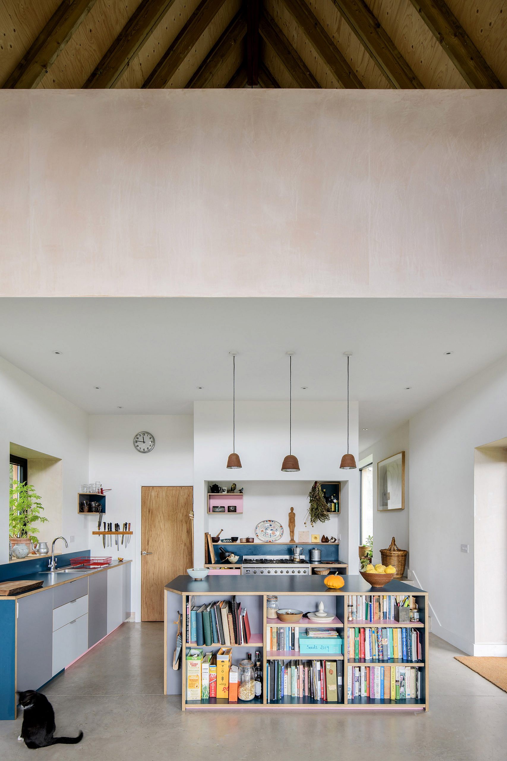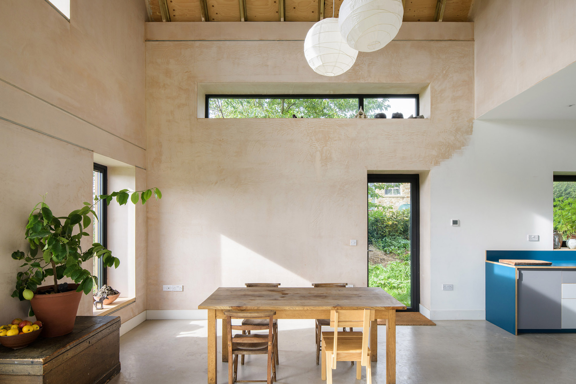 Exposed wooden beams add more charm to the interior. Open to the ground floor space, the upper level contains the bedrooms and a bathroom. The studio used large square windows and skylights to capture sunlight throughout the day. A sealed plaster finish on the walls adds a raw, rustic feel to the living spaces, enhancing the house’s character at the same time. Photographs© Jill Tate.