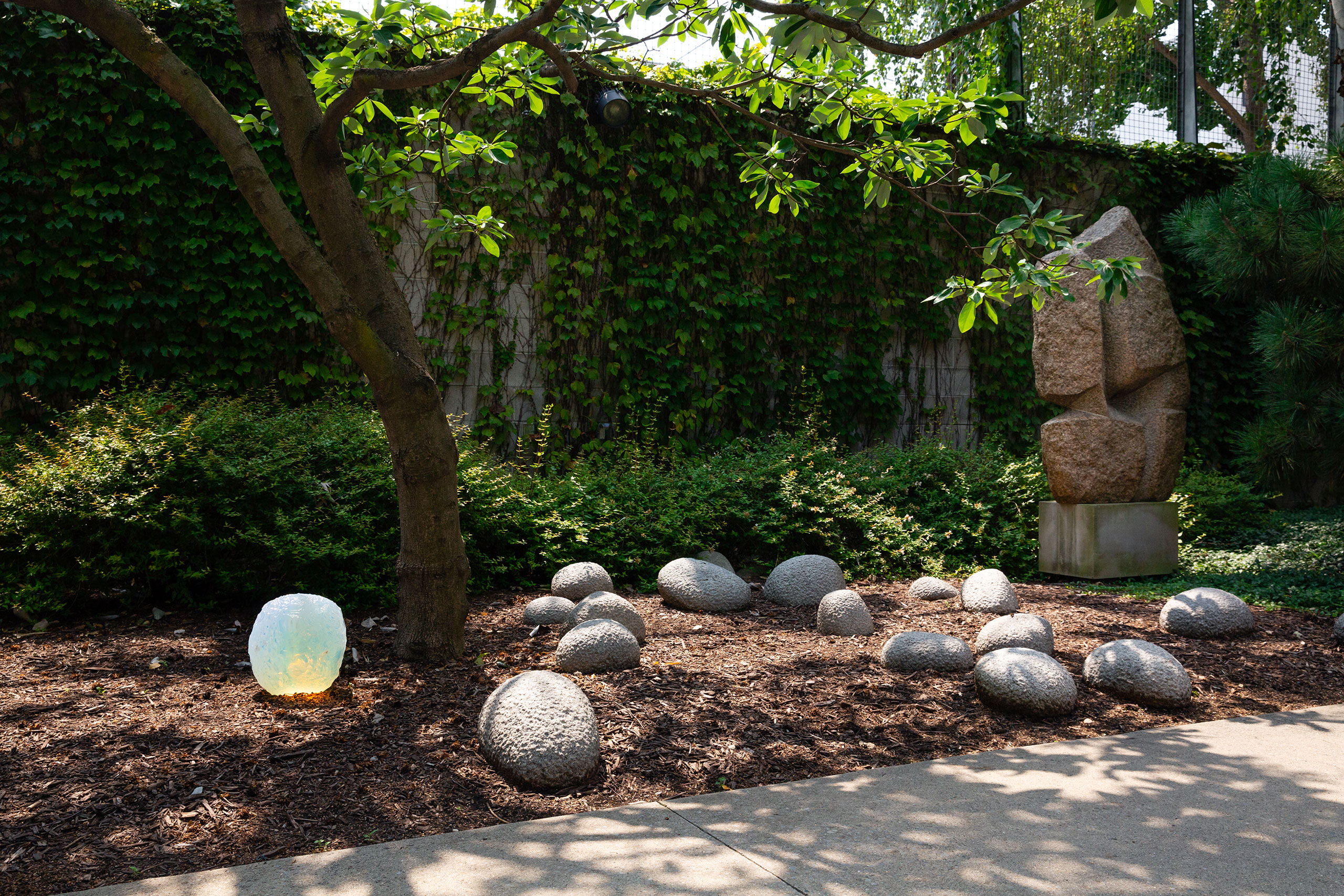 Throughout the garden and the museum’s permanent collection, design pieces create a powerful dialogue with iconic sculptures. In one gallery, minimal lighting appears alongside Isamu Noguchi’s late-career basalt and Manazuru stone sculptures. Outside, the studio’s Offerings–Rock II piece stand on Isamu Noguchi’s granite Garden Table from 1983. To accompany the exhibition, Objects of Common Interest and The Noguchi Museum have also launched a digital feature that explores the late artist’s relationship to his “intellectual home,” Greece. The Objects of Common Interest: Hard, Soft, and All Lit Up with Nowhere to Go runs until February 13, 2022. Photographs© Brian W. Ferry, Giorgos Sfakianakis, Objects of Common Interest, and The Isamu Noguchi Foundation and Garden Museum / Artists Rights Society.