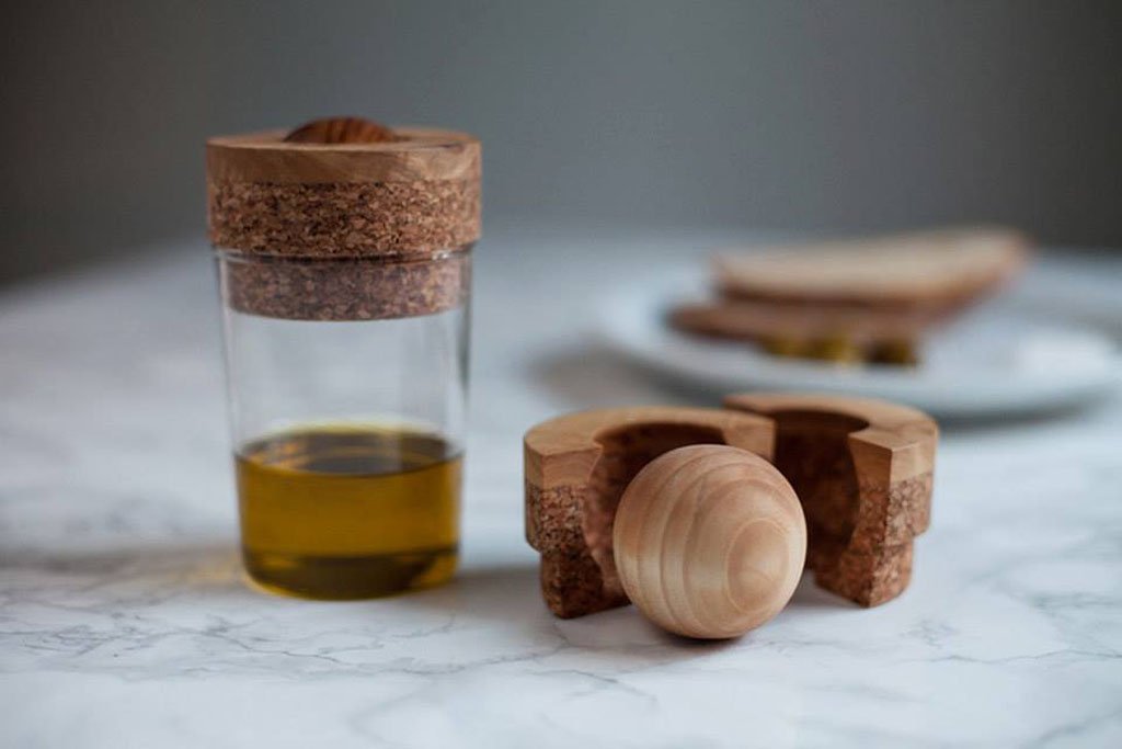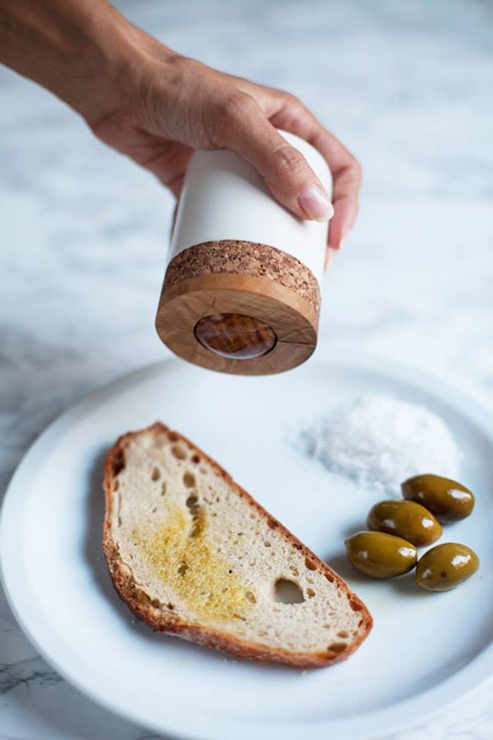 Oaza’s roll-on dispenser spreads oil in a thin, even coat, nipping both double-dipping and drenched corners in the bud. While many readers may agree with me that there’s nothing wrong with bread that tastes like olive oil at one end and plain old crust at the other, using a roll-on tool could be a benefit to restaurants and busy households looking to reduce their mess. Replacing the standard cruet and dish, the oil roll-on simplifies the dinner table and adds texture with its body of wood, cork, and glass or porcelain.