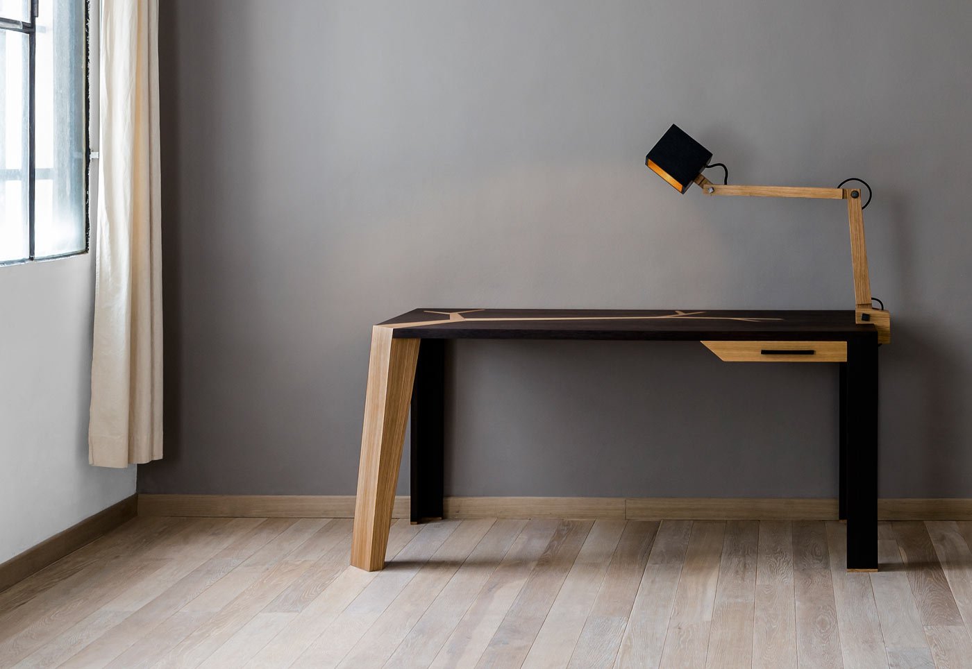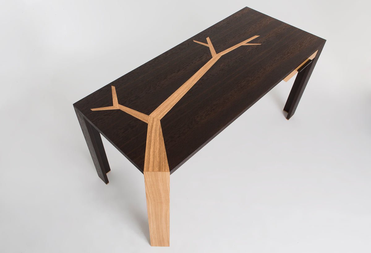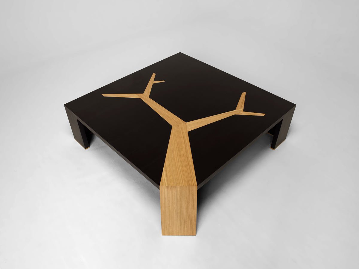 Designed by Olivier Dollé, the Angkor collection draws inspiration from 12th century temples at Angkor Wat in Cambodia, where roots and branches climb the walls. Dollé’s interpretation reimagines Angkor as a contemporary table with contrasting natural and stained wood. The tree-shaped component is made of birch, while the rest of the table is made of oak, a difference which, combined with the contrasting shades and angles of the grain, echos the temples’ blend natural and manmade elements. The Angkor table projects timeless questions about the relationship between people and their surroundings onto a modern domestic form, available as a coffee table, a dining table, or a writing desk with white, brown, or black veneer.