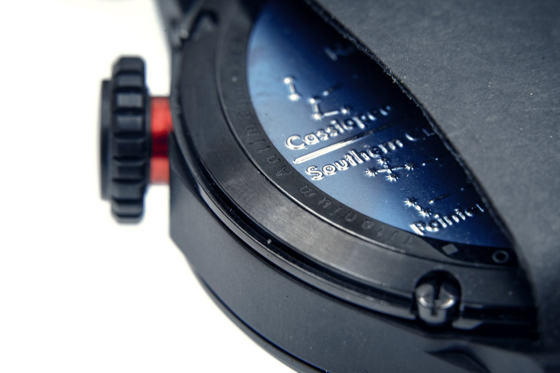A patented carbon fiber strap complements the textured dial. Made of recycled materials, it’s not only eco-friendly, but also hydro repellent, ultra-thin, and super-resistant. Fans of the original will be delighted to find the signature solar compass feature with the turning bezel that points North as well as the stellar map on the back case. Other features include a grade 2, 44mm titanium case with a black PVD treatment and a blue PVD finish on the back, two screw crowns, and an anti-scratch and anti-reflection sapphire crystal. Of course, the Terra Cielo Mare watch is also anti-magnetic and waterproof up to 10 atmospheres to provide superior performance. Photographs© Terra Cielo Mare.