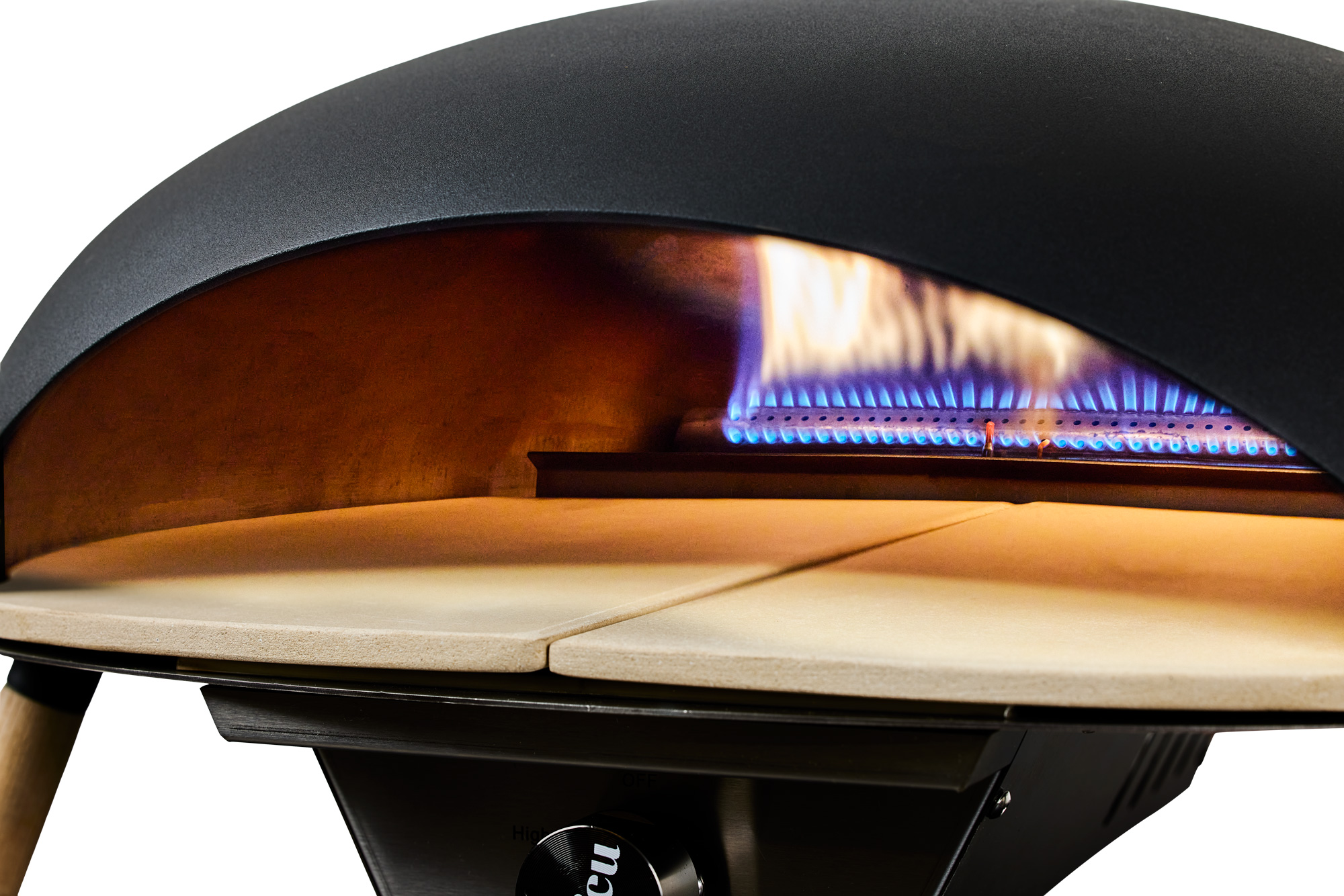 This high-end portable pizza oven with a propane heating system optimizes function and cooking efficiency. It comes with heavy-duty pizza stone plates that ensure each pizza has a crispy base, and an insulating layer that keeps the oven hot for longer. Optimal heat circulation ensures that the toppings cook to perfection while the base stays crispy on the pizza stone. More importantly, the design of this outdoor gas pizza oven allows the user to cook up to 35 cm pizzas like a pro, in only a few minutes.