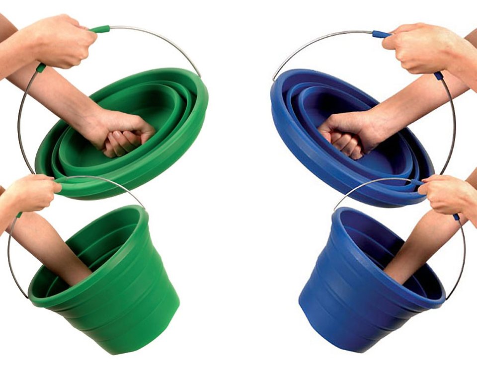 The collapsible cup has long been in use as part of travel kits, and even the water bottles sport this fold-and-fit design. Wacky Practicals scales things up even further with the Pack-Away silicon collapsible bucket, perfect for outdoor explorations or simply as a gardening gadget. A simple solution to awkward and bulky metal pails, the bucket condenses as a result of several nested folds, and easily pops back into shape when necessary. The fun character of the transformation matches the bucket’s bright colors – six options are available – and holds up to 7 liters. For a flat-packed 5 centimeters, that’s quite a feat!