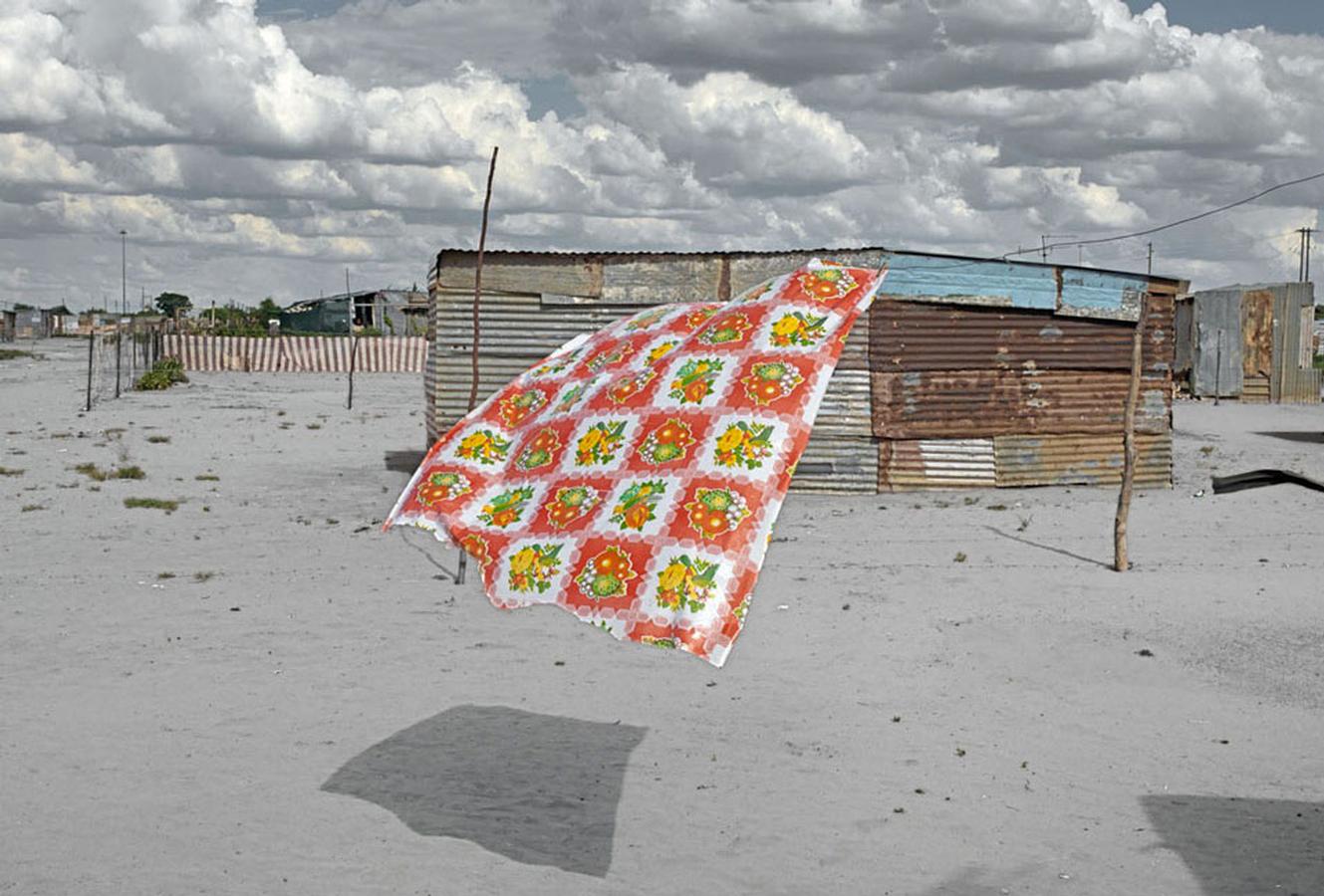 Is it a sign of denial or is it sign of hope? This duality, as presented in Graeme Williams’s photo-essay Painting Over the Present, portrays the destitution that has stricken some South African communities as a result of political and economic shifts. The colorful homes, though humble in size, echo two voices. While vibrantly banded textiles wave in the wind and the lime green siding of a house jumps out from the gray terrain, these splashes of energy nevertheless seem lonely. There is a fleeting sense of existence in the Williams’s photographs that is just as tentative as it is tenacious. And so, the emergence of color is far from a white flag of defeat and desperation. In any case, such a flag would be dyed with hues equally as vivid as the yellows, lavenders, and pinks that serve as a poignant cry for change and revolution.