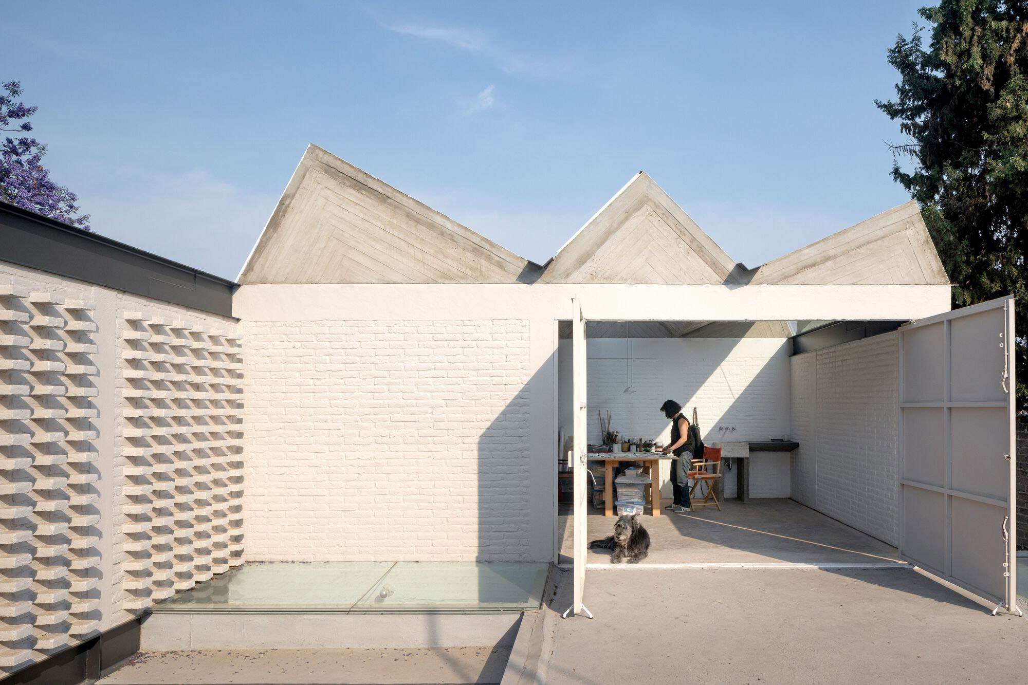 A sculptor’s house, designed with three volumes, courtyards and an art studio.