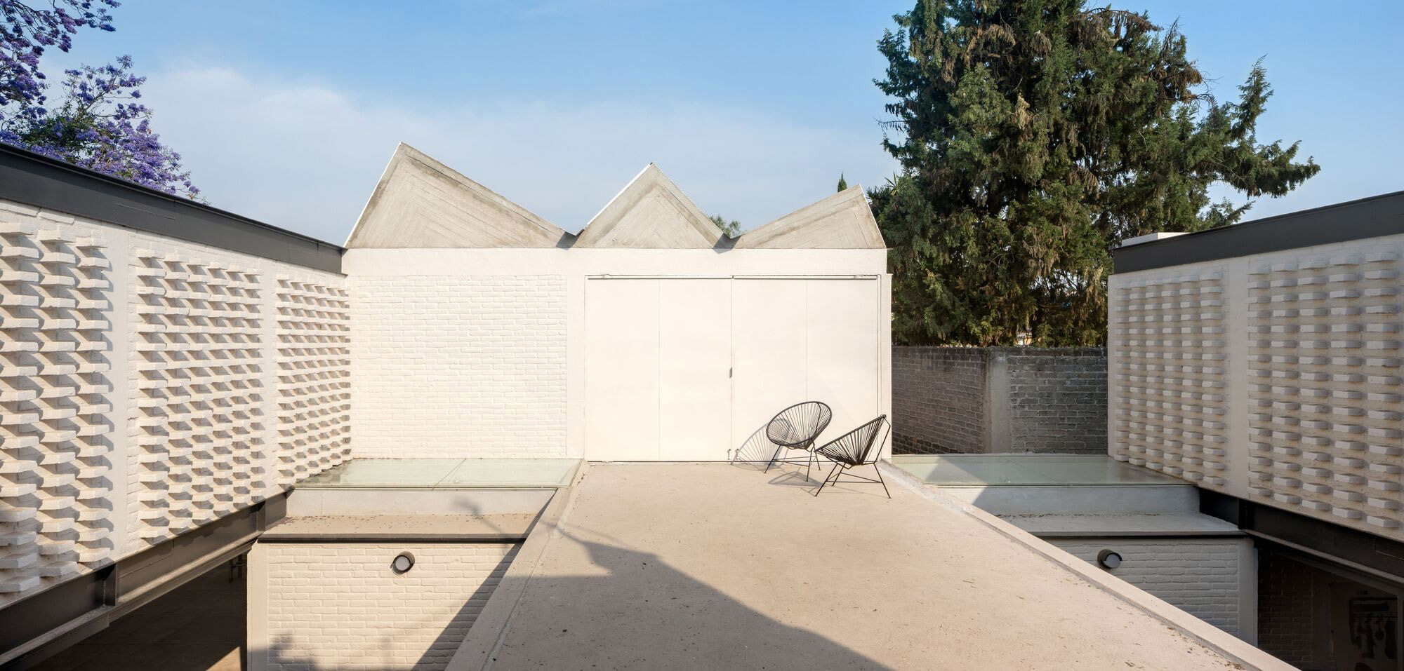 Located in Mexico City, this property comprises both a home and an art studio. Architecture firm Vrtical designed the dwelling for sculptor Edna Pallares, drawing inspiration from her work, but especially from the materiality of her sculptures. At the same time, the building optimizes access to natural light in different interior spaces. Featuring three volumes, the house also boasts courtyards that establish a more creative spatial sequence through indoor and outdoor areas. A corridor finished with staple-shaped walls links all three volumes, acting as the house’s spine. The studio collaborated with the artist throughout the construction phase, adapting the design according to the client’s wishes. As a result, there’s a new drawing studio, which was not included in the initial plans. Other changes implemented after discussions with the client include sculptures embedded in the walls and the choice of flooring surfaces.