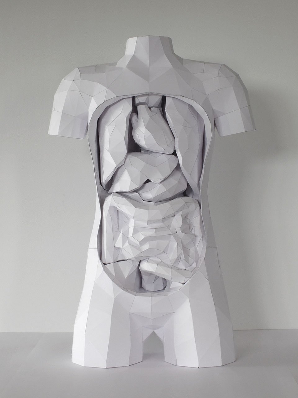 The human body is a phenomena that pokes at our curiosity. Its structure, order, the magic of healing and regeneration, the way it all works together…simply marvelous. Yet we are still more interested to interact with our anatomy folded, molded from paper in Paper Torso by Horst Kiechle. The bodice maintains unprecedented accuracy, each organ free for movement so you can assemble the lungs, pancreas, kidneys, stomach, bladder, intestines, liver and heart. Templates are available free of charge to print out and build with the help of instructional You Tube videos so you can become a master of biology yourself.