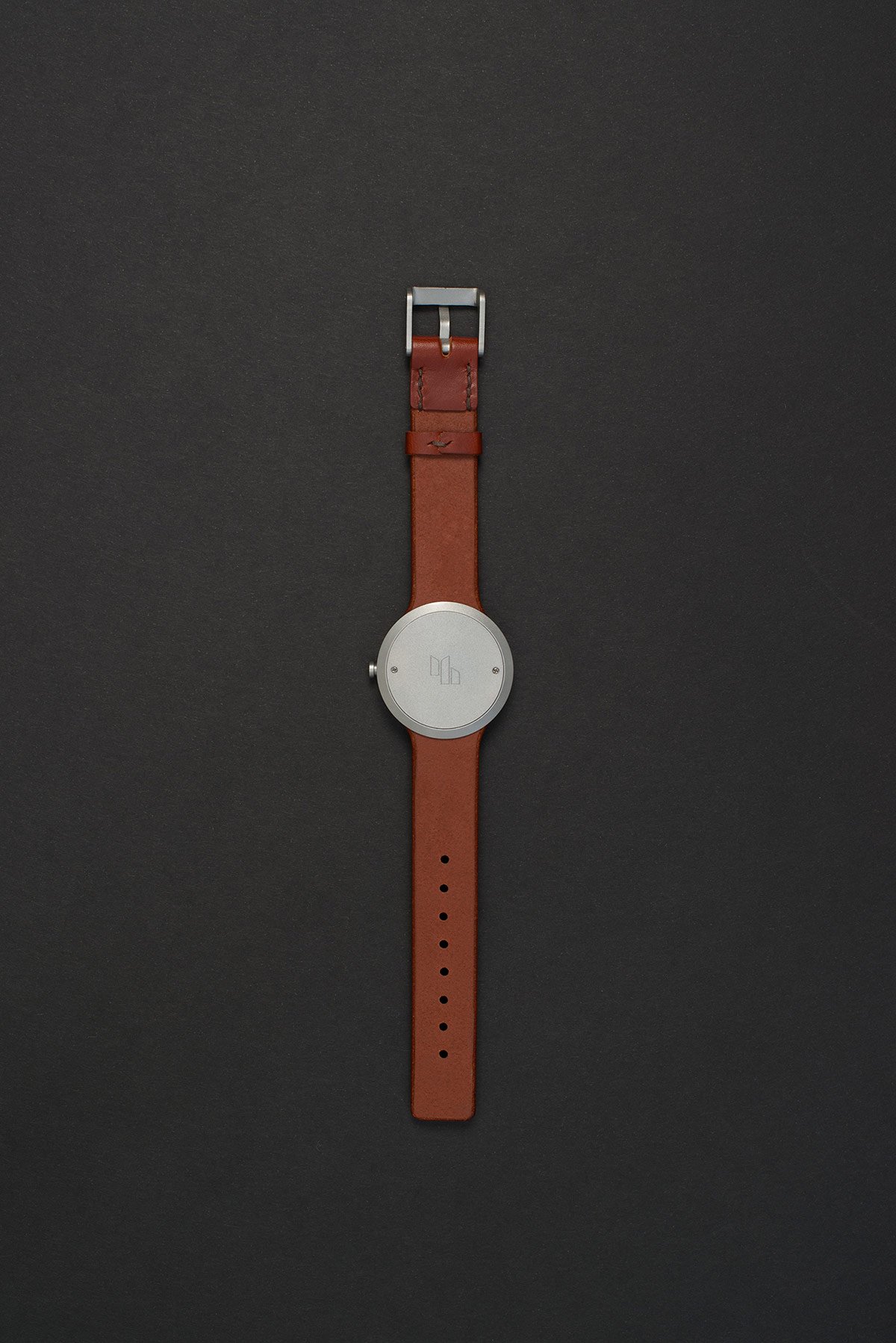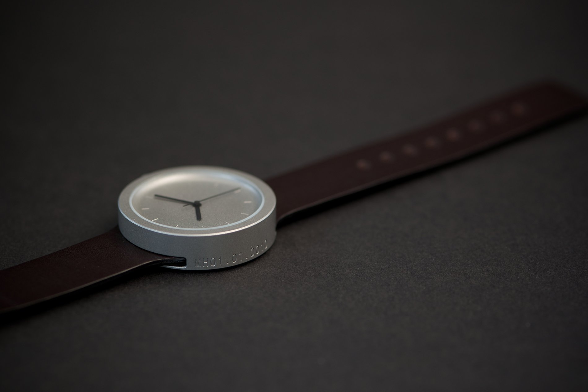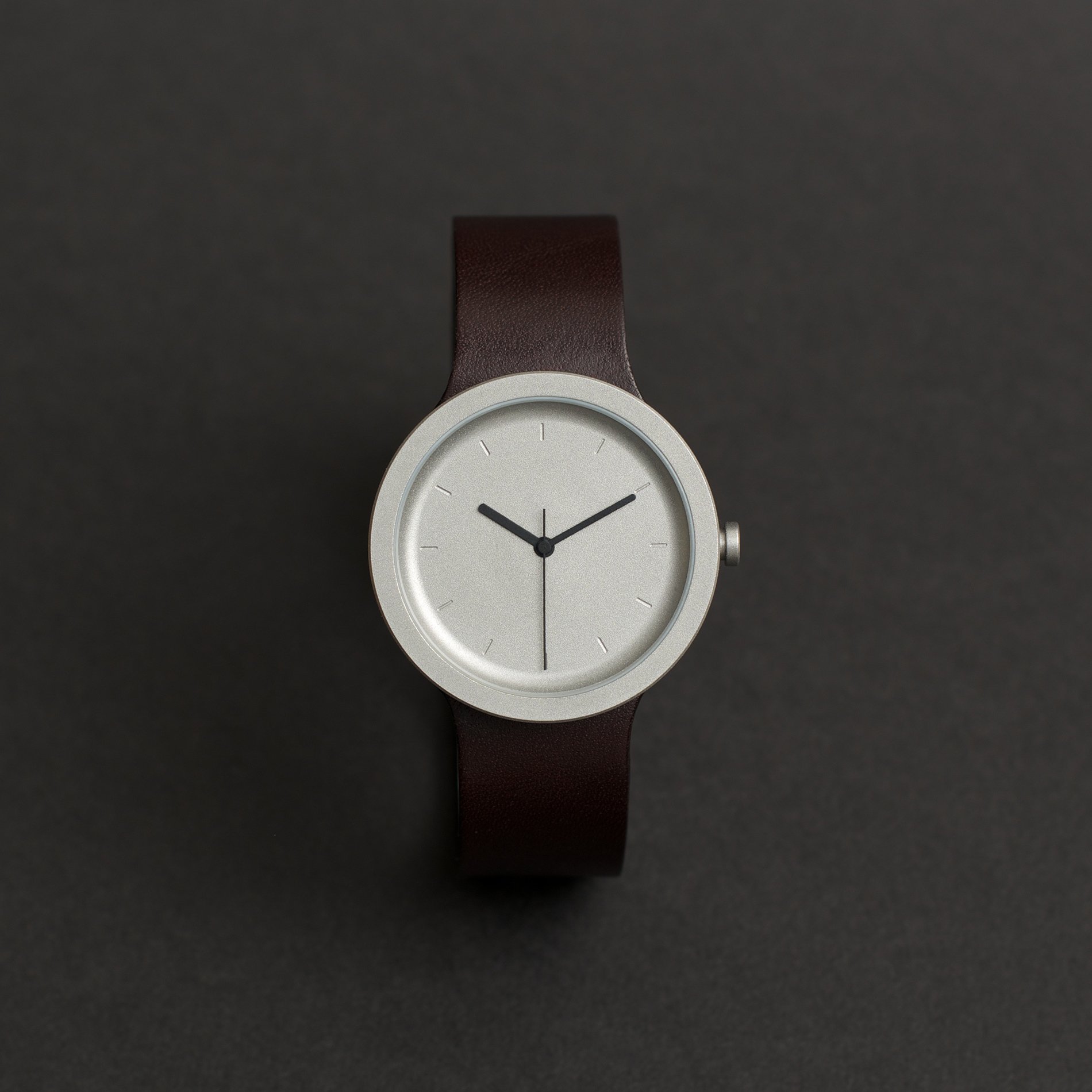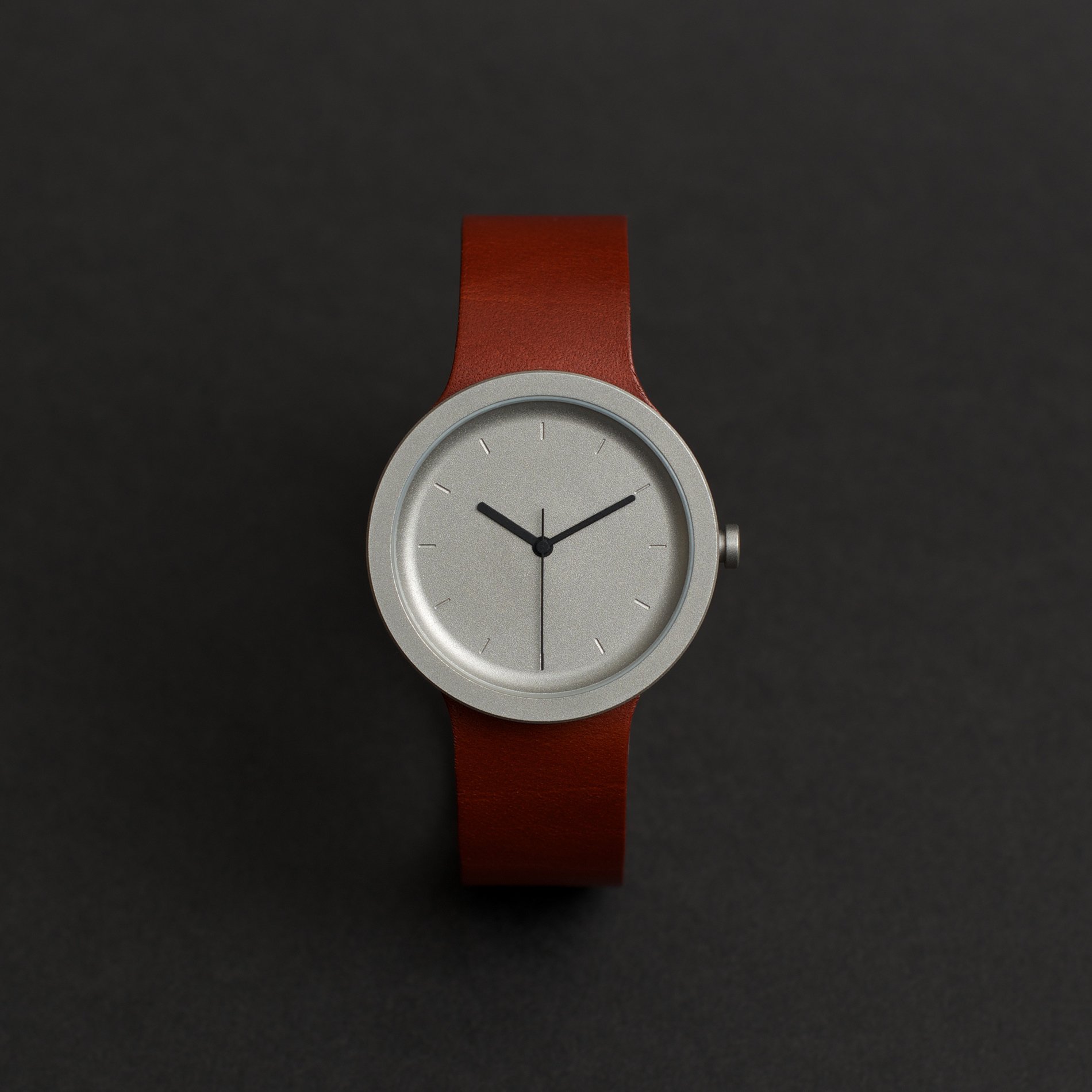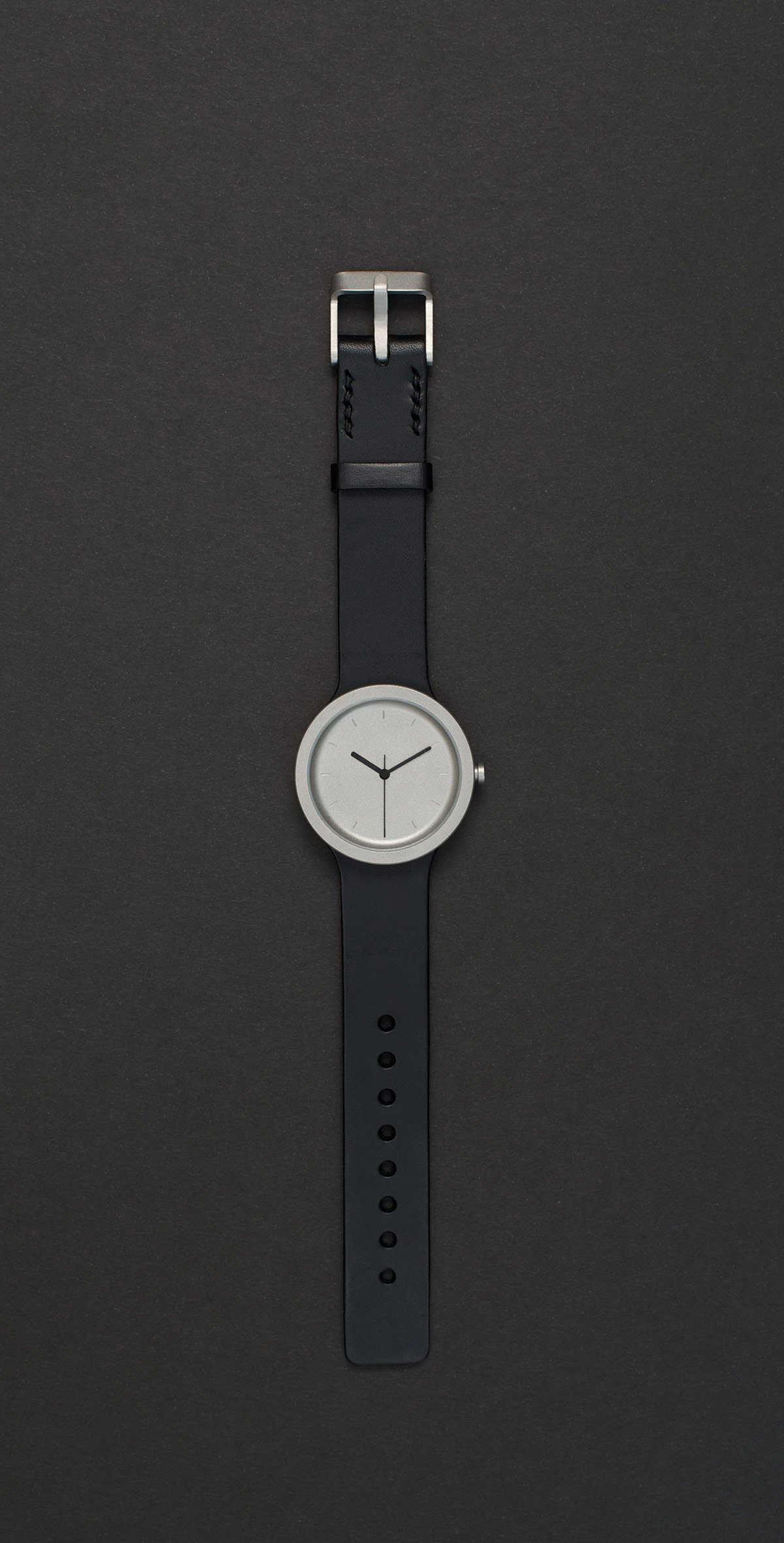 British furniture designer Matthew Hilton put on a new face with his first ever watch design, MH01, launched at the London Design Festival in 2013. His self-taught skills combined with his knowledge of modern manufacturing result in “desirable, rigorous, and beautiful products; incredibly efficient and “exquisitely made,” his innovative timepiece seamlessly combines a 316 marine grade stainless steel case, watch face, and a battery powered Swiss quartz movement into a single component. A full grain vegetable tanned leather strap – complete with a stainless steel buckle – passes directly through the elegant form. Available in black, brown, or tan, the acid-resistant strap provides a delightfully organic contrast to the watch’s metallic surface. Hilton reduces the archetype even further on its face, which no longer contains numerals; custom-made Swiss hands land on subtly engraved tick marks that indicate the time. Through a precise approach and classic aesthetic, the designer has created a piece that will surely stand the test of time – both through routine wear and tear and amidst evolving styles.