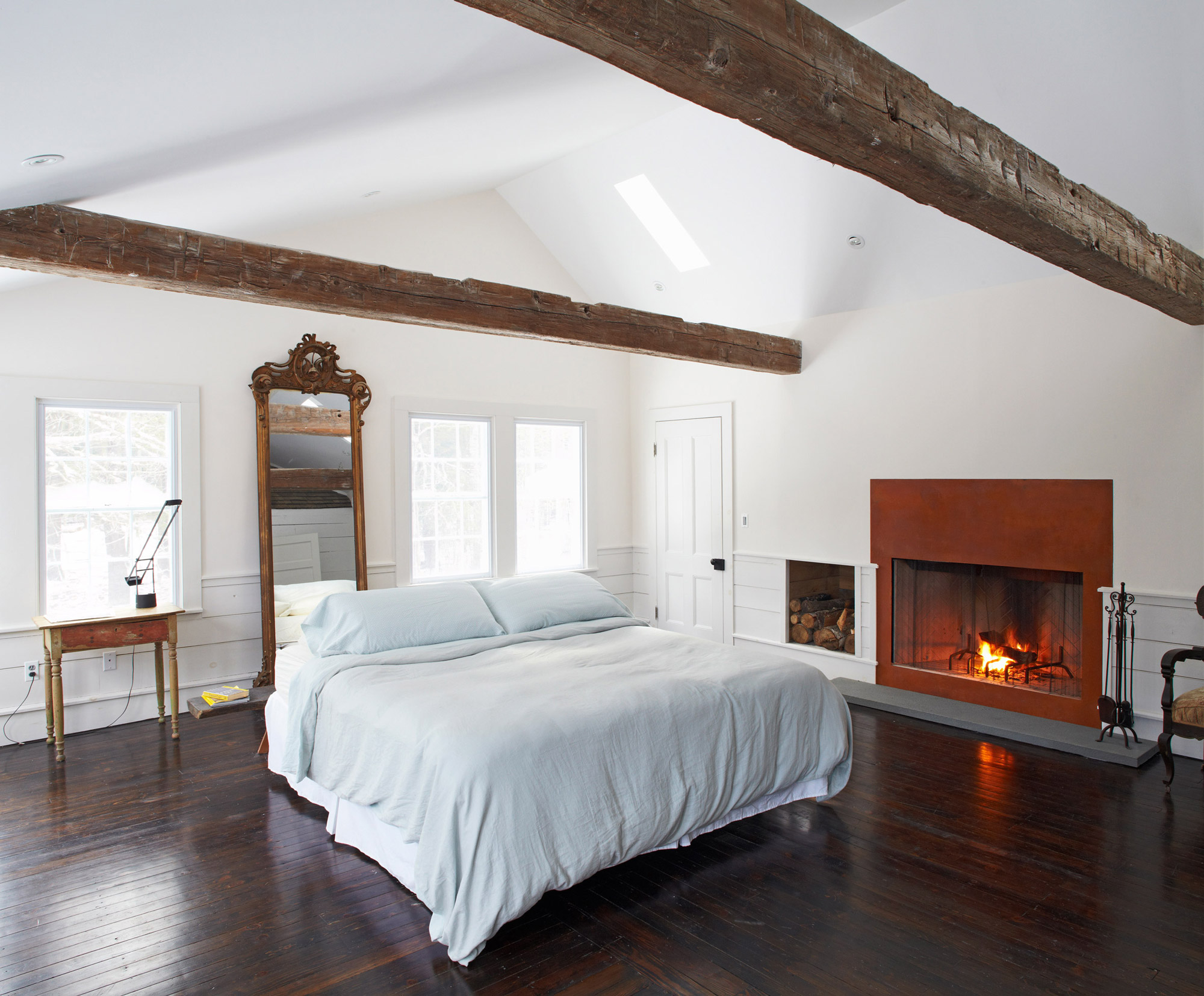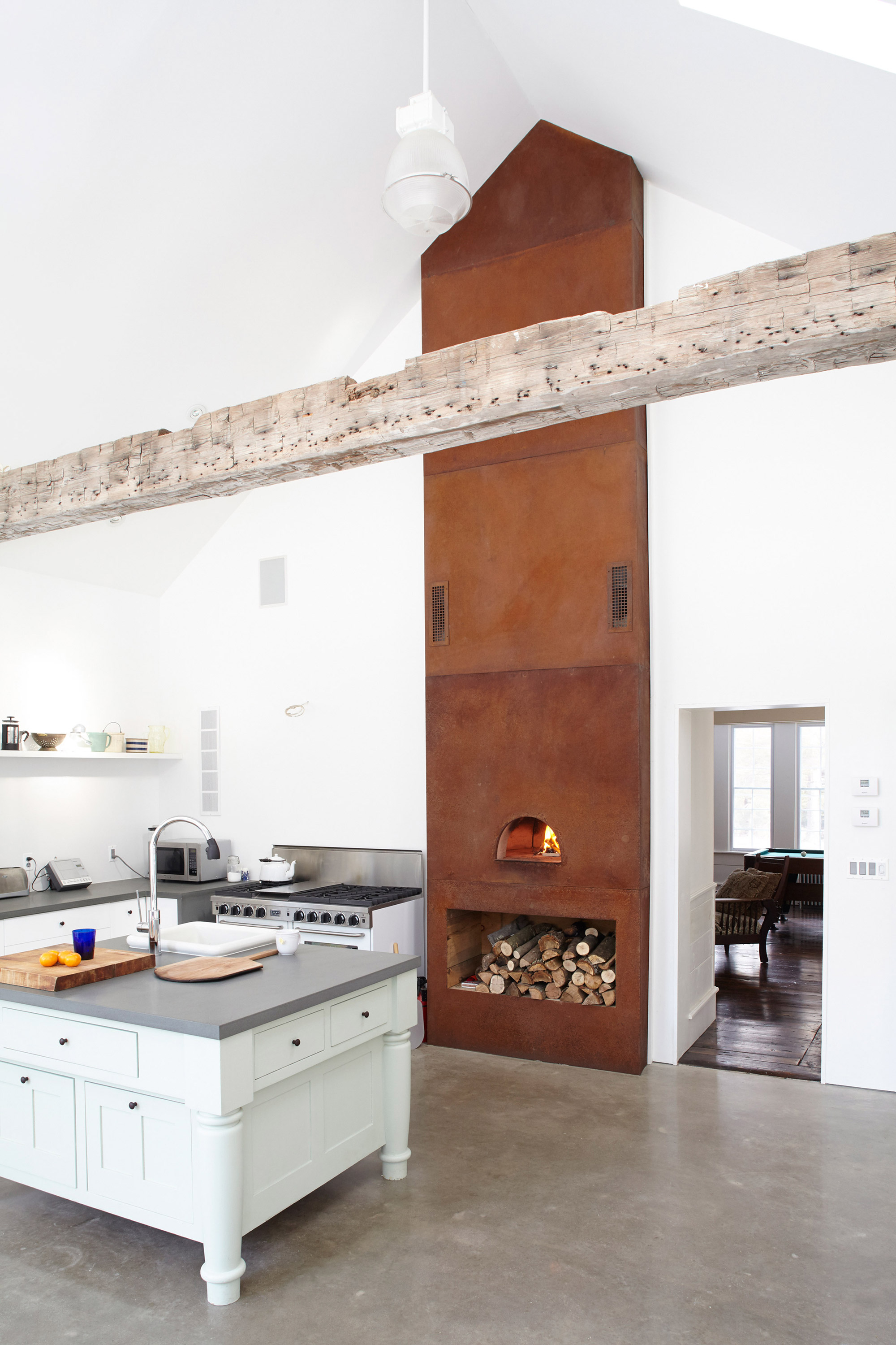 Architecture is a game of juxtapositions. Even new constructions can’t avoid the context of existing buildings and landscapes, and as an architect it’s important to not only accept this reality, but also embrace it. Many articles on this blog have featured projects that renovate old structures into snazzy new dwellings, often reprogramming industrial spaces into residential ones. For architectural designer Tom Givone though, it isn’t simply a matter of keeping an old brick wall here or there. He described his renovation of an 1820 farmhouse in the Catskills as a “study in contrasts,” and it’s clear that this study plays out at almost every scale of the project.