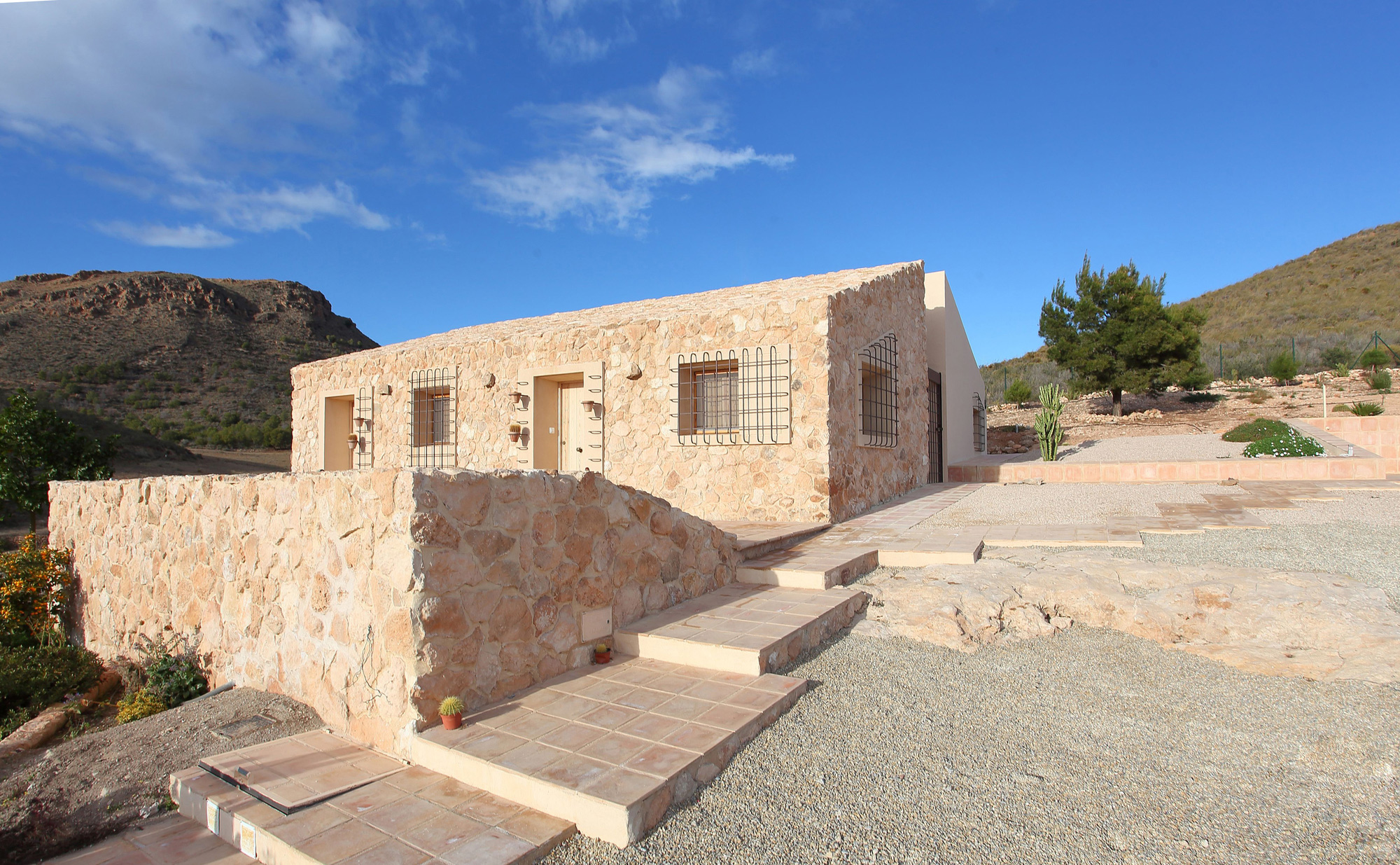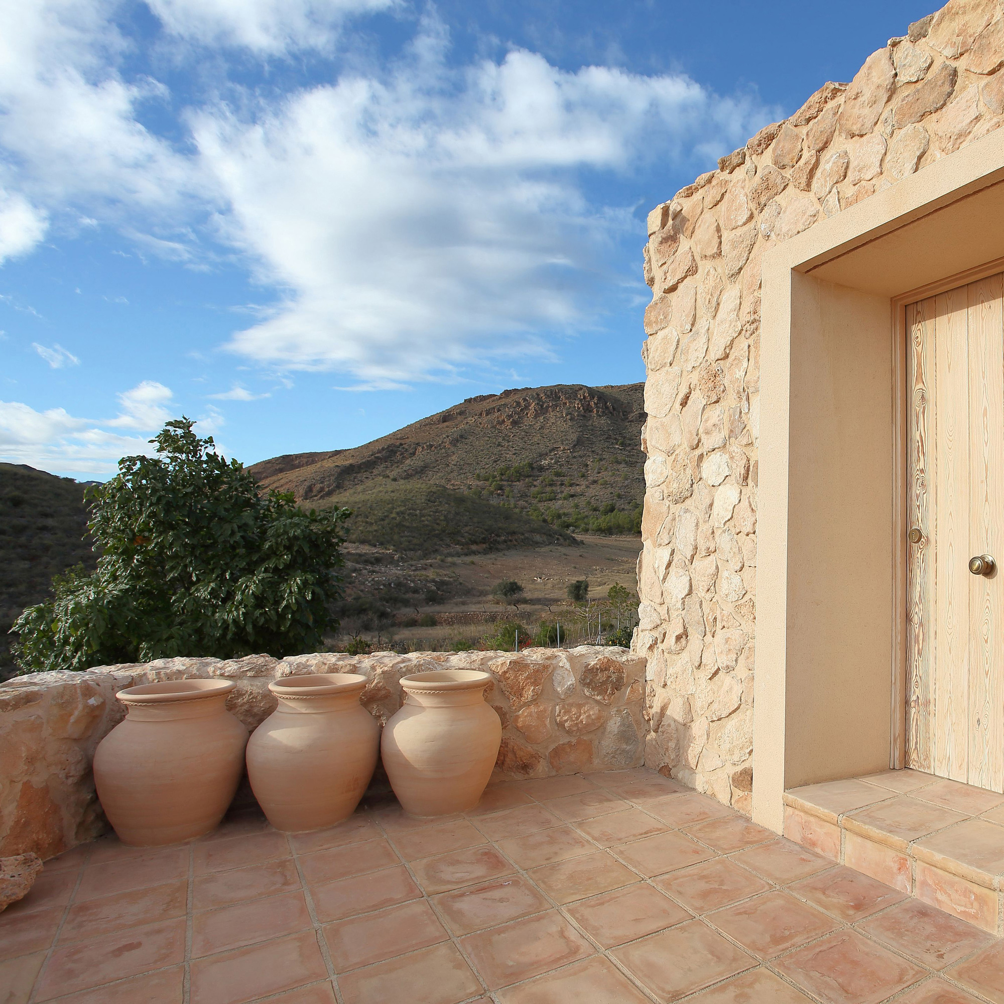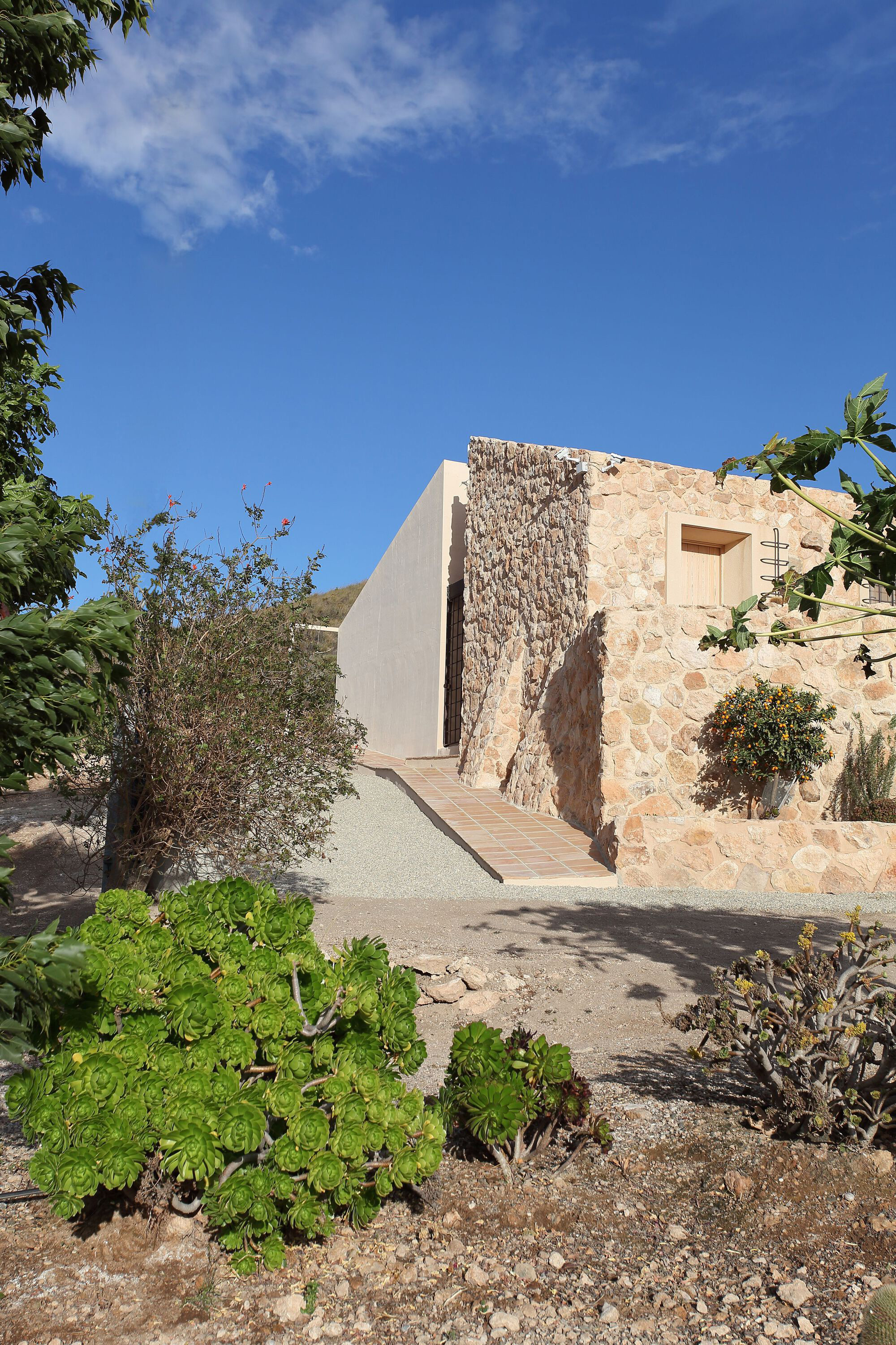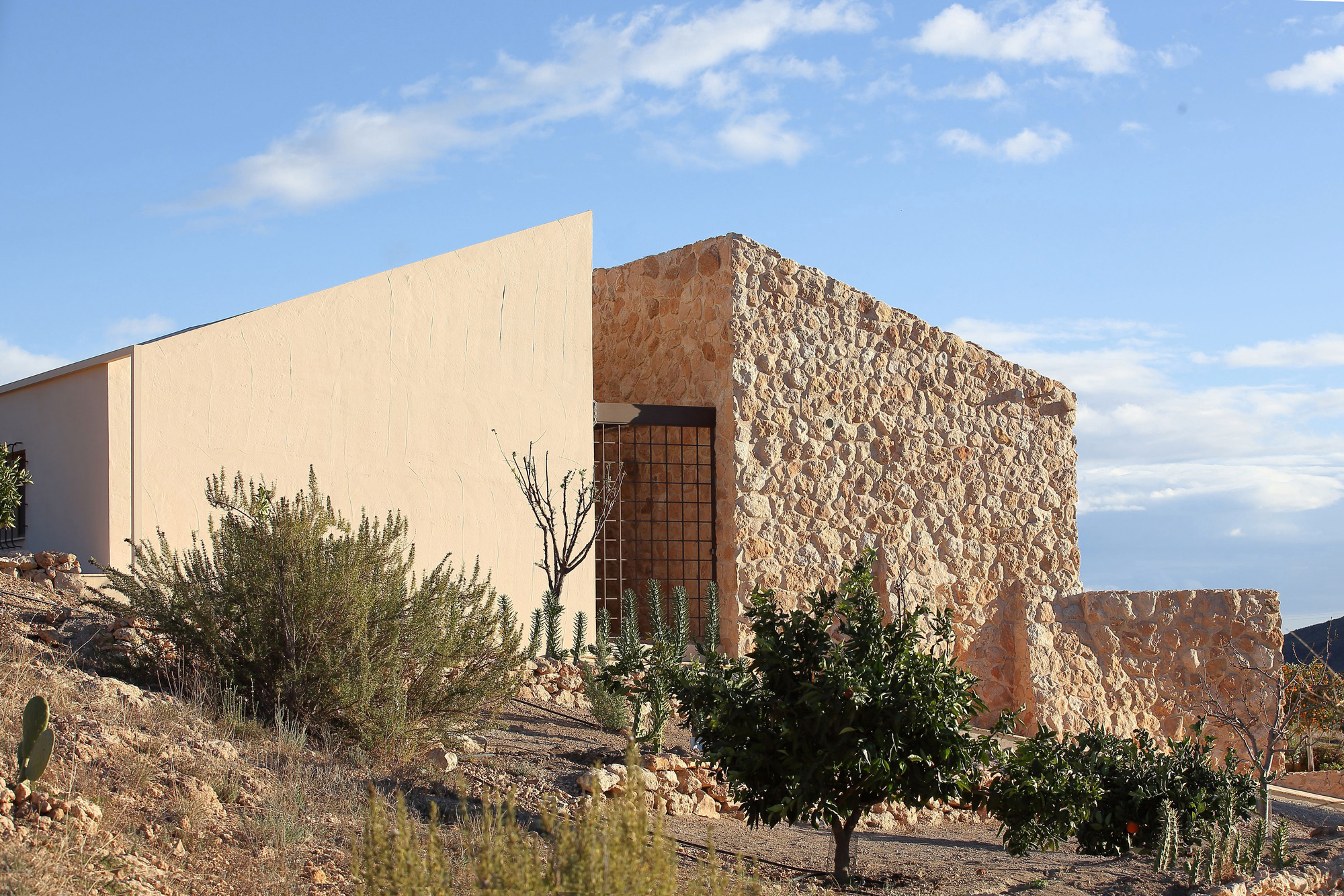 Located among the hills of Sierra de las Moreras, in Mazarrón, the province of Murcia, Spain, Pastrana I House aims to bring the Mediterranean Levantine dwelling back to life. Architect Pepa Díaz completed the restoration of an existing house and added an extension that features a matching mono pitch roof. To blend the volumes in the rural setting, the architect used natural materials and simple, understated elements. The existing volume now features stone walls completed using stone found during the excavation stage for the new build. Likewise, the extension boasts a natural exterior: locally sourced clay.