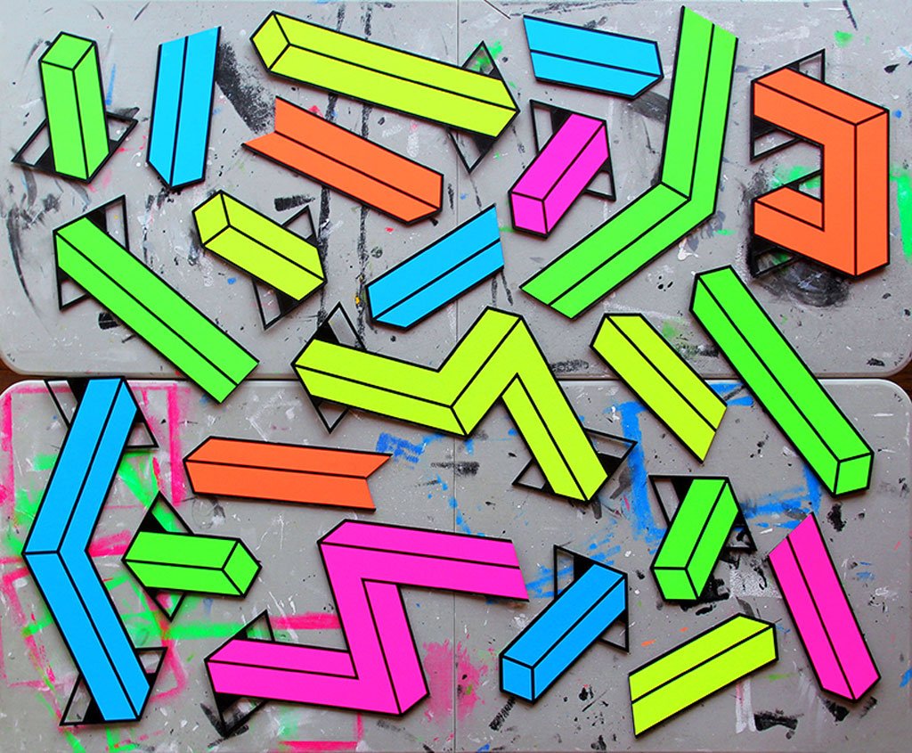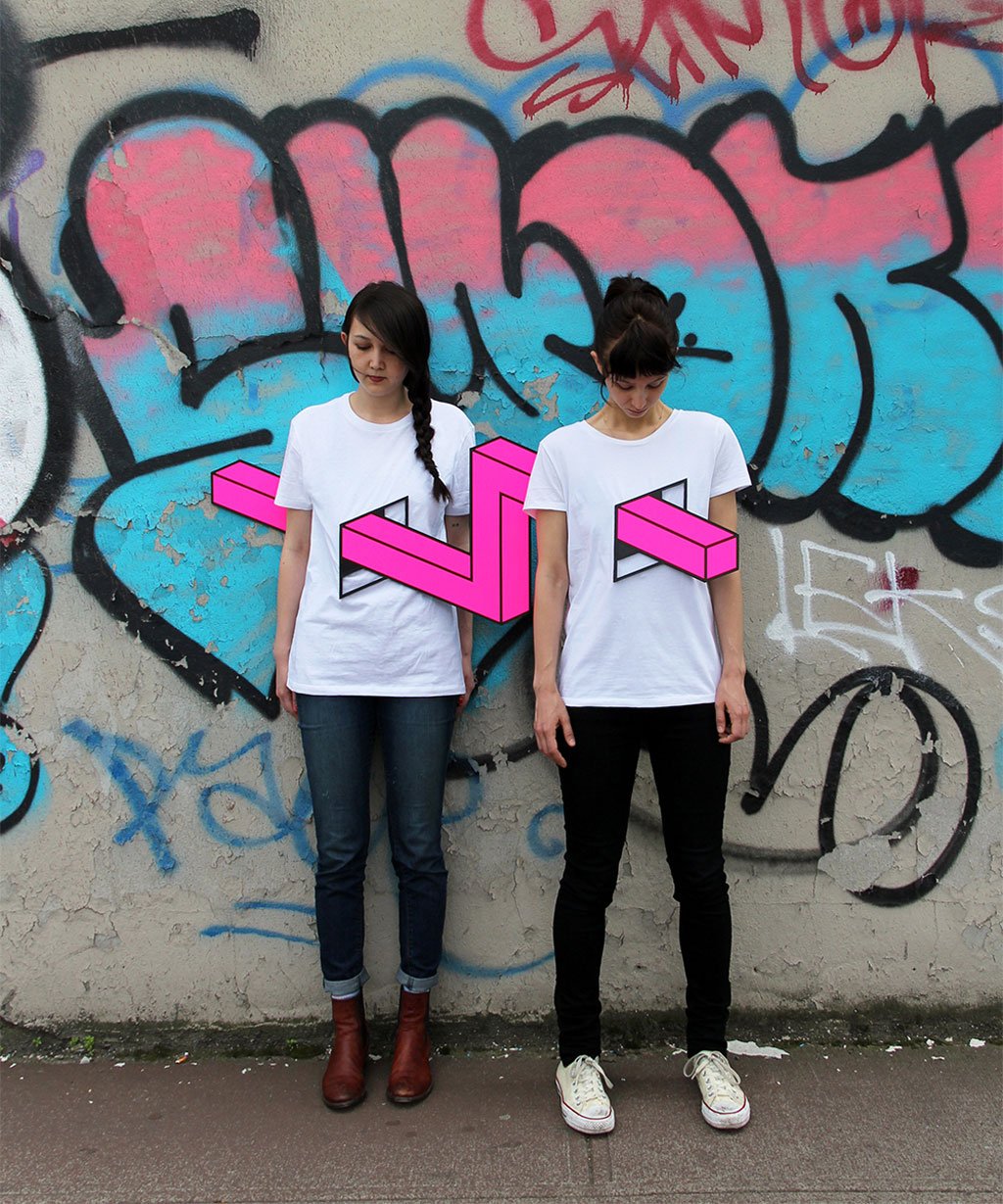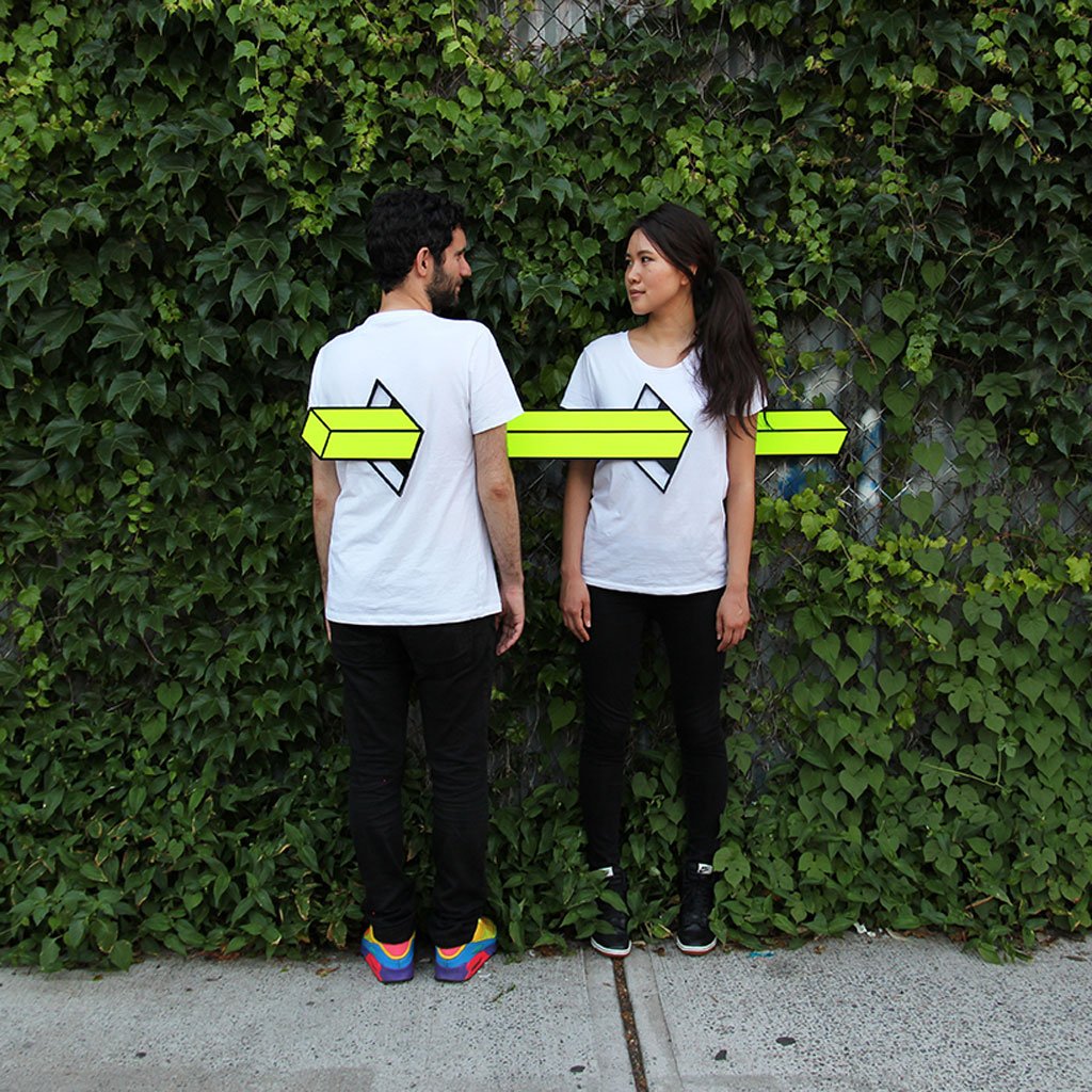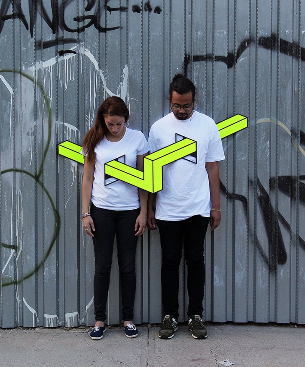 Landline is an imaginative photo series by the Brooklyn-based artist Aakash Nihalani. The subjects are hipsters in plain white tees. Seemingly punctured by geometric forms, the people in the images are visually connected to one another in an oddball-romantic way. Though the shapes may at first look like Photoshop editing, they are actually neon tape alliques. Reminiscent of comic books and pop art, the surreal portraits make up a playful collection in which photography and street art meet. Watch the project evolve on the blog EYE SCREAM SUNDAY.