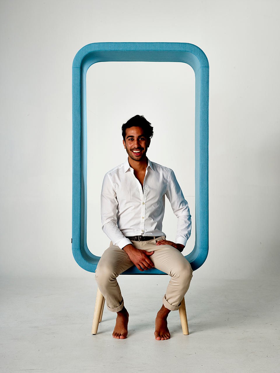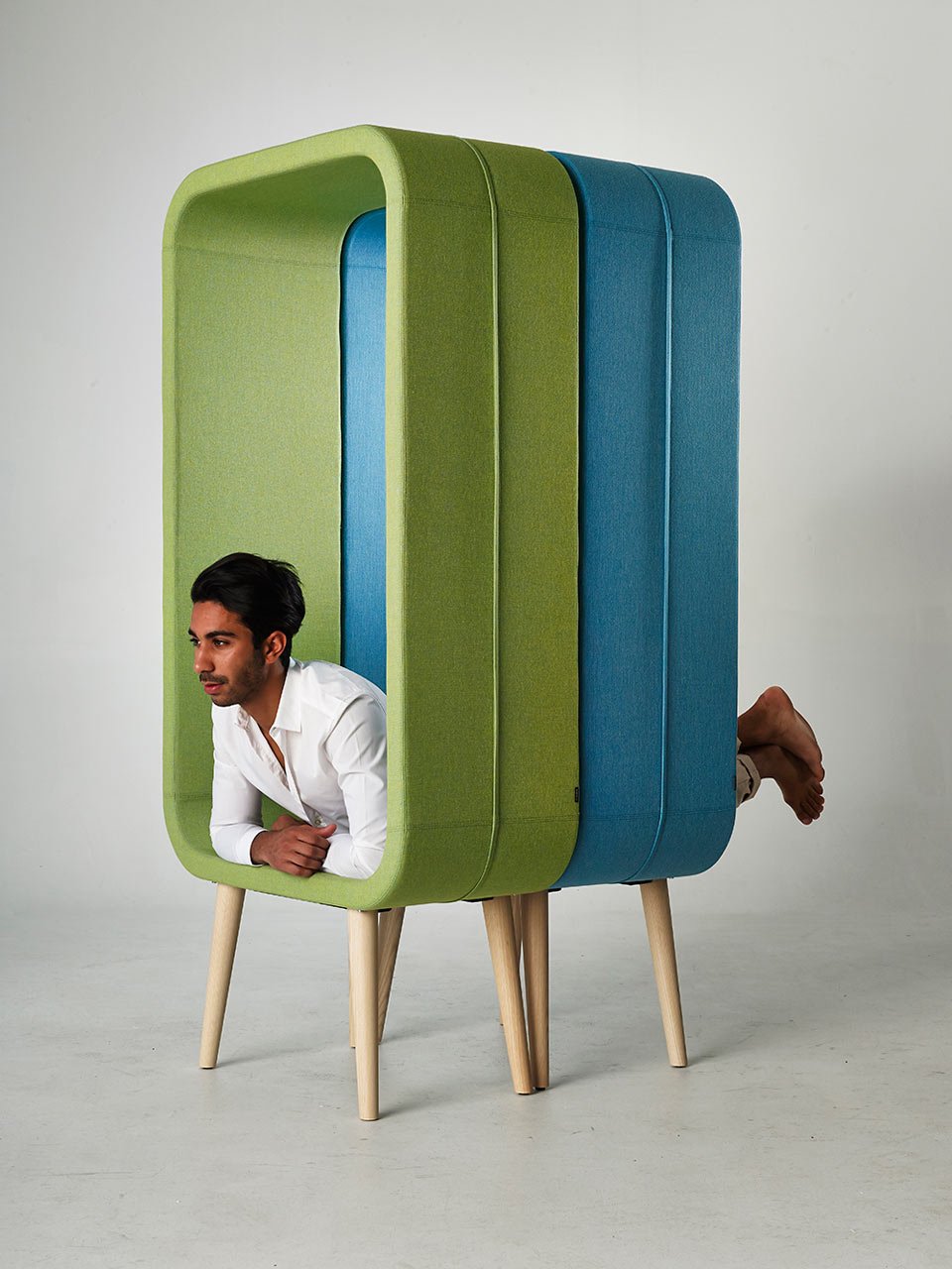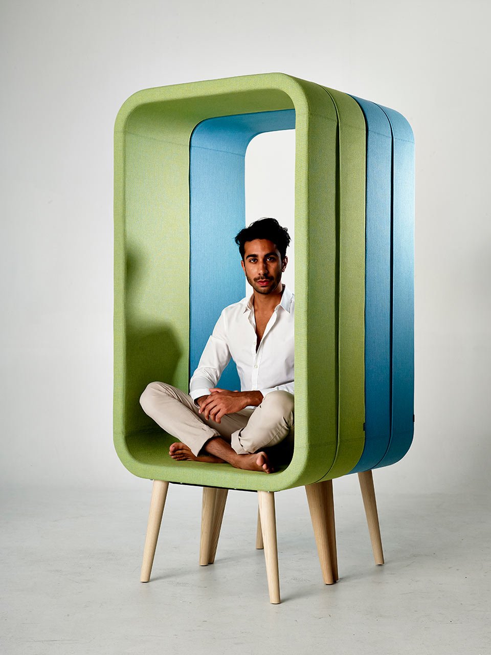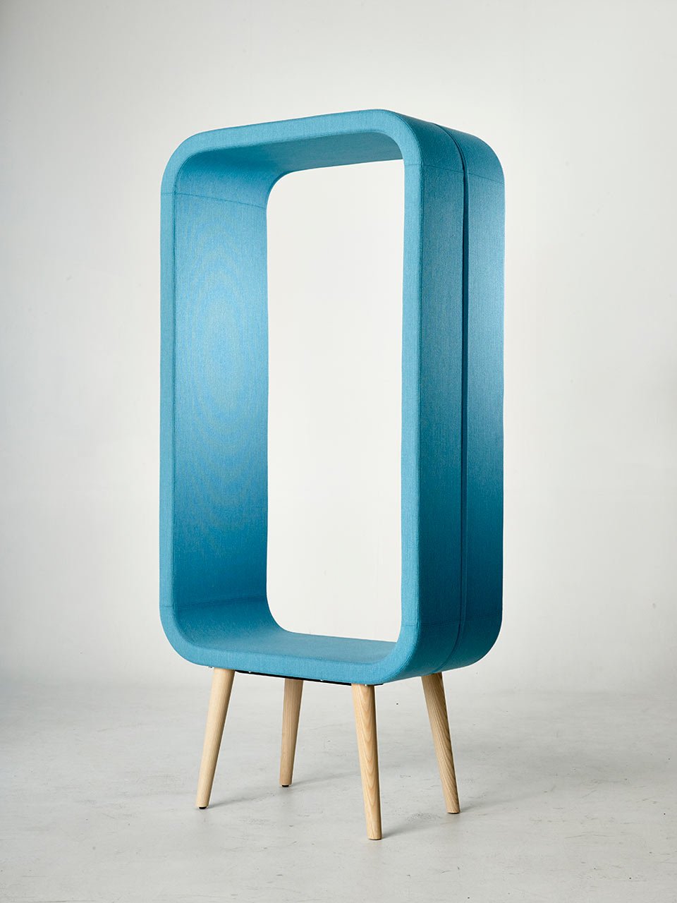 Designed by Ola Giertz for the Swedish company Materia , Frame is a chair with an open rectangular structure instead of a traditional back and sides. The unorthodox, picture-frame-like shape allows the user to sit however is comfortable and gives the overall design a heightened sense of wonder. The chair stands on wooden legs, a subtle base for the monolith that is its Kvadrat-upholstered seat. Available in blue, green, and gray, the fabric enclave offers a space for relaxation and softens the acoustics of any room.