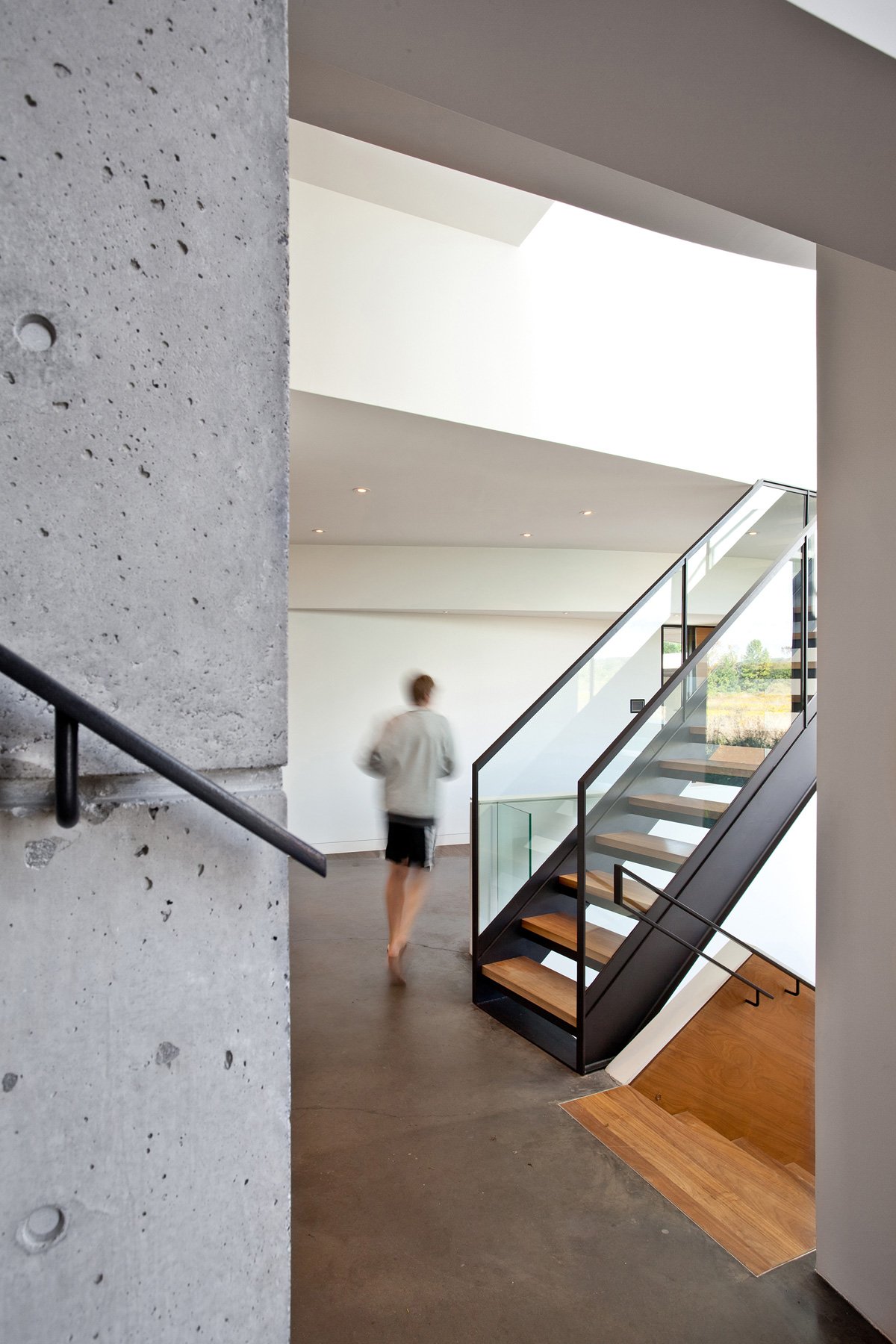 Located on a hundred-acre farm in Port Hope, Ontario, this Canadian home was designed by Teeple Architects. The contemporary design makes use of a variety of materials including charcoal zinc, wood, glass, and concrete. A complement to the ground source heating, many of these components provide natural insulation for the spacious rooms. Additionally, the floor-to-ceiling windows, courtyards, and clerestories bring natural lighting into the space, making it as energy-efficient as possible while connecting the residence to the outdoors.
