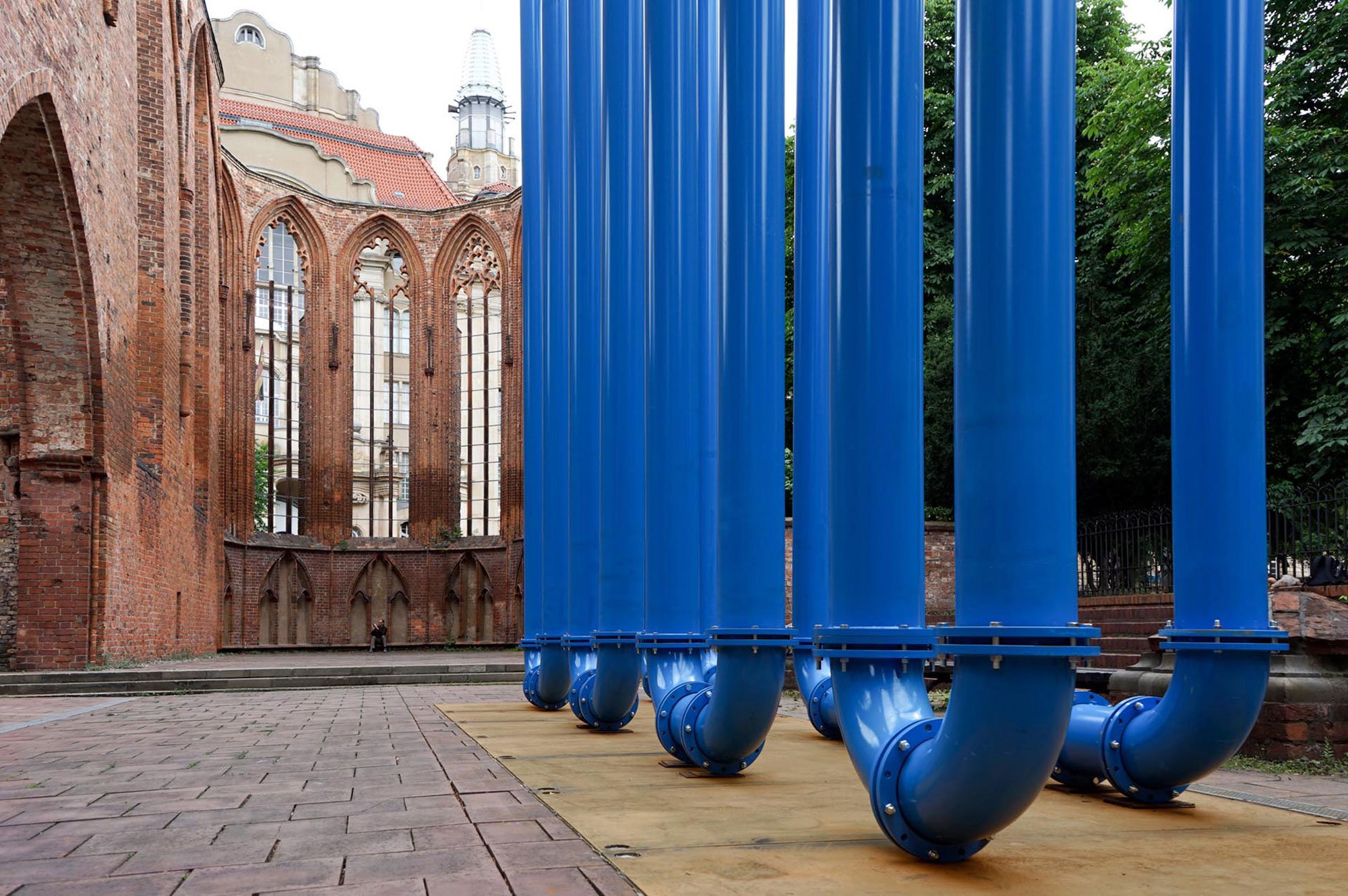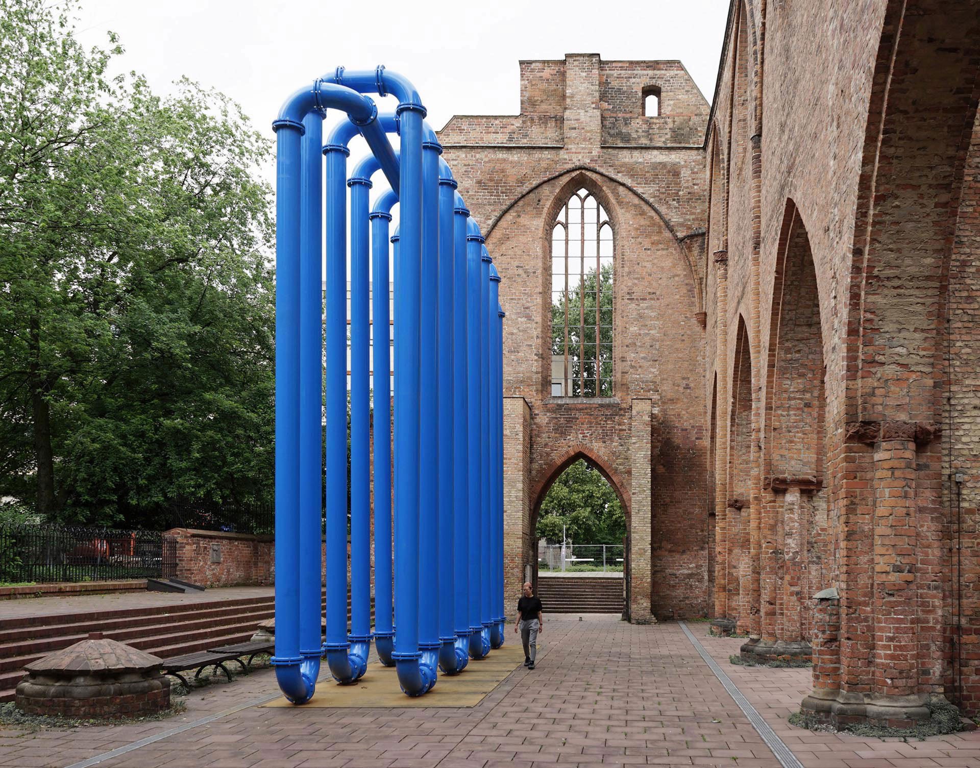 Part of the [statement & dialogue] exhibition, their latest sculpture Radiator aims to highlight the failure of even attempting to reconstruct the past. Measuring 10 meters in height, the monumental installation contrasts the ruins. It sits alongside the missing southern facade, completing the empty space. The sculpture features interwoven hollow steel tubes which boast a bright blue paint finish, becoming almost profane in the sacred setting. Thought-provoking as well as visually striking, the installation certainly achieves its goal of opening a dialogue. The [statement & dialogue] exhibition opened on June 8 and runs until October 31 2017. Images courtesy of Borgman | Lenk.