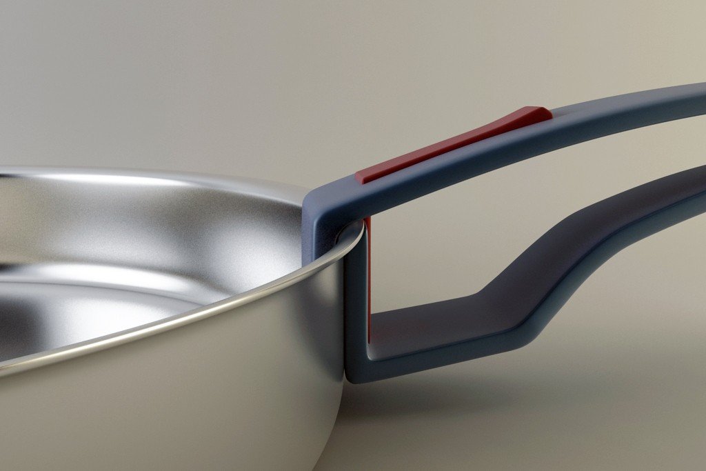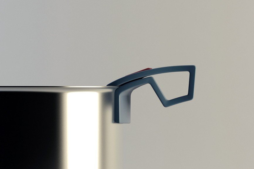 When performing all sorts of complex operations in the kitchen it is important to have a set of safe instruments to work with in this fairly dangerous environment, surrounded by hot ovens and sizzling frying pans. The tools used need to be simple but with plenty of usability. This set of newly designed instruments by Alberto Vasquez has removable handles that are special made with refractory silicone material that can handle 300-400 Celsius which makes it okay to be place inside the oven. The red clip fixes the handle when it is closed, made in the same material but different color. The clip is styled so it’s easy for cleaning with water and detergent spray. There is a metal part inside the silicone to brace the handle, this metal part has concave incisions in its form therefore it won’t move in the silicone when you shake the pot.