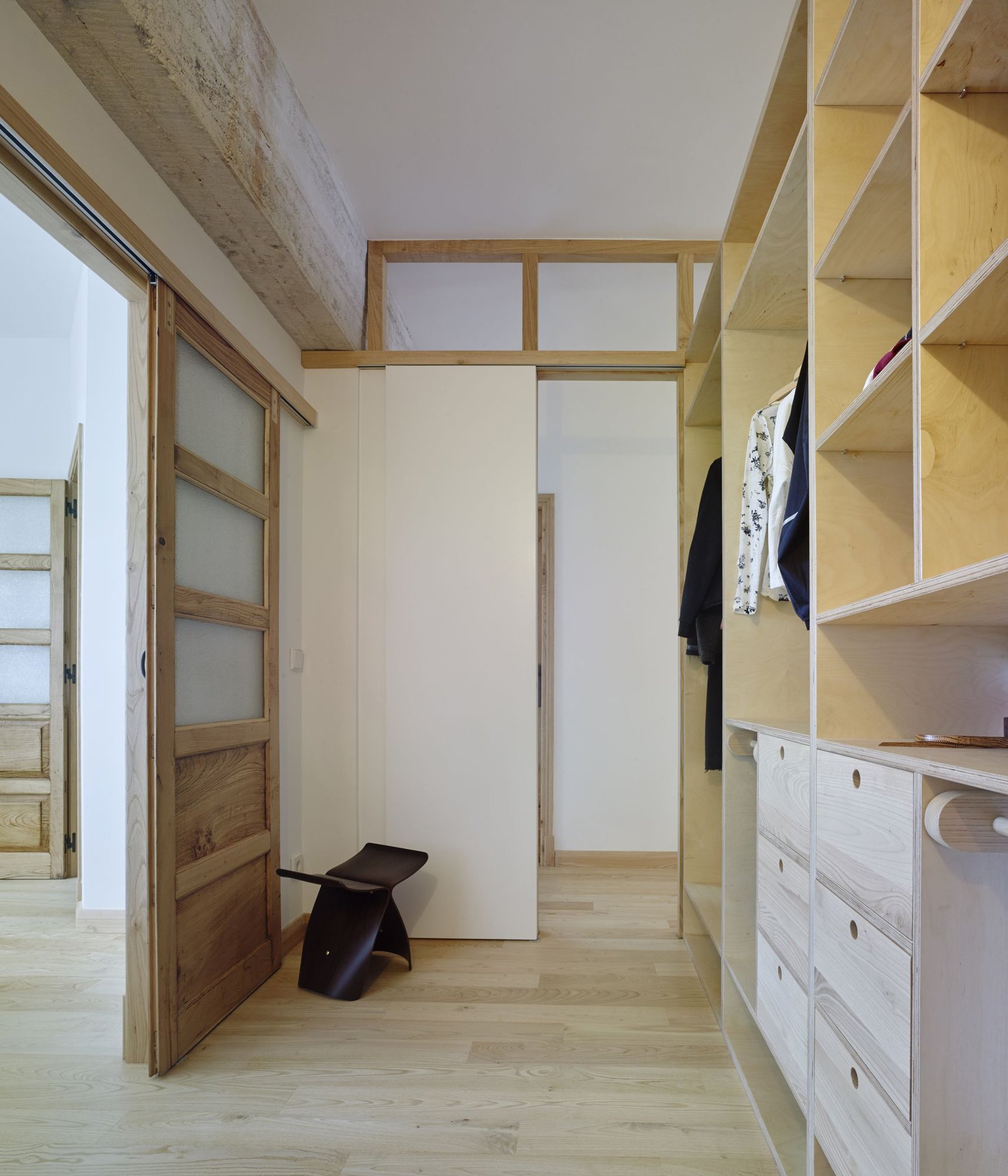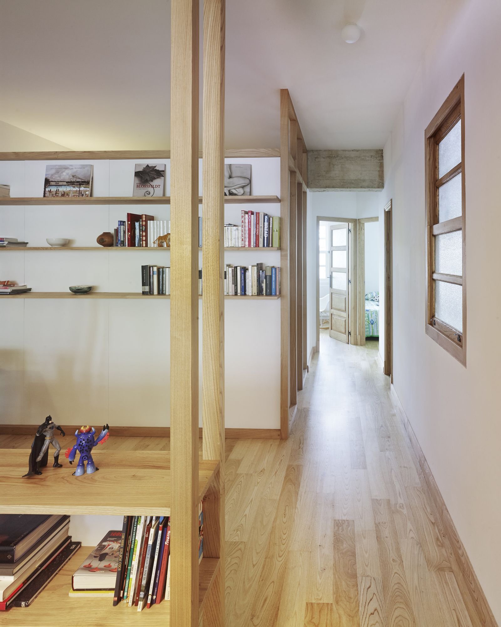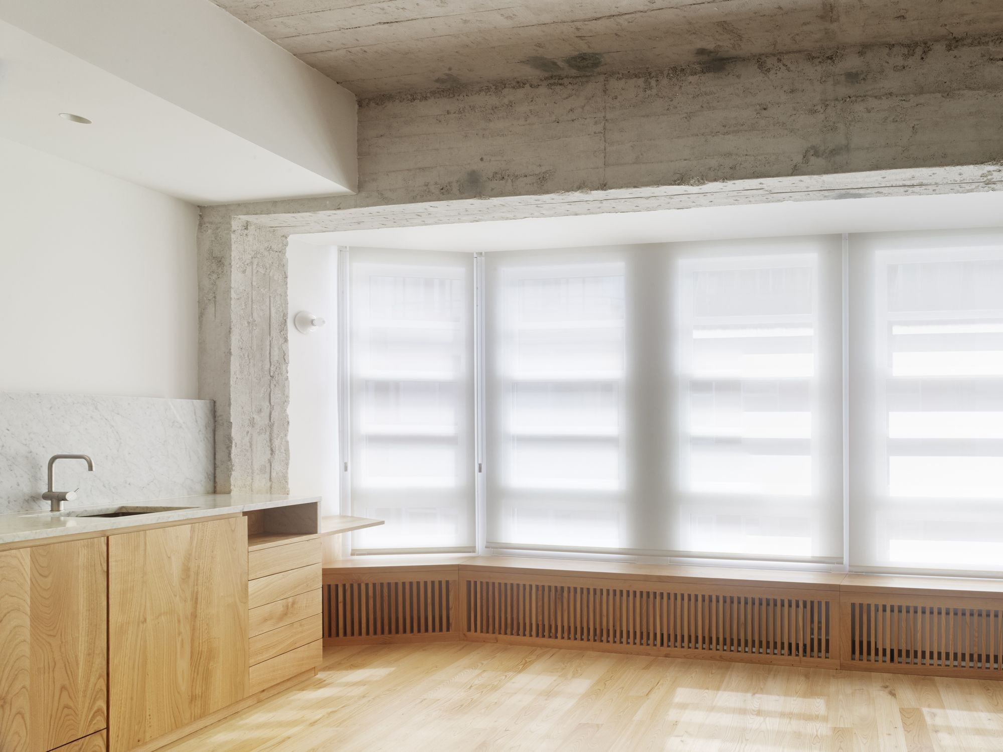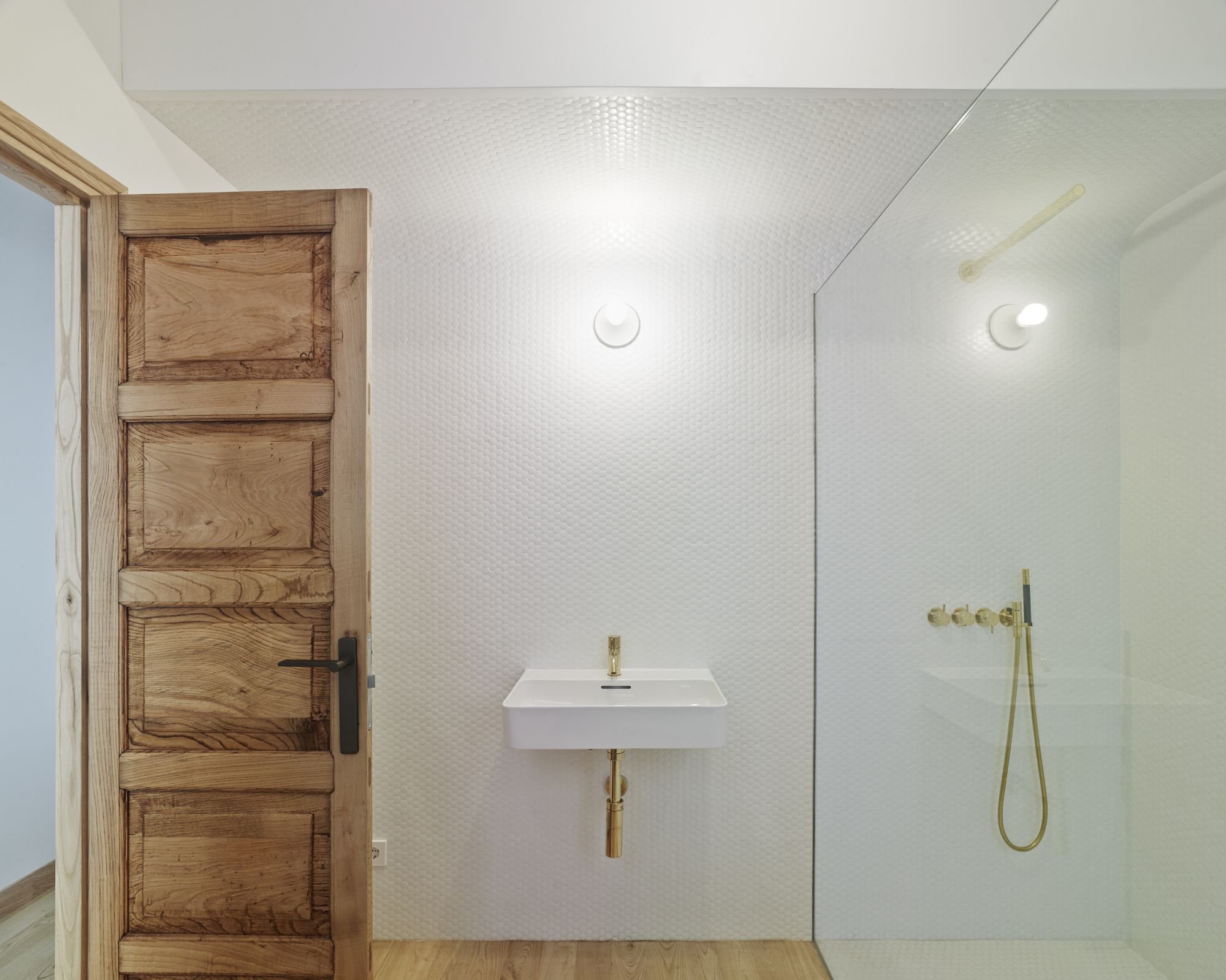 The studio recovered and restored various elements, from the concrete roof to the original doors. Carefully chosen materials complement the wooden and concrete surfaces in a refined way. The new additions include solid chestnut and lime plasters as well as hexagonal tiles in the bathroom and a Carrara marble countertop in the kitchen. Rough textures complement refined surfaces, with minimalist furniture used sparingly to enhance the airy feel of the rooms. Throughout the interior, the combination of rustic wood and white walls creates a bright, welcoming atmosphere. A new, contemporary chapter in the history of this ‘60s apartment. Photographs© Héctor Santos-Díez.