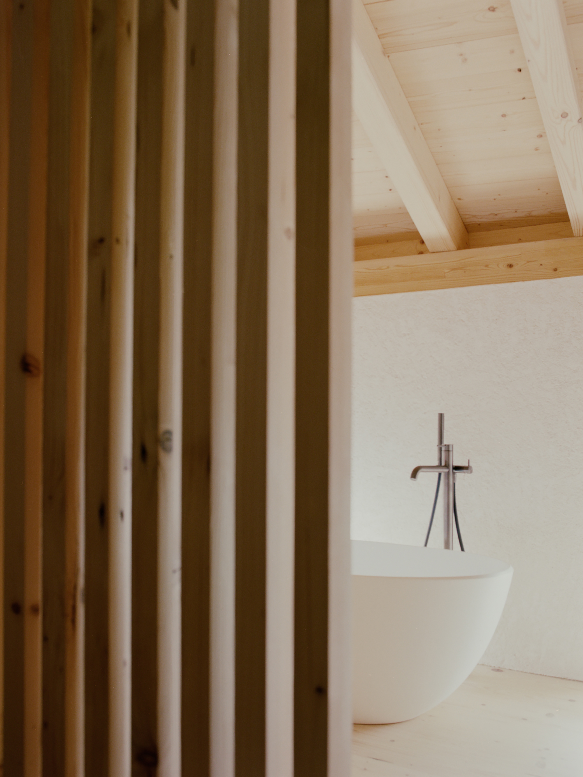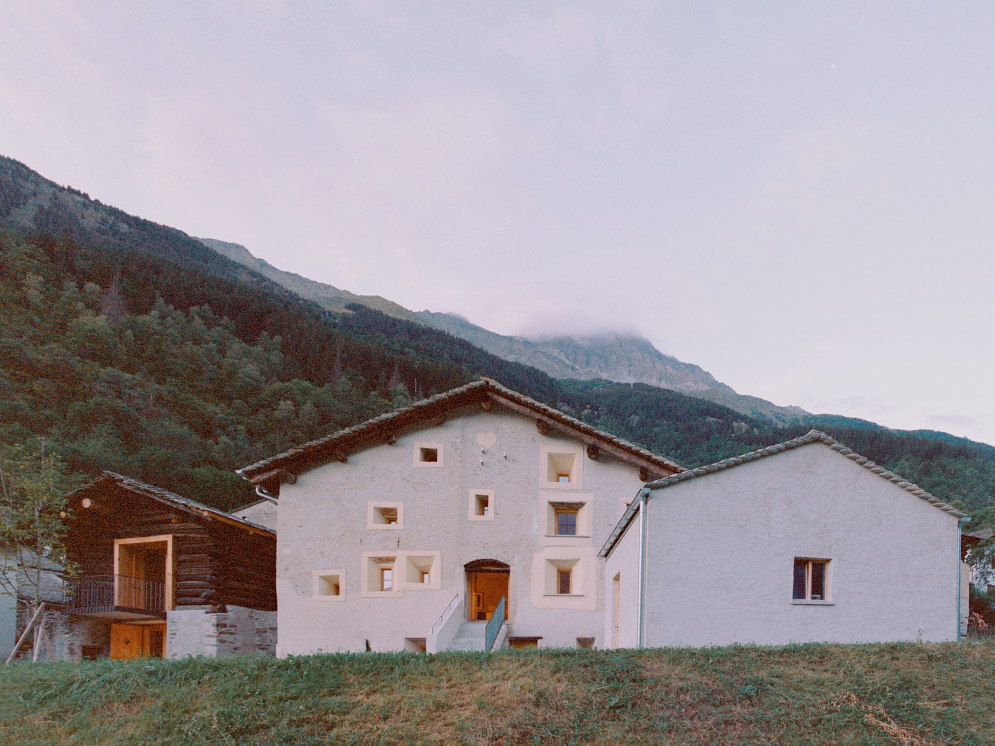 Featuring two connected volumes, the house has a pronounced rustic character, which the studio preserved. The team meticulously repaired the century-old facades and restored dilapidated areas. Inside, new concrete elements provide excellent structural support, with their mineral quality beautifully complementing the wood finishes. Following vernacular building traditions, the interiors boast a harmonious blend of old and new features which weave a poetic story through time.