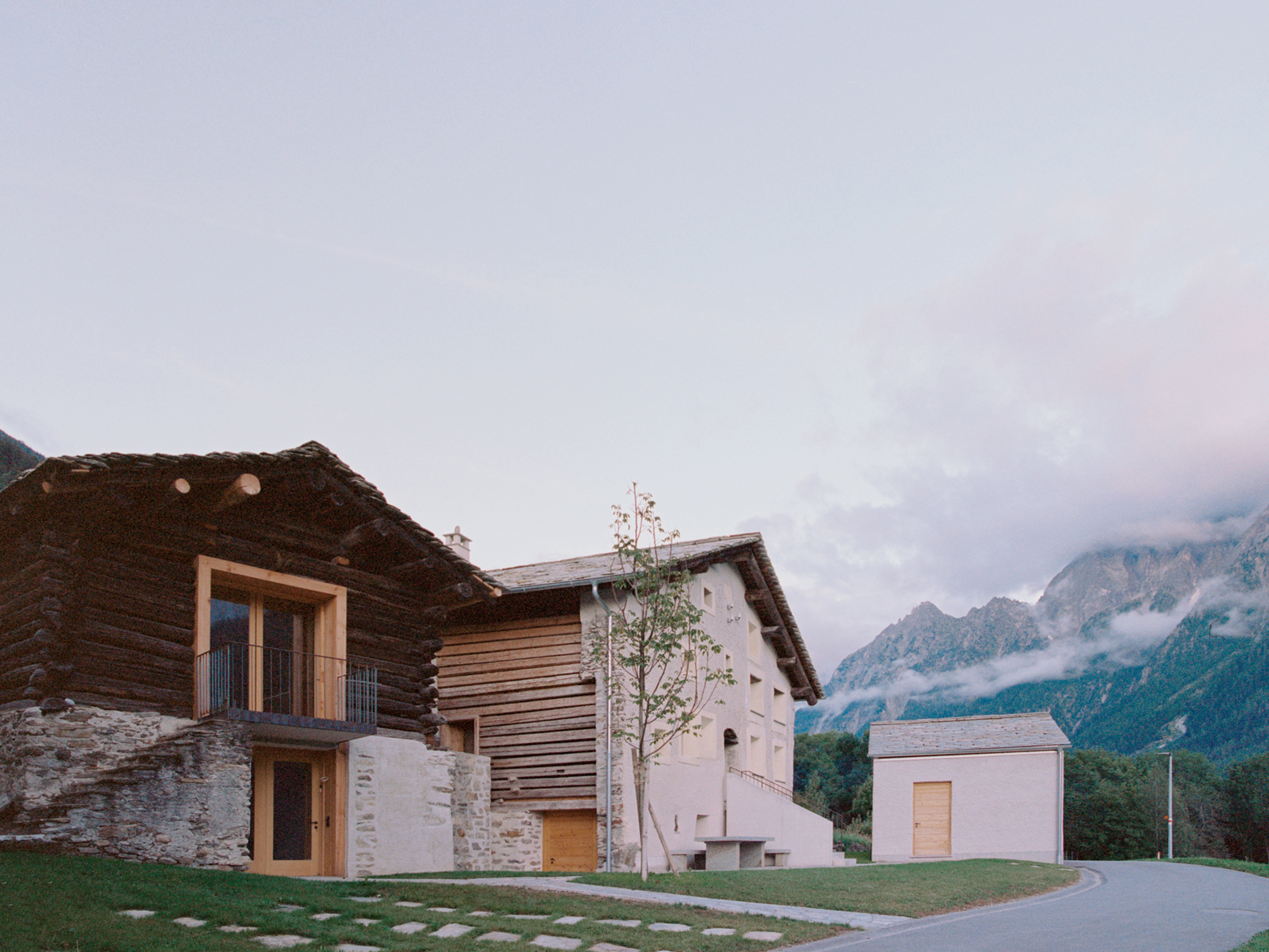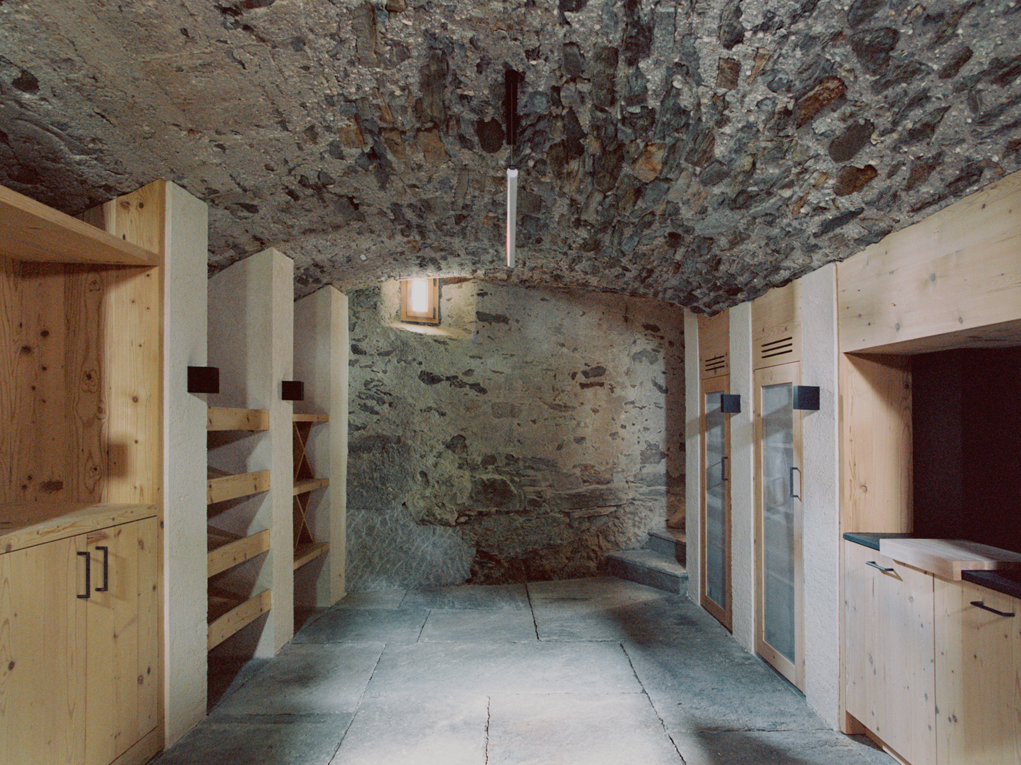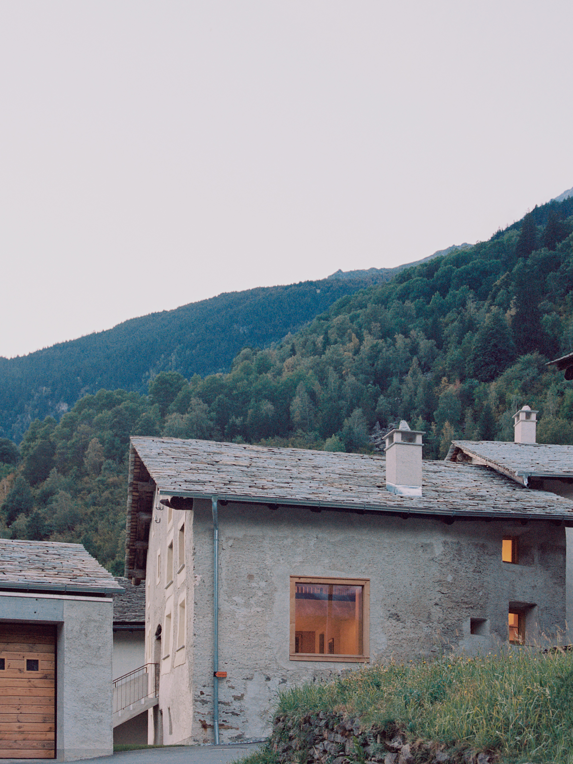 Nestled on the edge of the small hamlet of Montaccio, around 1,040 meters or 3,400 feet above sea level in the Bergell region of Switzerland, this old stone house dates back to 1719. Architecture firm Renato Maurizio Architekten carefully renovated the building to preserve its historic Alpine character and charm. The team also modernized the interiors with a thoughtful blend of original elements and contemporary additions. Set on a south-facing slope close to the access road that leads from the village of Stampa to the center of the hamlet, the house offers access to mountains views and Italy in the distance.