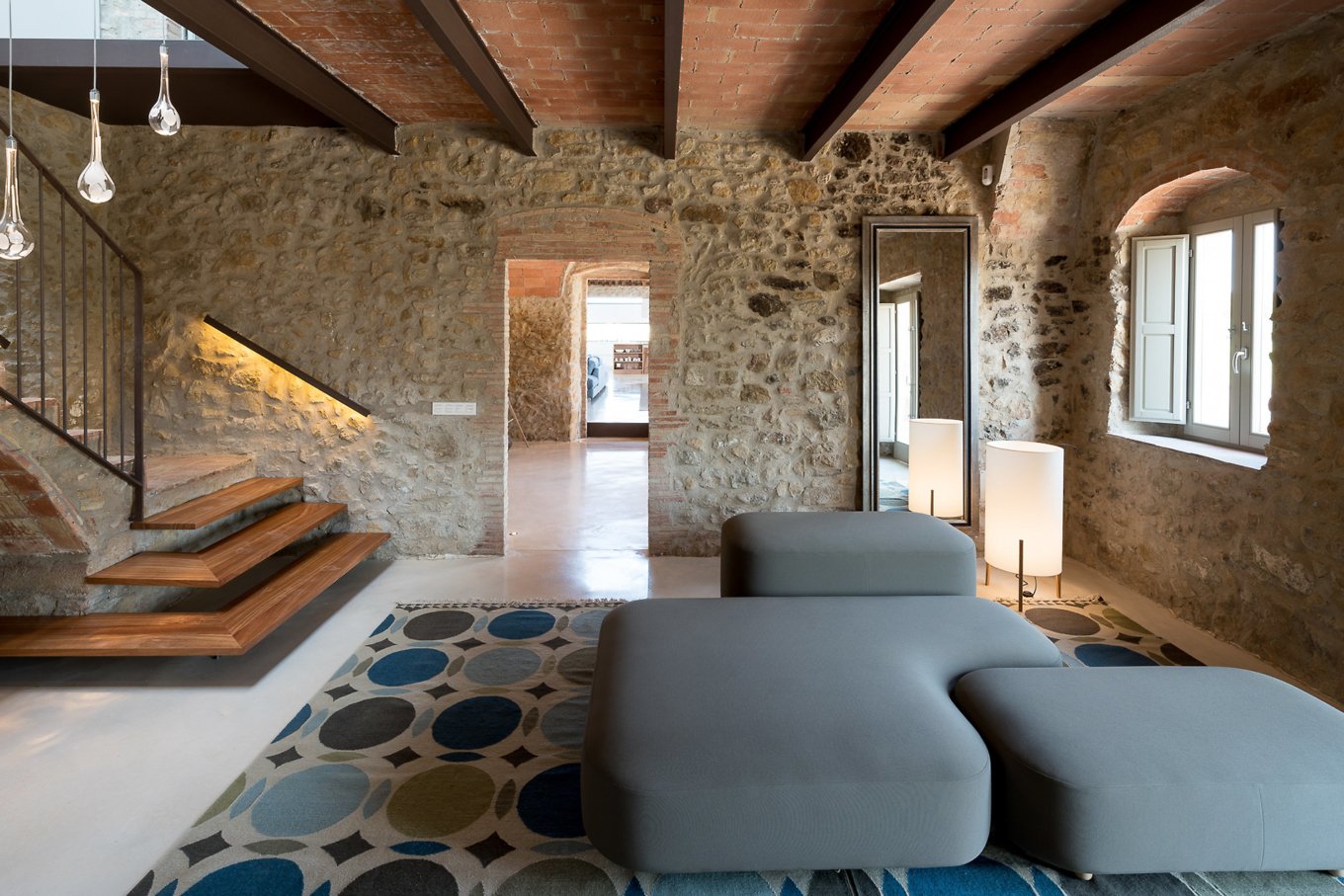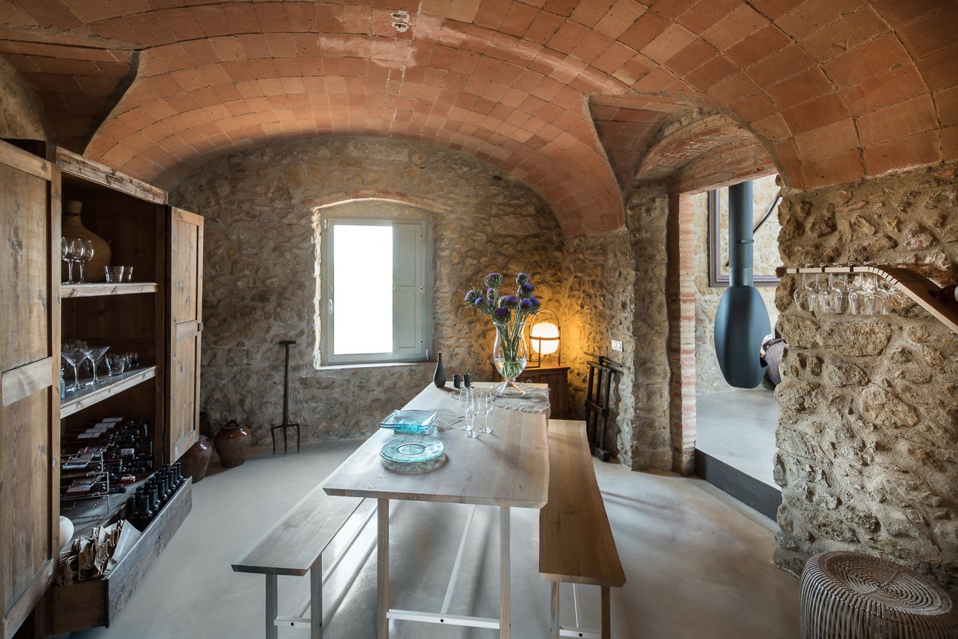 A great example of an ideal restoration, this farmhouse in Girona, Spain, was completed by Barcelona-based architect Gloria Duran Torrellas in 2017. Located in the picturesque medieval village of Pals, the house dates back to the 1850s. The practice maintained the numerous original features from that era intact, celebrating history and tradition while creating a stunning contemporary interior. The spacious two-story farmhouse offers 800 square meters of living space and access to gorgeous views over more than 26,000 square meters of land.