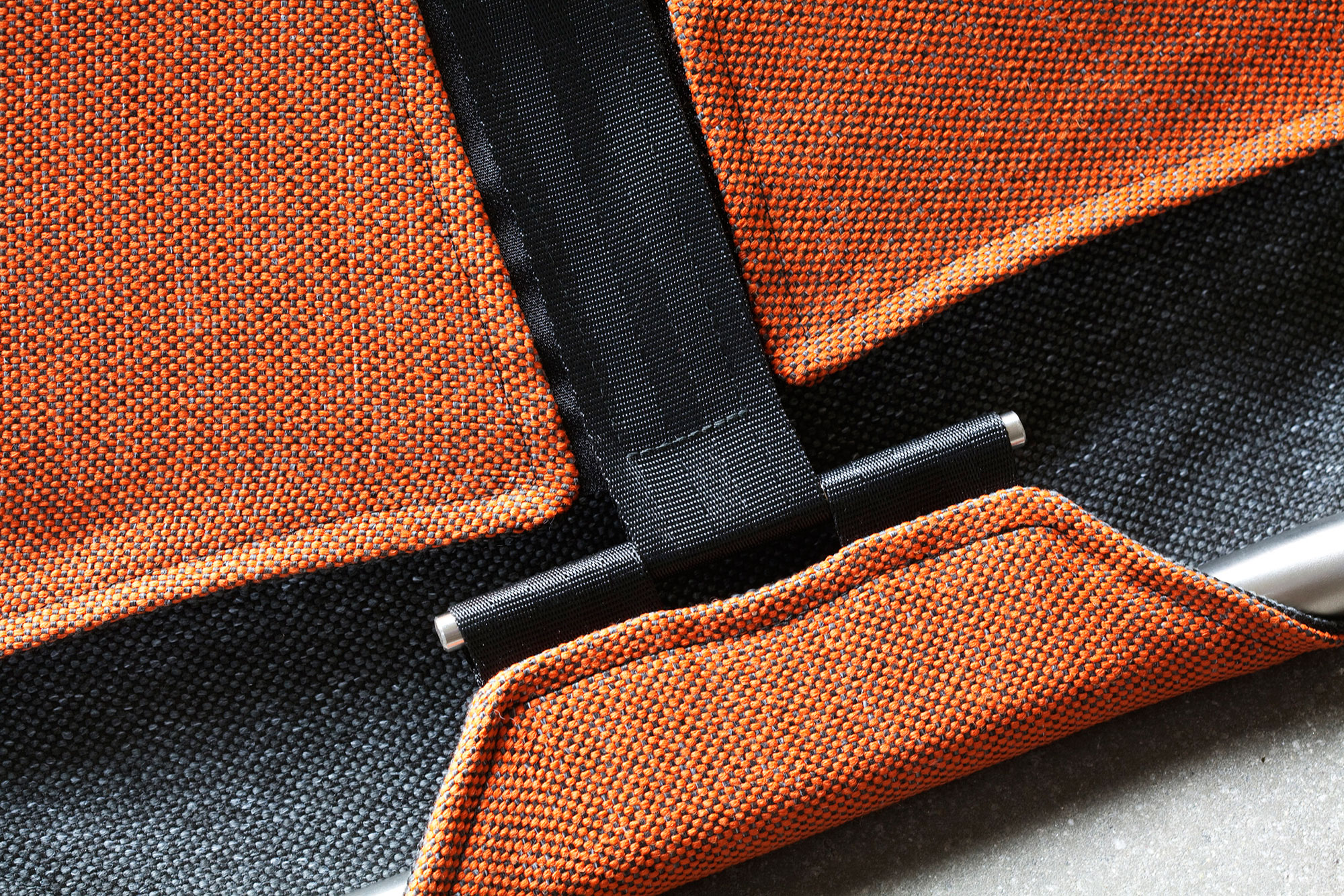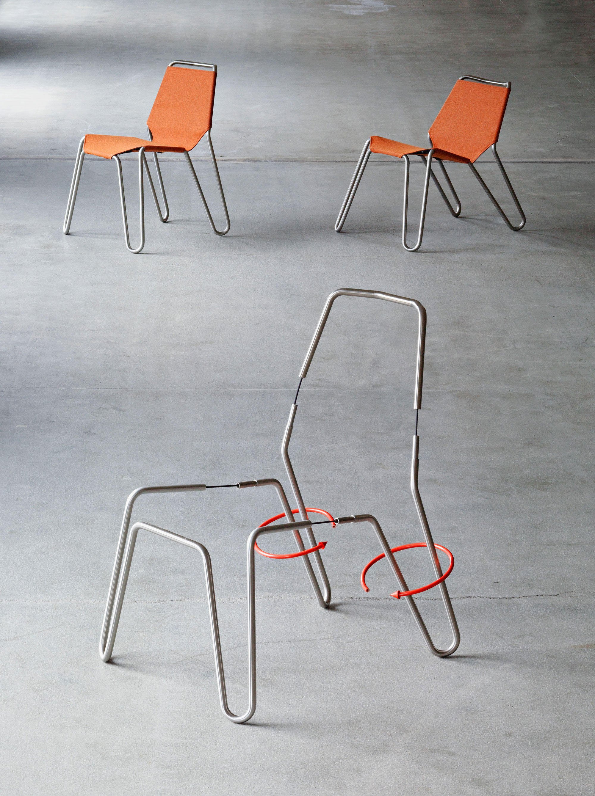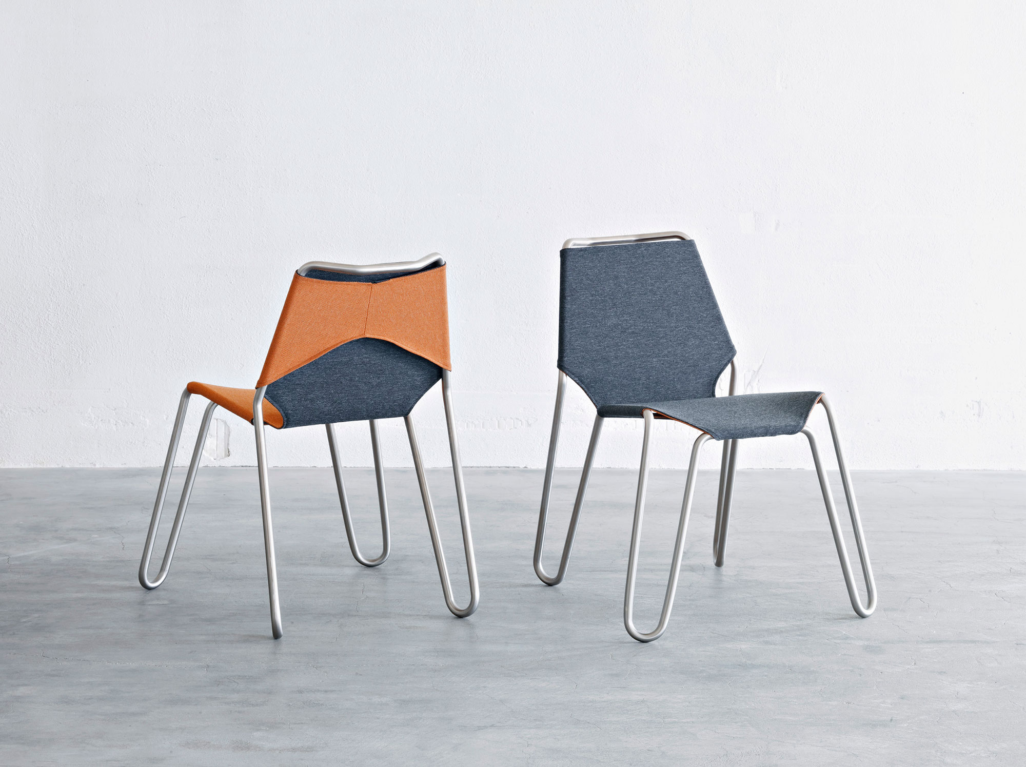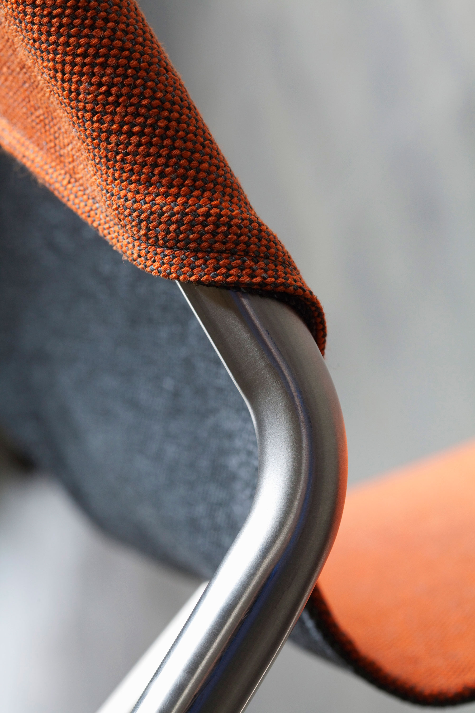 The reversible material offers a handy solution to switch the color of the chair when needed. One side boasts a more neutral gray hue while the other can feature an orange, blue, or green color. This way, it’s easy to transform the look and feel of a room or to complement different color palettes. Thanks to the practical assembly method, the chair is also easy to transport from one home to another or from storage to an office or a lounge room. The Reversible chair features a stainless steel tube frame and the Tony fabric made by Creation Baumann. The design has received a nomination for the Design Prize Switzerland 2011. Photography© Michael Sieber.