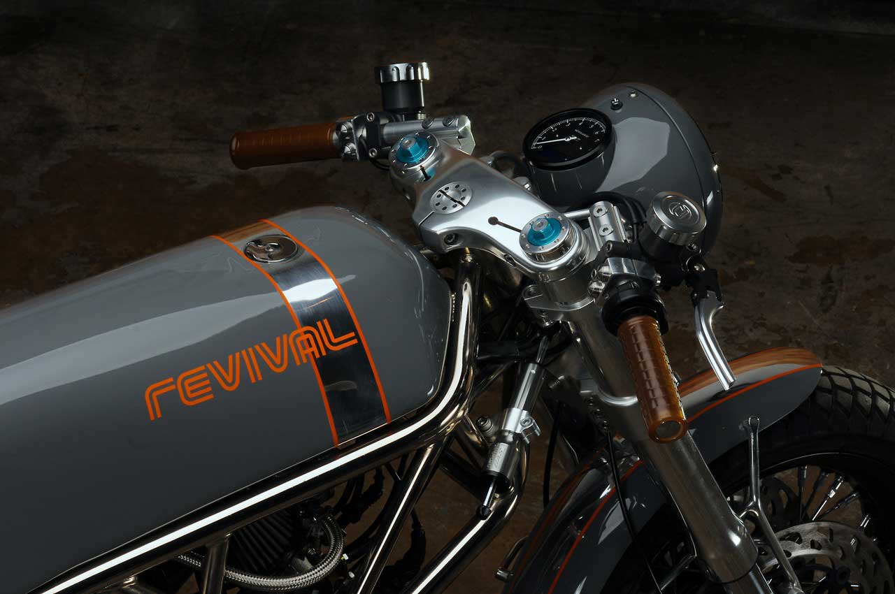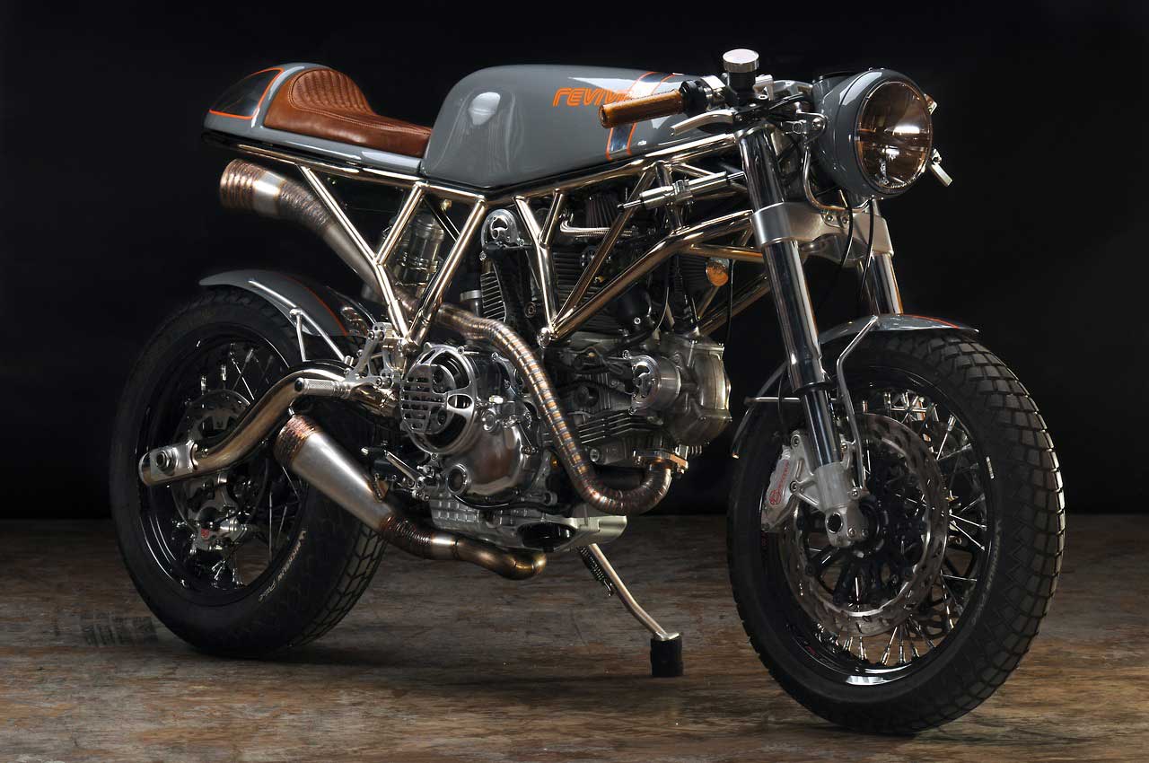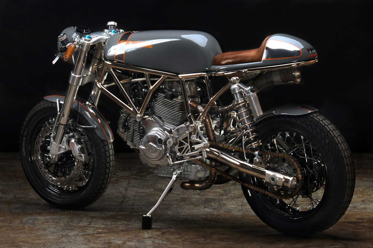 The Ducati SportClassic is a dream makeover by Revival Cycles. The client wanted the bike to work better for his height and also to work better. “It came to us a bit battered and bruised,” remembers founder Alan Stulberg. Although taken in stride the end result widened the body, exposed the sexy tank, and finished it off with a rich coffee tone tint throughout. A flat charcoal cover and luxurious leather finishes on the saddle and handle bars classify this project top notch. With a few tweeks the rear subframe was modified 6” thinner, the seat was moved back over 5?, relocated the steering damper, new alloy fenders added, and the frame and swingarm warmly nickel-plated. The wheels are Alpina carbon fiber with new Michelin Pilot racing wet-weather tires; the Discacciati braking system is legit from JC/Pakbikes. Electronically stocked being rewired around a Motogadget M-unit and including a custom ECU. No better way to testify to the awesomeness of such a machine than a classic story that goes like this, “I like to say the bike sounds like it is about to kick someone’s ass in a bar fight,” says Alan. “The cops that pulled us over the other night for speeding said the same thing and let us off with a warning because they loved it so much.”