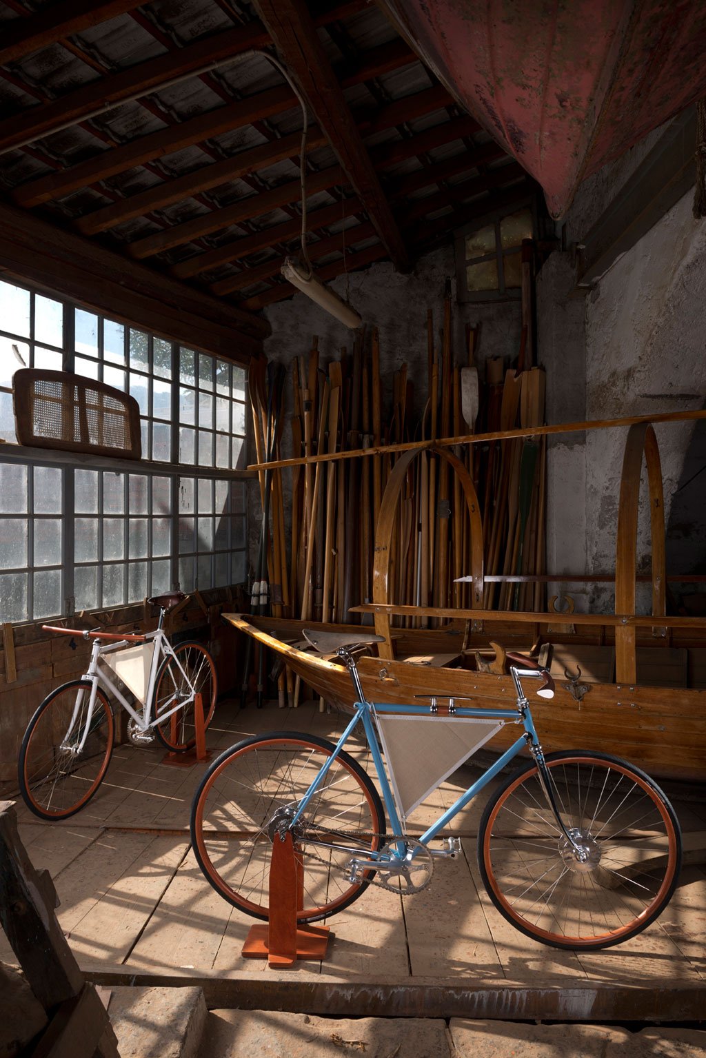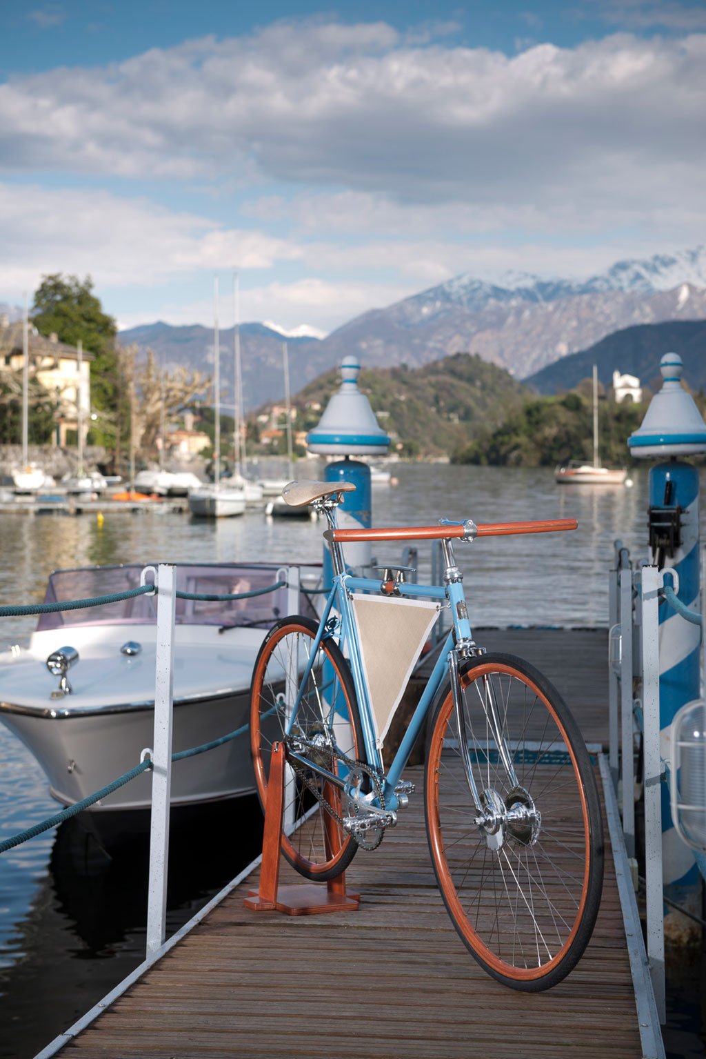 Revolton brings a touch of the sea into the design of their luxury bicycles. Their bikes pay homage to nautical traditions in form and material. Most striking is the sail suspended along three tubes. More subtle is the miniature ship’s wheel decorating the rear. Made to order in Como, Italy, the bikes are handcrafted from the highest grades of steel, aluminum, wood, leather, and canvas. Check out the Lasco in white and the Granlasco with a sky-blue finish.