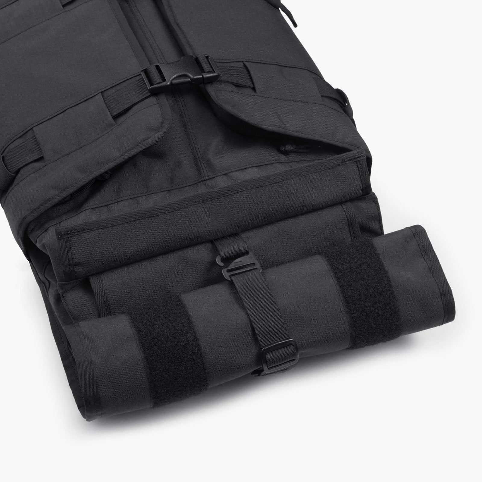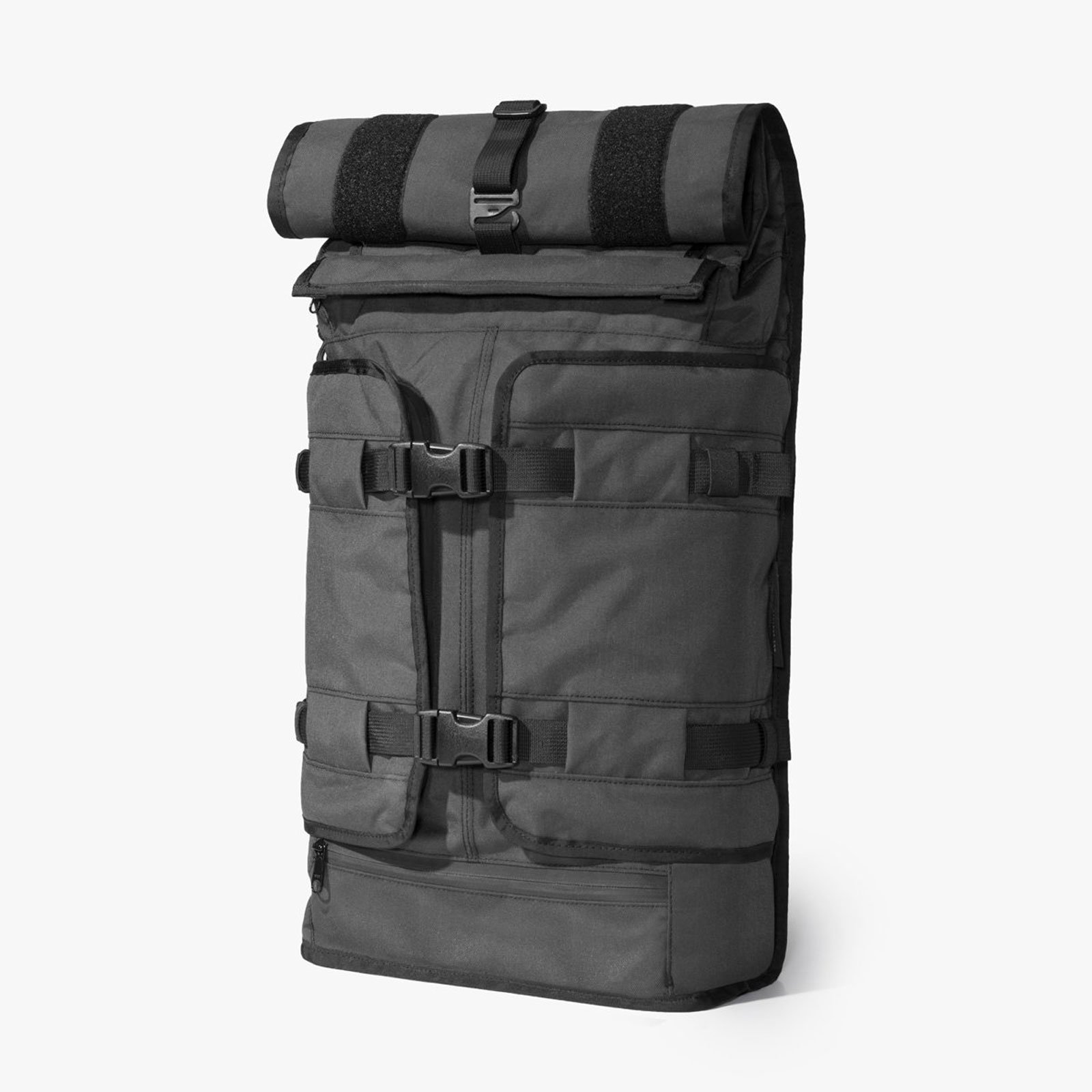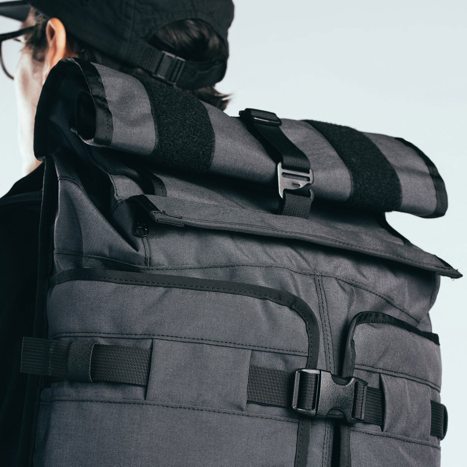 The main compartment expands or shrinks depending on the user’s needs, providing up to 22 liters of storage space for clothing or gym gear. A two-layer weatherproof material keeps the contents protected rain or shine, while the Arkiv rails allow the addition of weatherproof accessories, such as the Mission Workshop cell phone pouches.