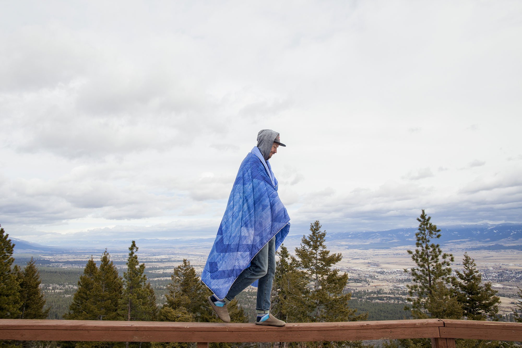 An almost poetic blend of contrasts, Rumpl’s new Iceland Geo Print Puffy Blanket features a gorgeous pattern that references the frozen ocean and landscapes of Iceland. For the latest version of the popular puffy blanket, the Portland-based brand took inspiration from the work of photographer and filmmaker Thomas Woodson, who traveled to Iceland on a “once-in-a-lifetime ski expedition” and captured the country’s rugged beauty. Featuring shades of blue, the Iceland Geo Print reminds of the vastness of the sky and of the open arctic sea. At the same time, it keeps cold at bay, providing warmth and comfort in low temperatures.