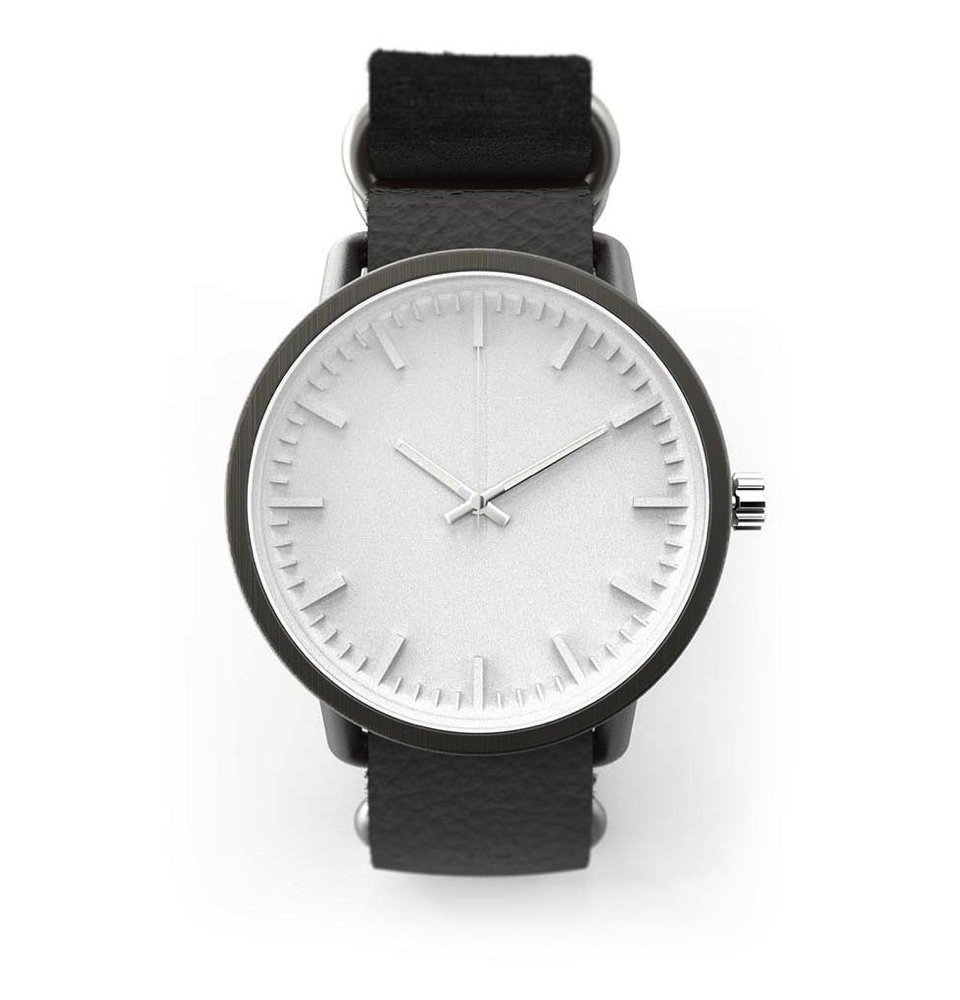 These “titanium” watches by rvnDSGN are among the first timepieces made with 3D printing. Cased in titanium, the watches contain acrylic faces, and, below the surface, Swiss ETA 7-jewel movements. The leather straps are by Worn & Wound of New York City. Combining familiar-yet-fresh textures and neutrals, the watches are adaptable statement pieces that will embolden formal and casual looks alike. Available in white, gray, and black, the watches are handmade per order in the USA.