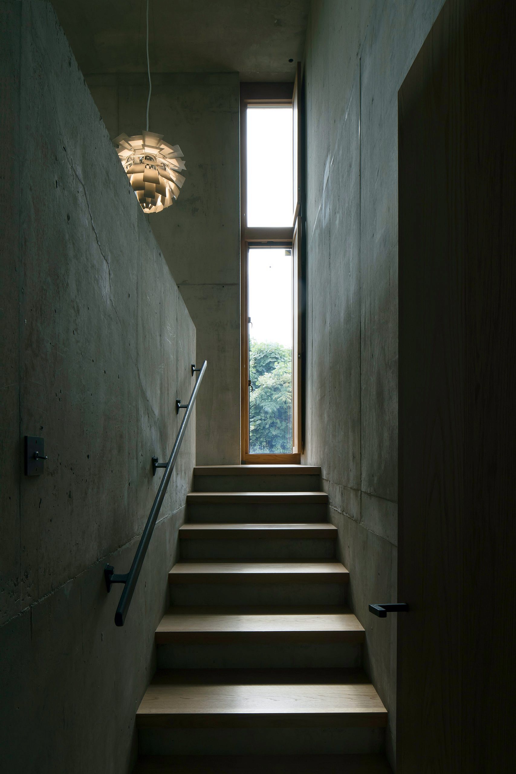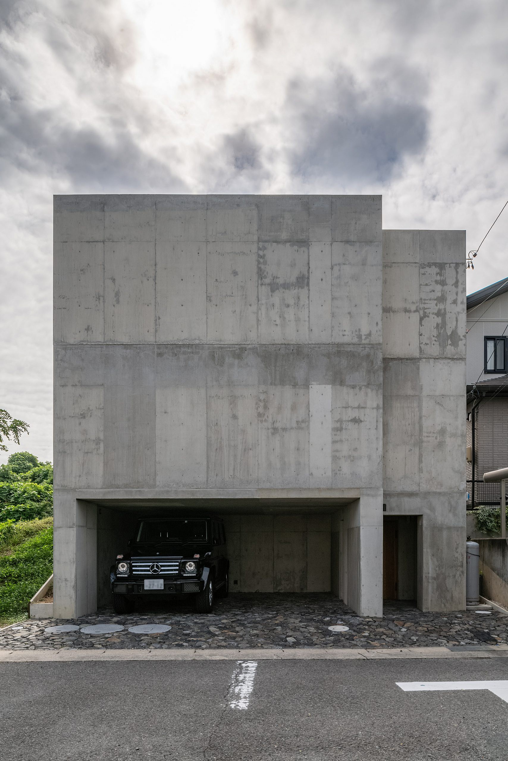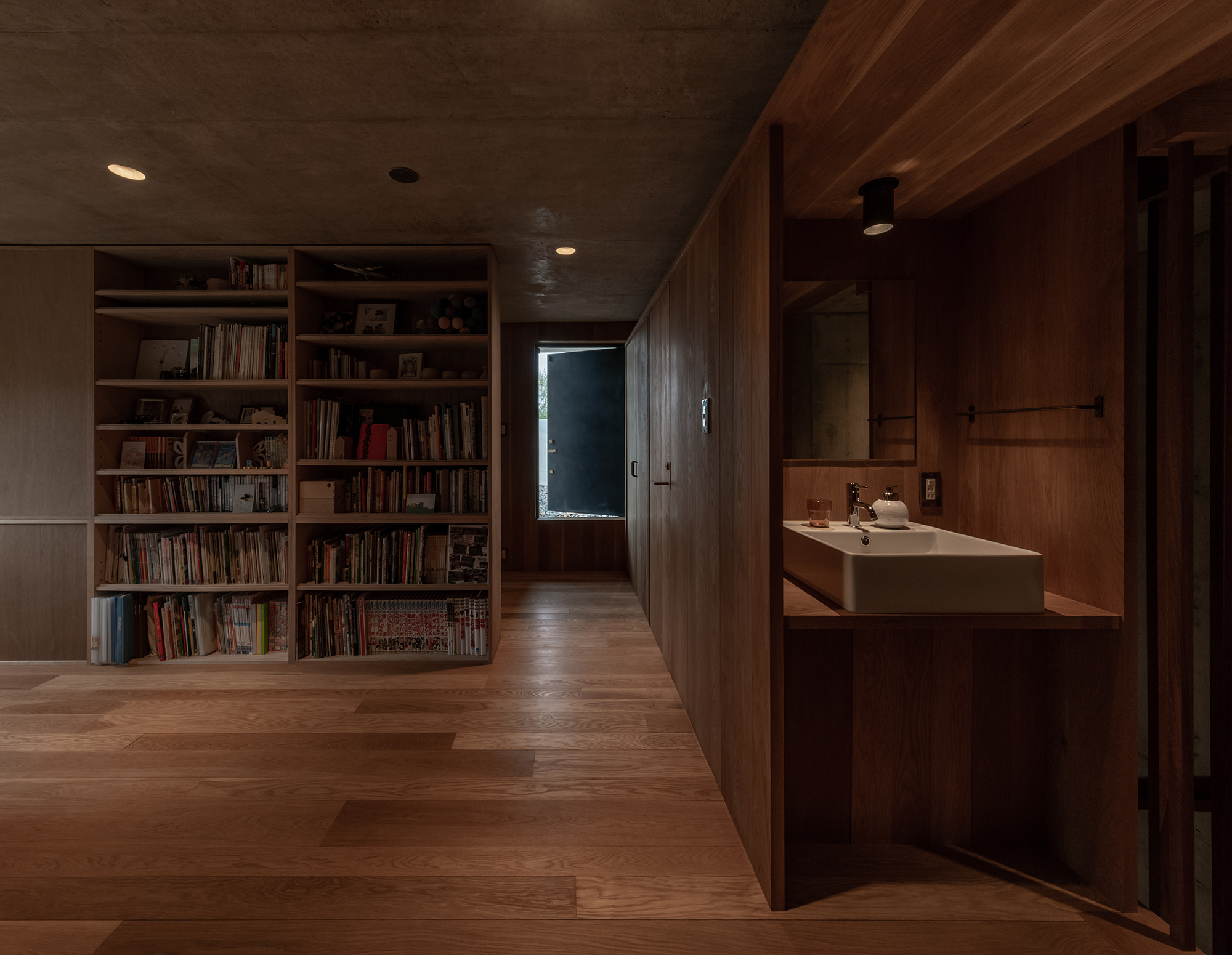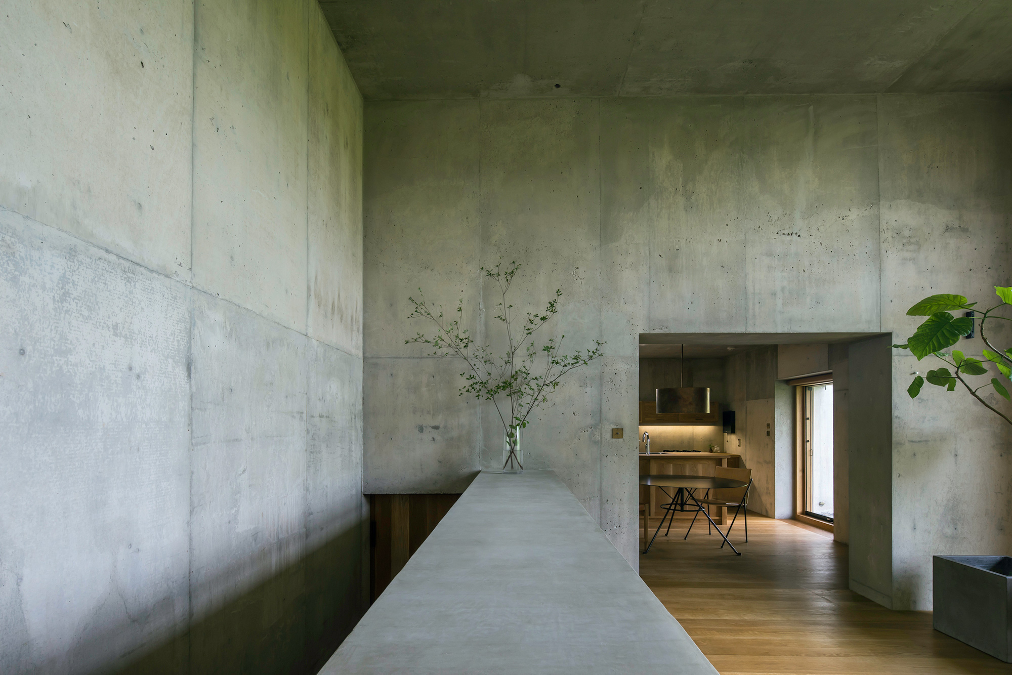 Located in an old residential area on the outskirts of Nagakute, Japan, Sagamine House brings a contemporary flavor to the neighborhood. Tomoaki Uno Architects designed the dwelling with a thoughtful blend of concrete and wood; here, the contrasting materials complement each other and create a space that looks modern and serene at the same time. The building features three volumes: two of them contain the living areas and the bedrooms, while the middle volume acts as a connecting space and houses the kitchen and the dining room. Beyond the minimalist concrete exterior, Sagamine House boasts cozy living spaces covered in white oak. The wood balances the exposed concrete walls, bringing more warmth as well as natural textures to the material palette.