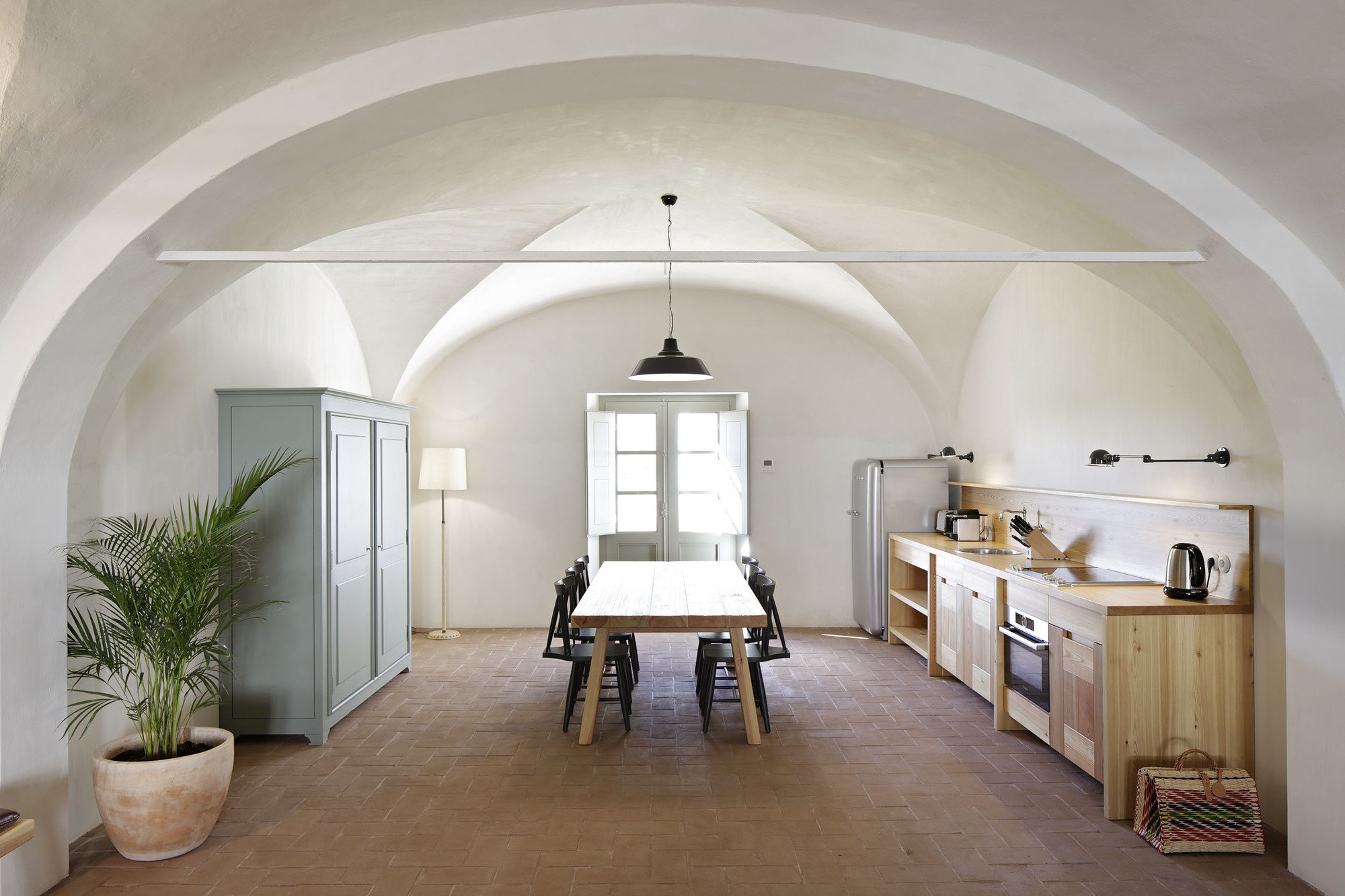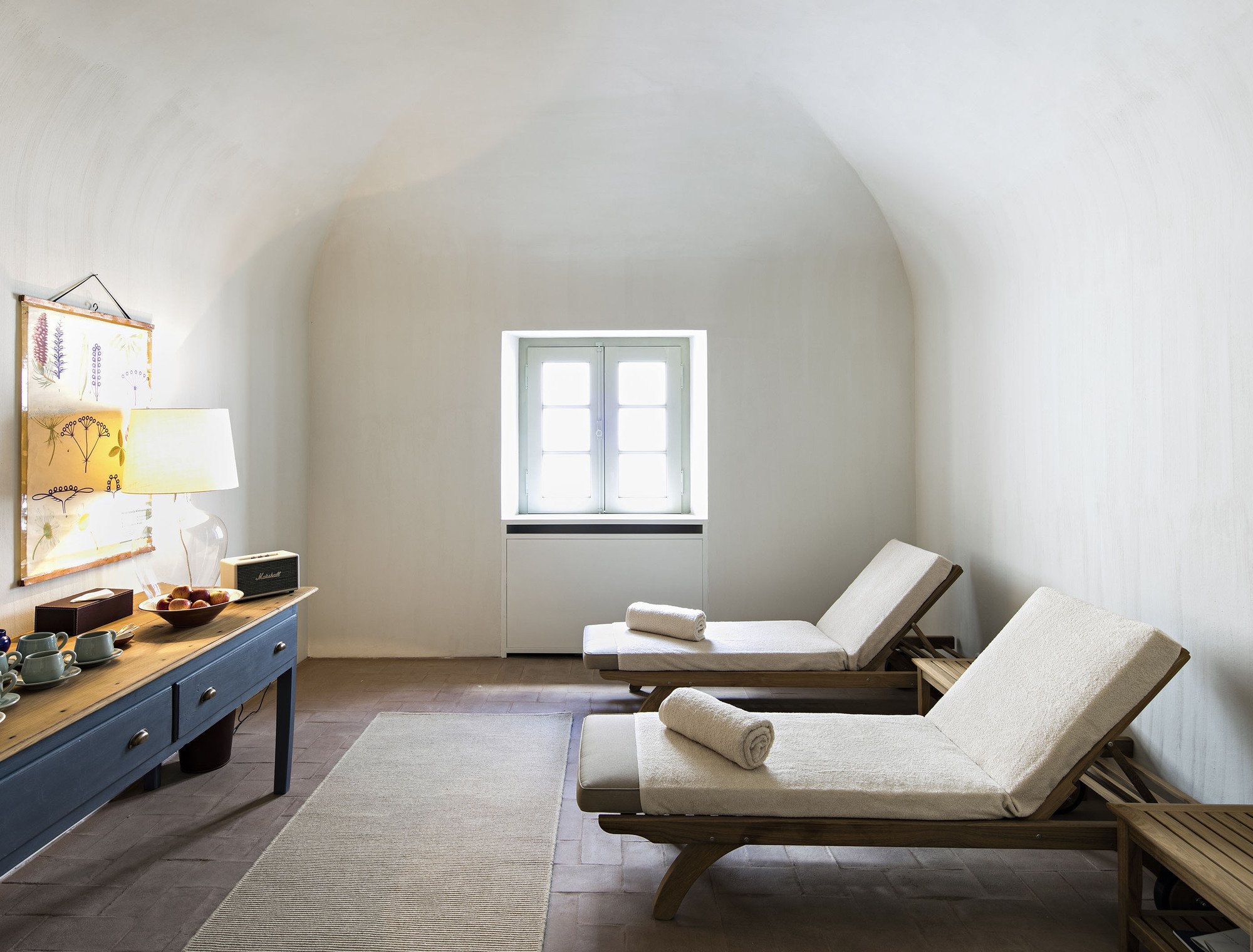 Blending the palpable history of the farm with contemporary elements, the architect created a special place that feels like home. Whitewashed walls, vaulted ceilings as well as antique décor pieces appear alongside modern furniture with clean lines and minimal designs. Throughout the hotel, including all of the rooms, cottages and restaurant, simplicity and raw beauty dominate the overall aesthetic.