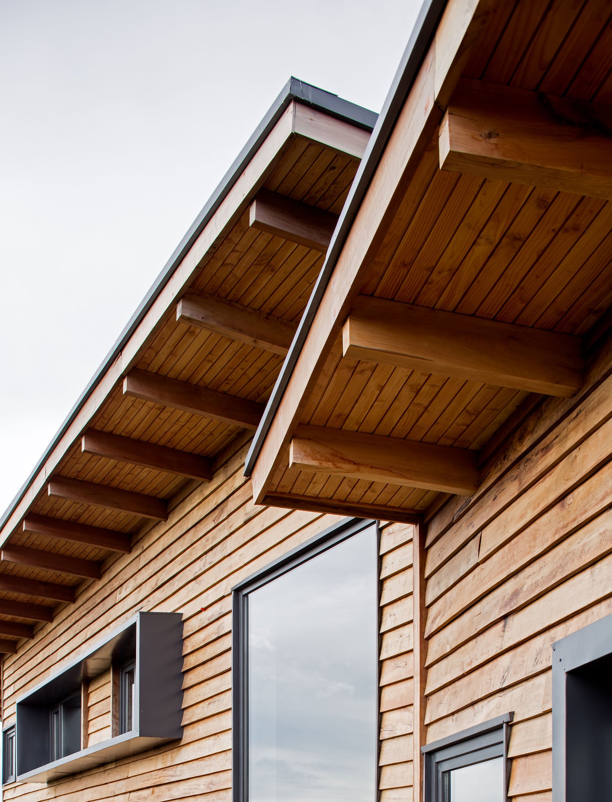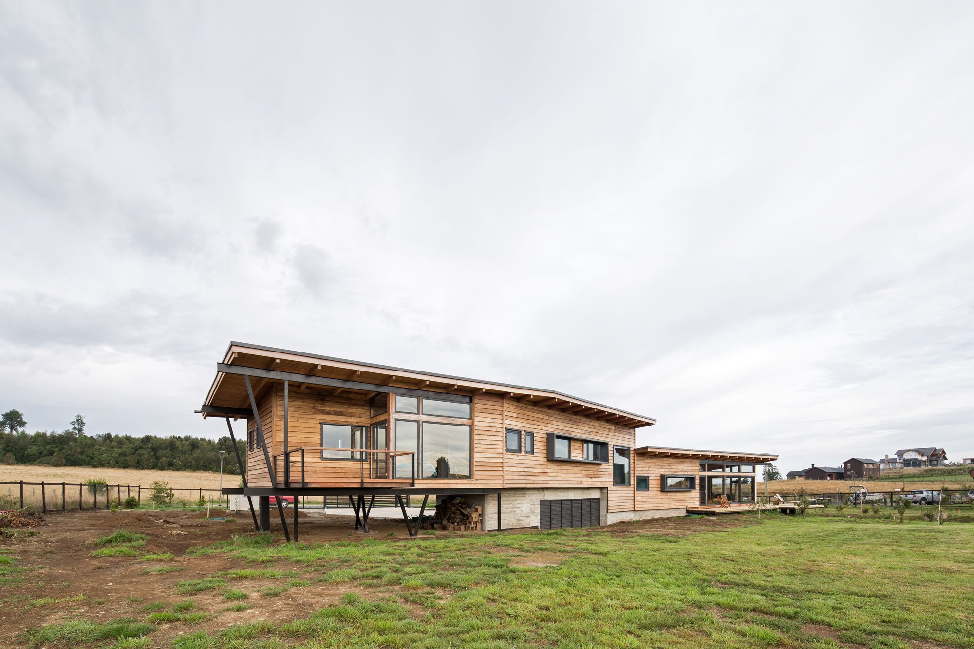 When the clients approached Pe+Br+Re Arquitectos to design their new home, their brief mentioned the creation of a magical space that could bring the relaxed atmosphere of a vacation to daily living. SarahMarc House achieves this beautifully. Located at a top of a hill in Puerto Varas, Chile, the house overlooks a gorgeous natural landscape which includes two active volcanoes. The structure’s design and shape follows the topography of the site while also maximizing the views. As a result, the rooms sit at different elevations and the facades differ strongly. Toward the east, the house features an open design, while on the west side that faces the street, the facade boasts a closed finish to provide privacy.