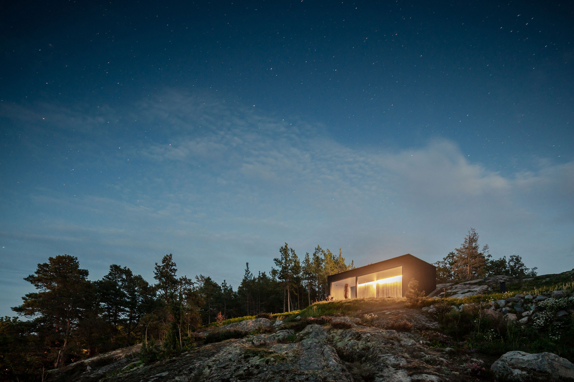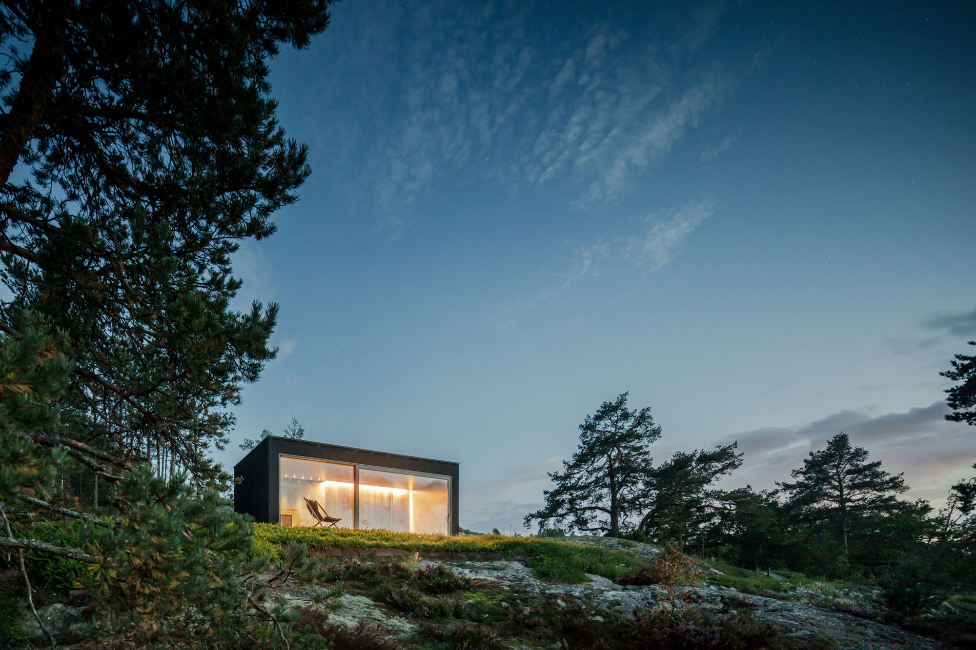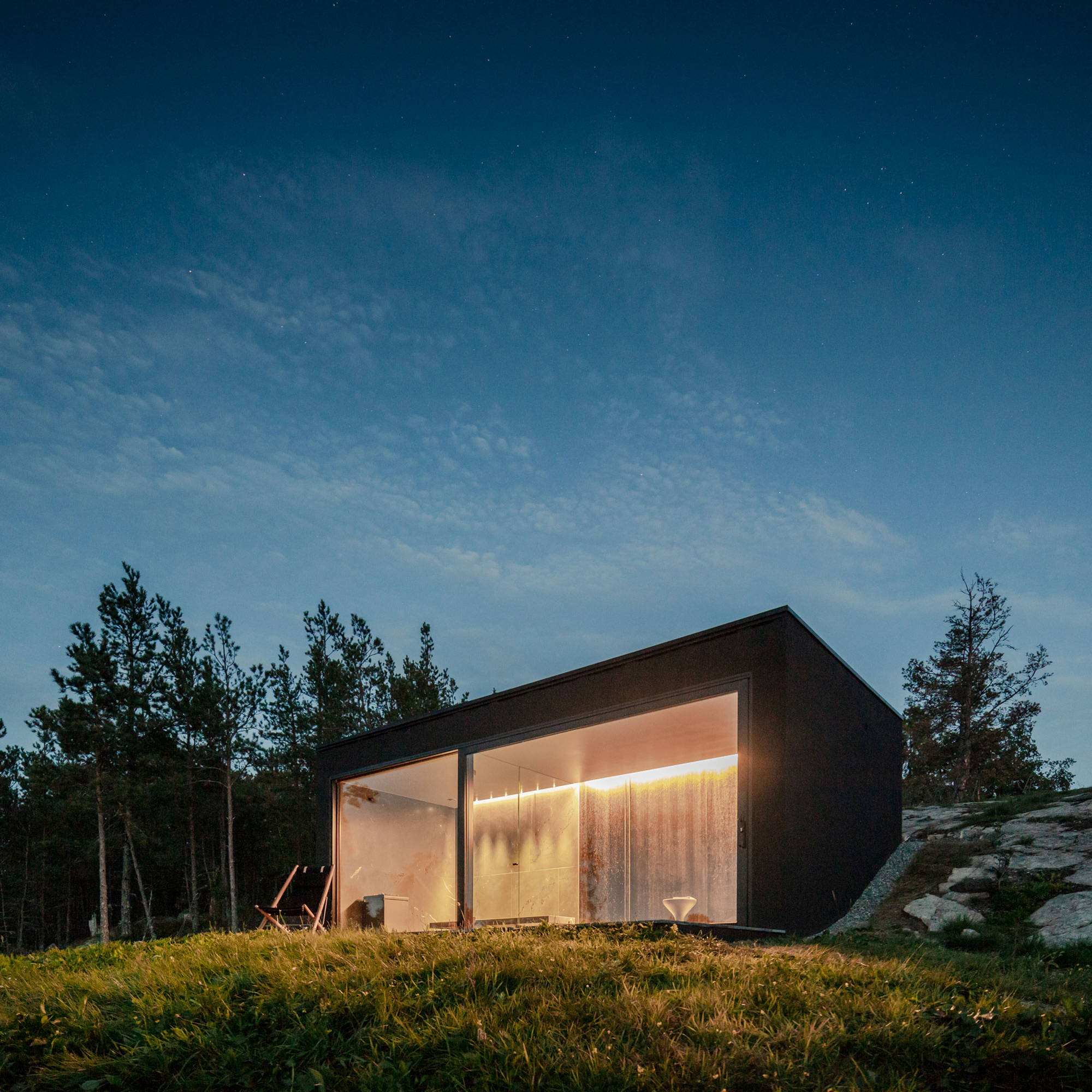 A sauna designed with all-black interiors and a glazed facade. Nestled on a rocky outcrop in Värmdö, in the Stockholm archipelago, Sweden, this sauna opens to breathtaking views of... Read full article »