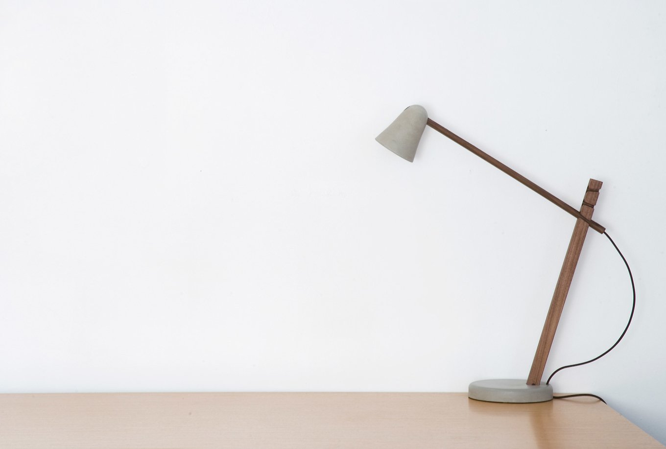 Inspired by nature but featuring a modern, minimalist aesthetic, the Say-Daw Lamp made by UK-based Design Bros brings style and function to living spaces and offices. The use of warm wood and cool concrete creates a beautiful contrast, while the adjustable height adds mobility to the design. The concrete base anchors the lamp and provides perfect support for the oak, walnut or beech frame. At the top, the concrete shade moves from side to side to guide the light, if needed. A cotton braided cord with an inline switch maintains the simplicity of the lamp.